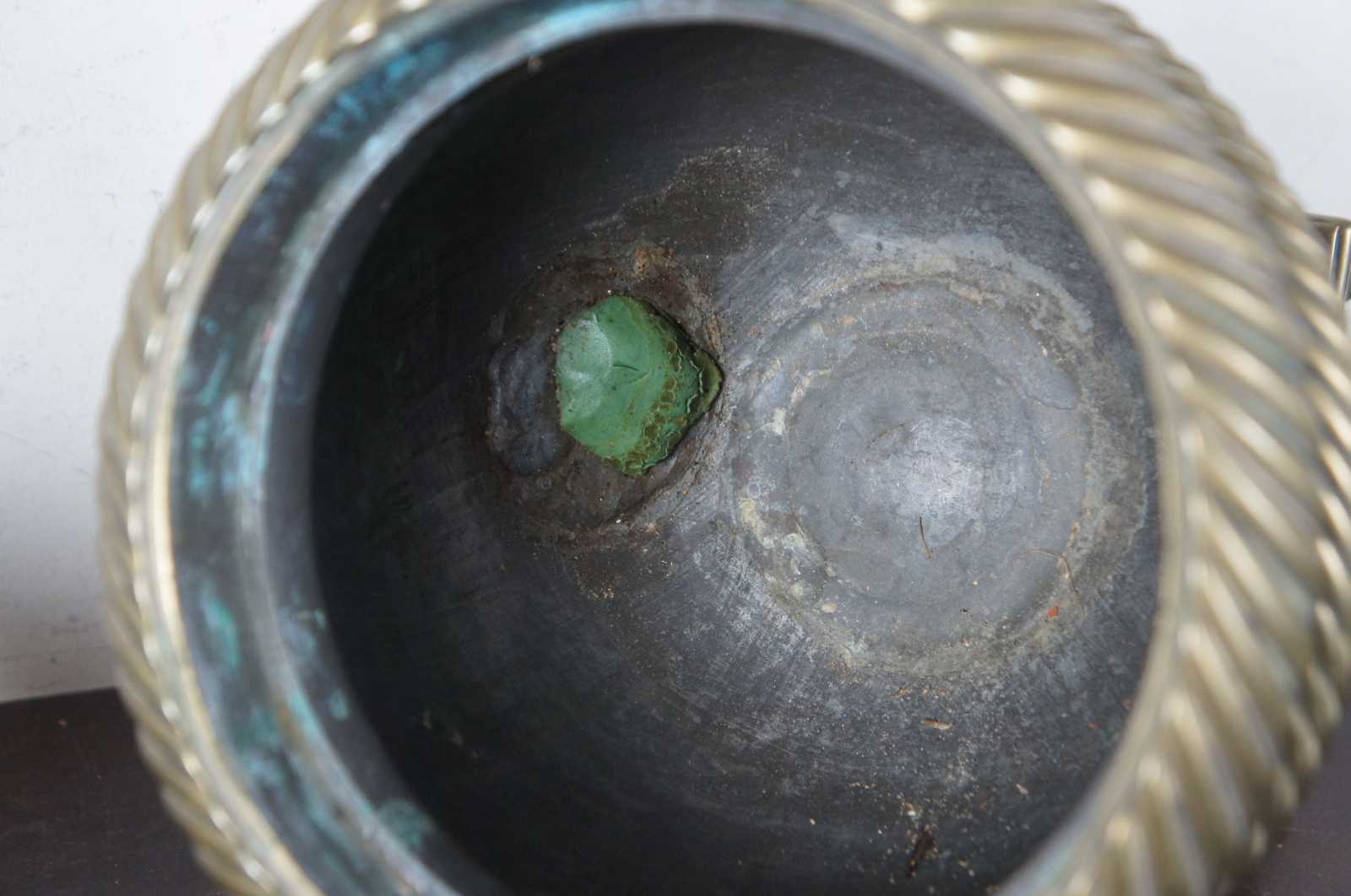 Good Overall - Marks/tarnish/oxidation; spout stopped with green clay; see pictures