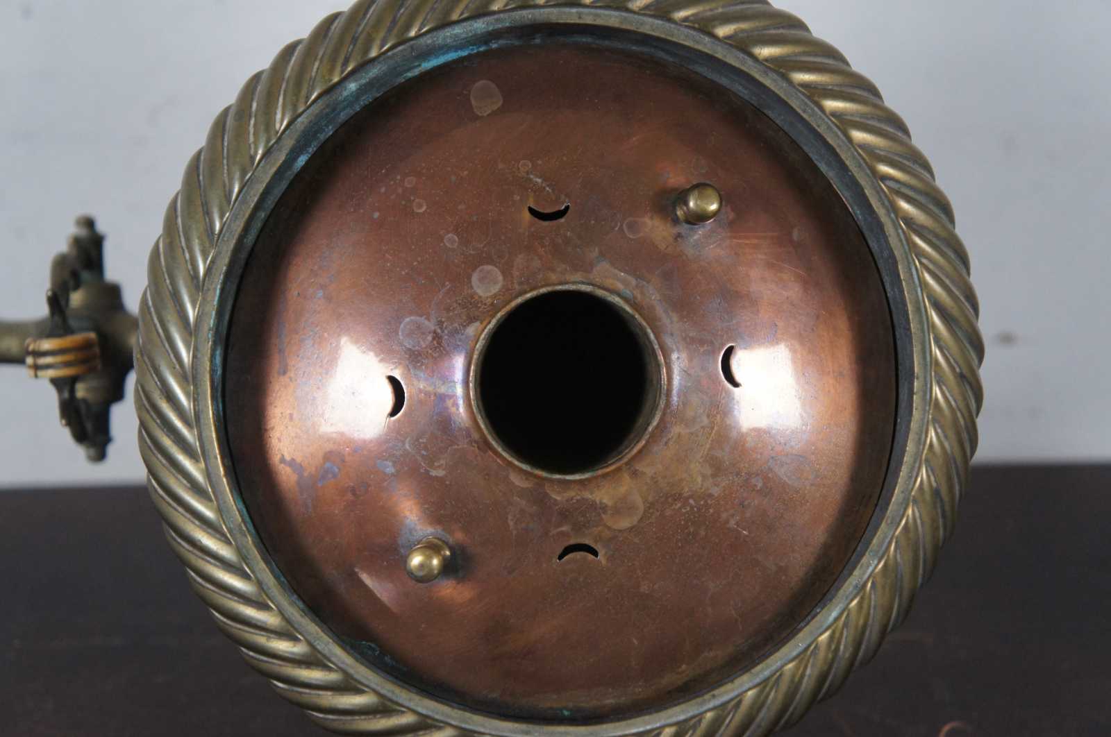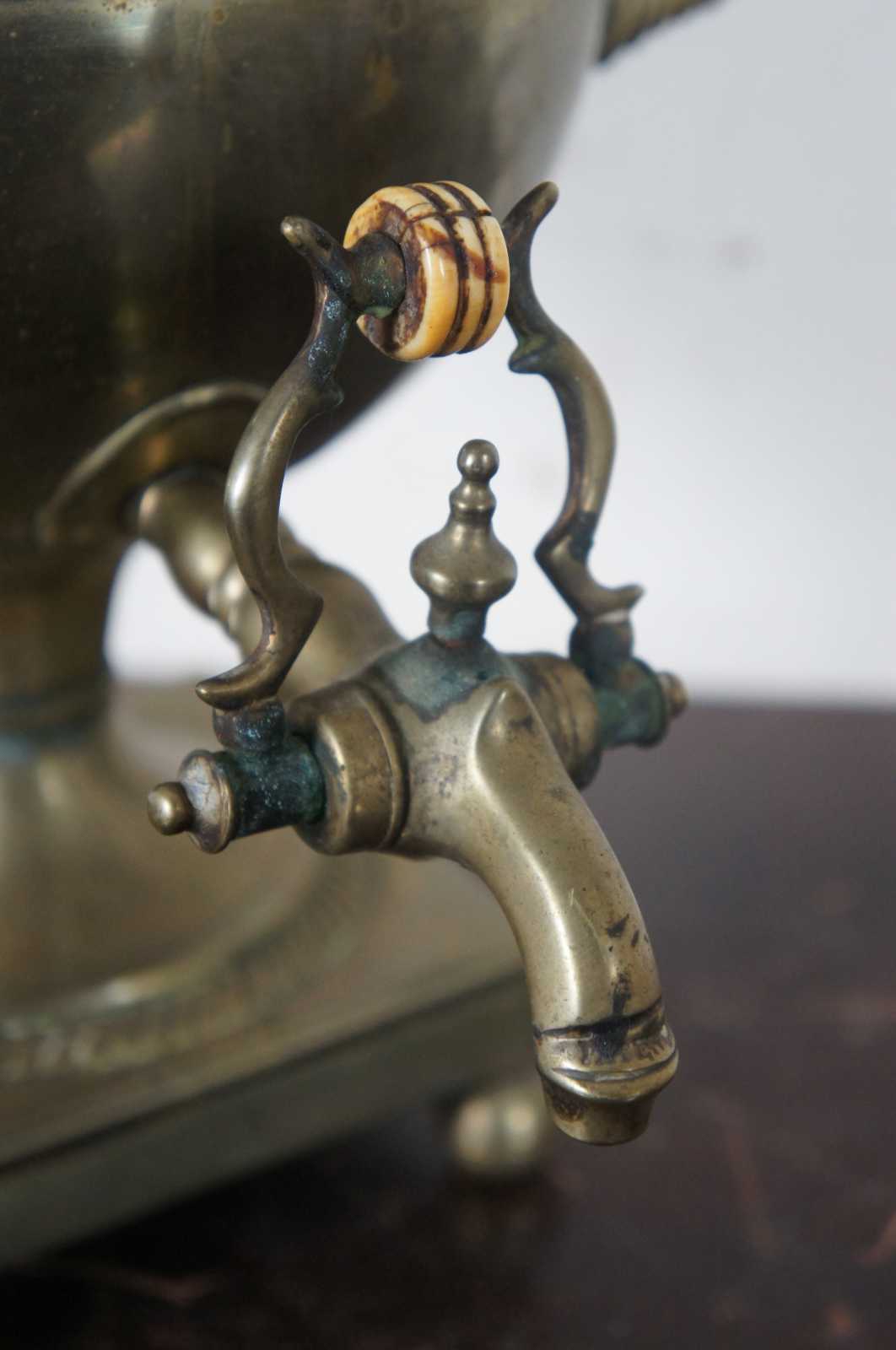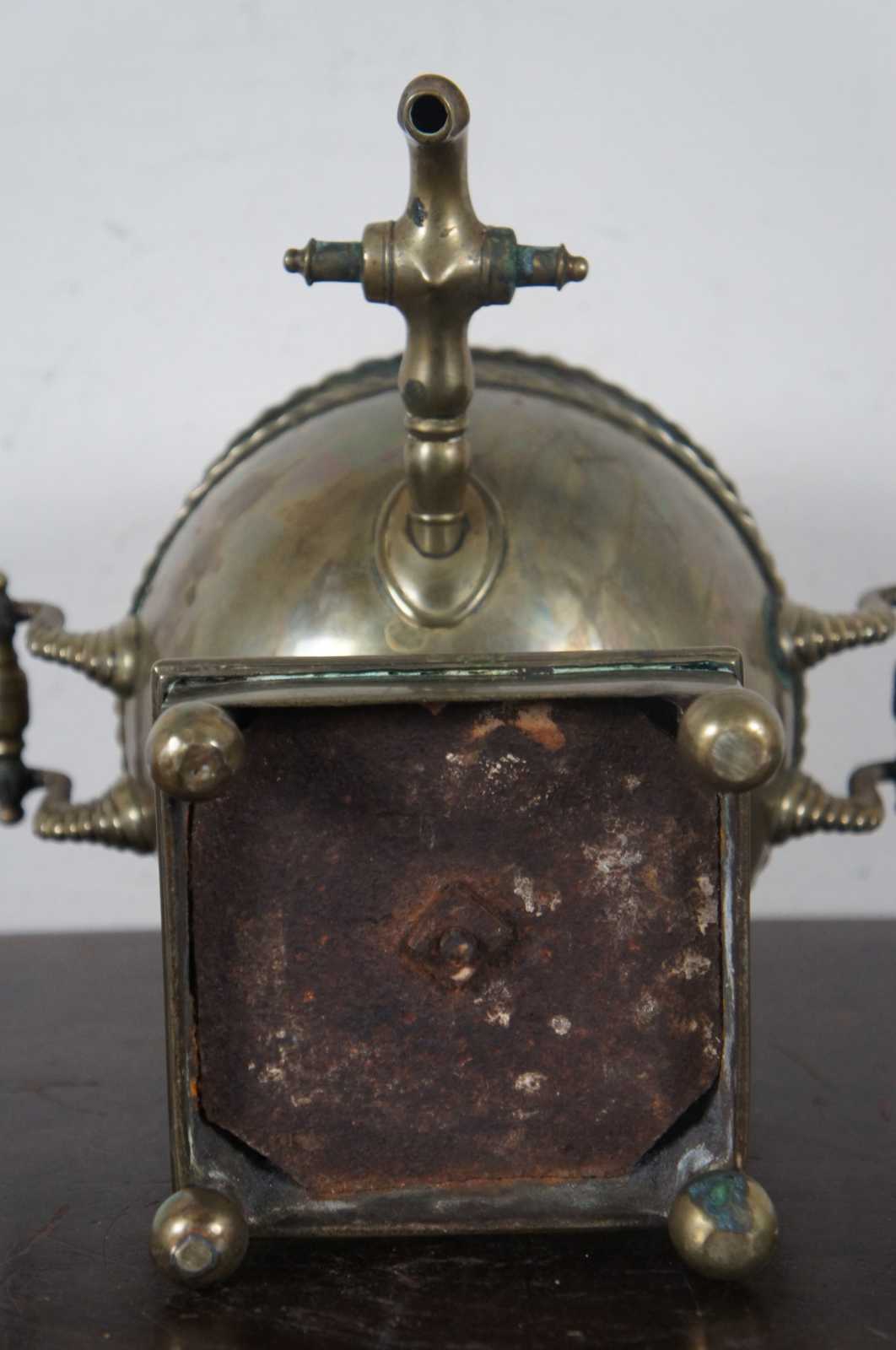 Antique brass samovar shaped like a neoclassical urn. Regency era, circa 1800s. Features ornate gadrooning and turned handles.