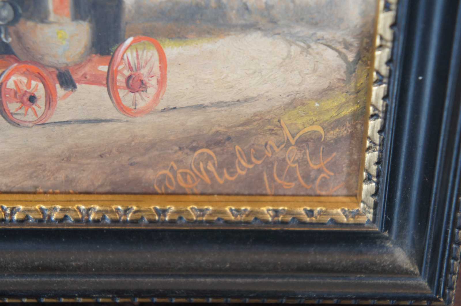 Good Overall - Small ding to frame front; puncture / paint loss to canvas.