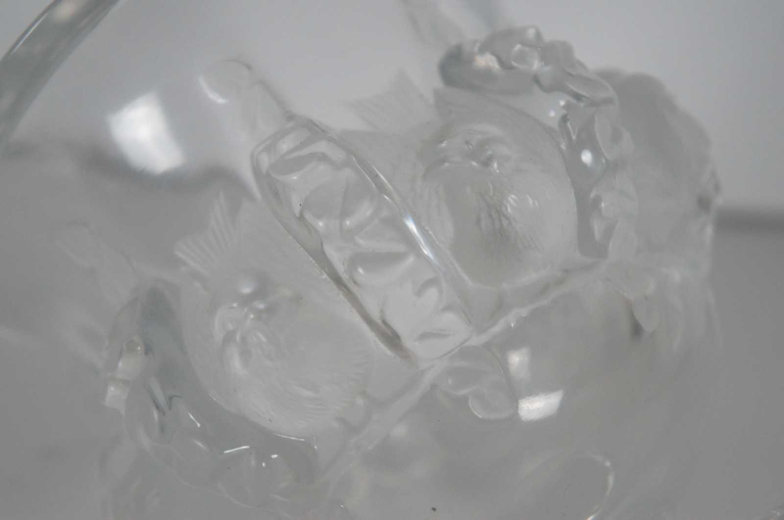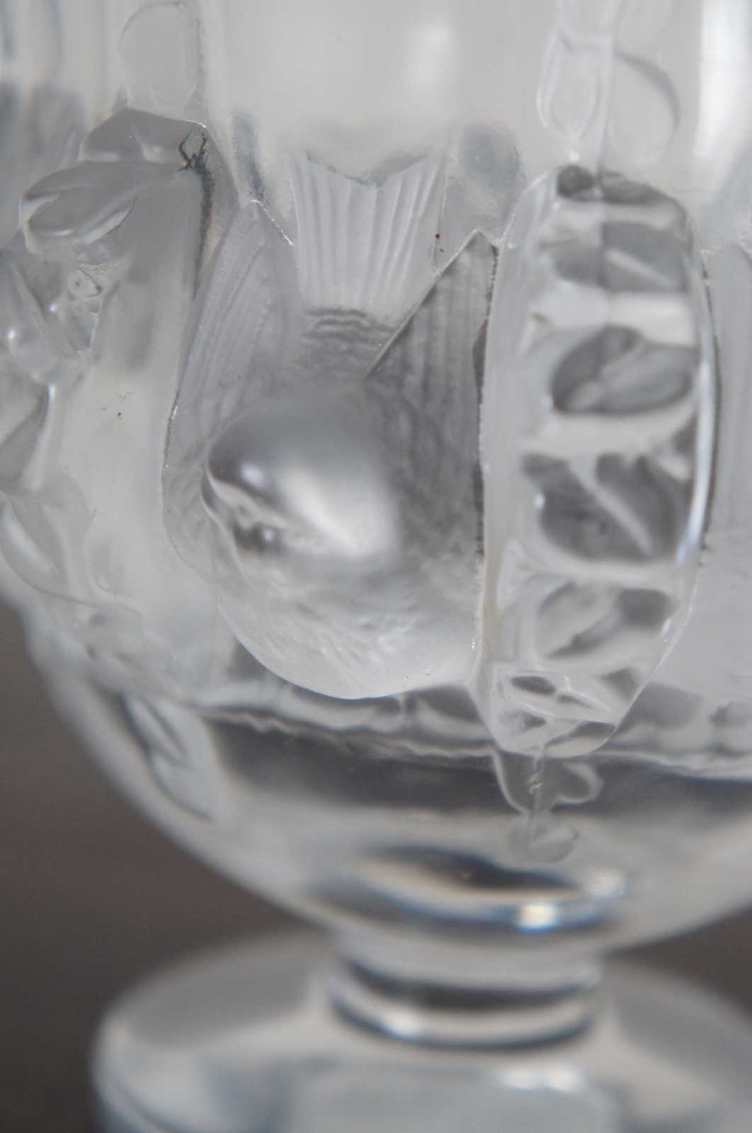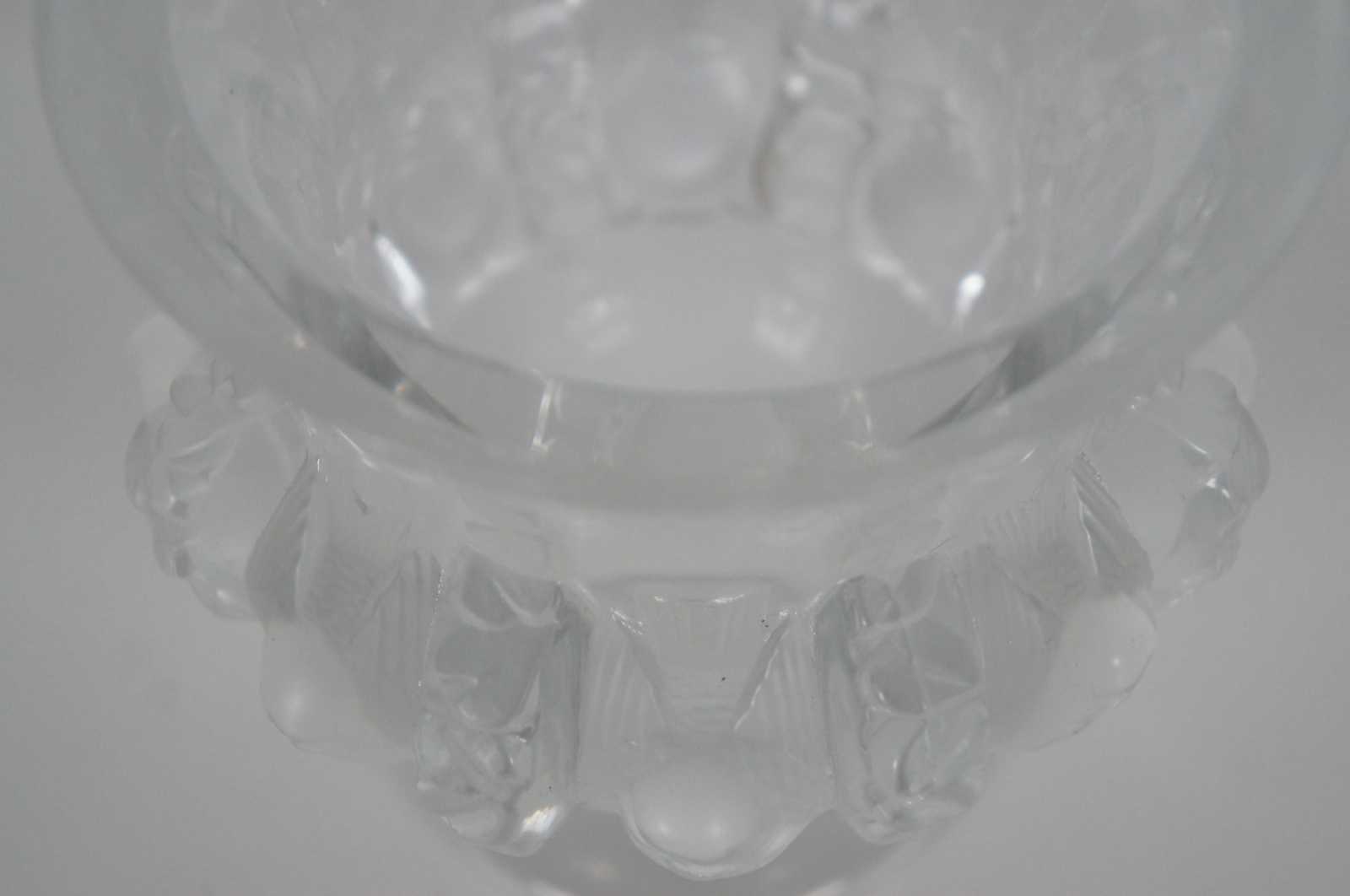 Vintage Lalique French crystal footed Dampierre vase or dish with frosted sparrows.