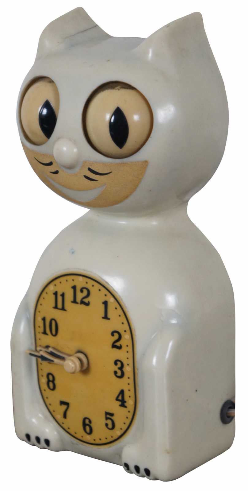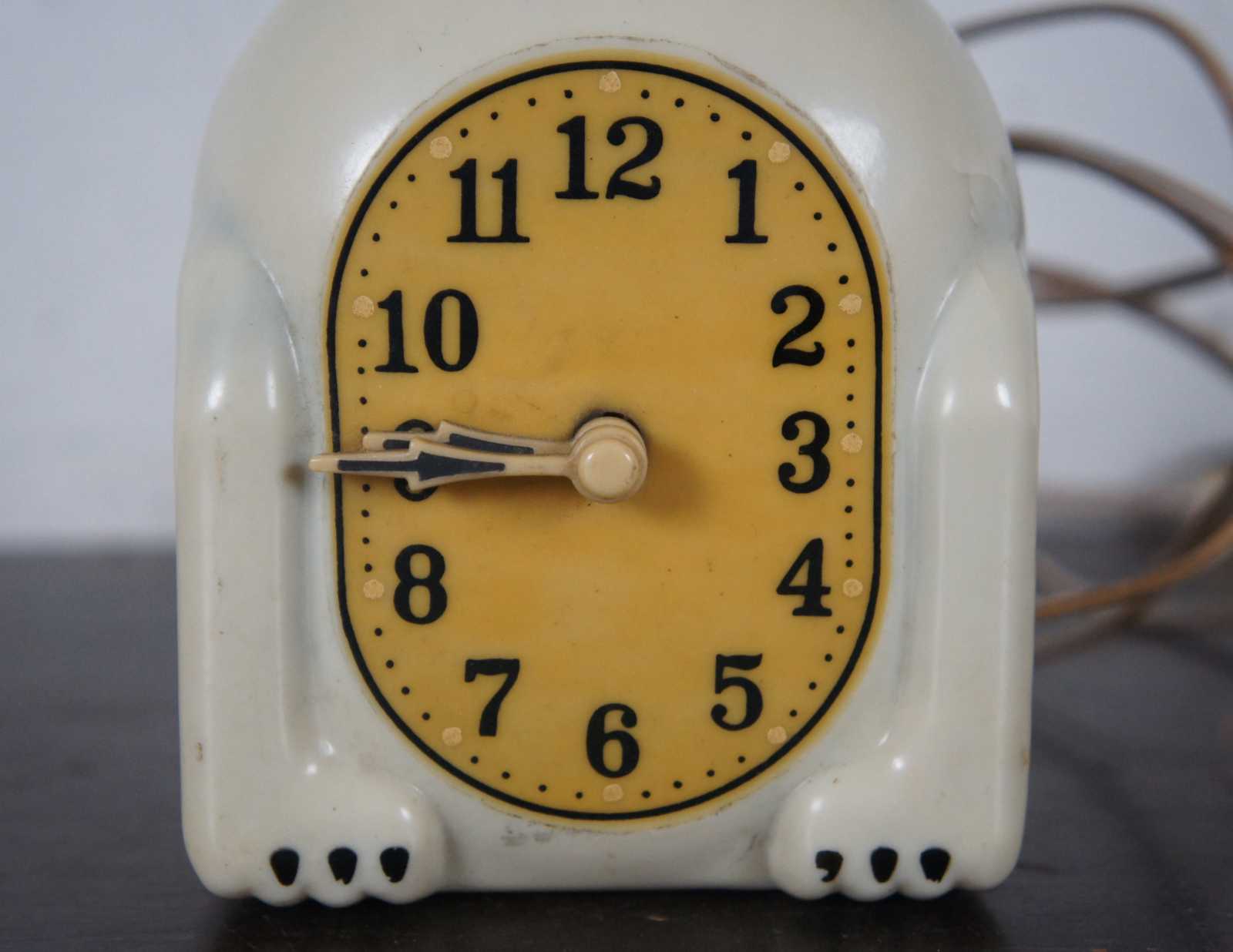 Antique 1940s ivory and yellow Kit Cat Klock by the Allied Manufacturing Co, Model C2.