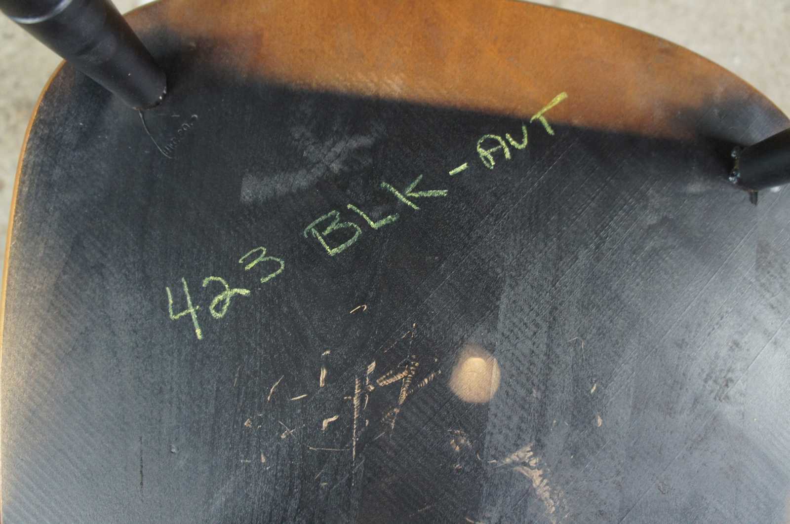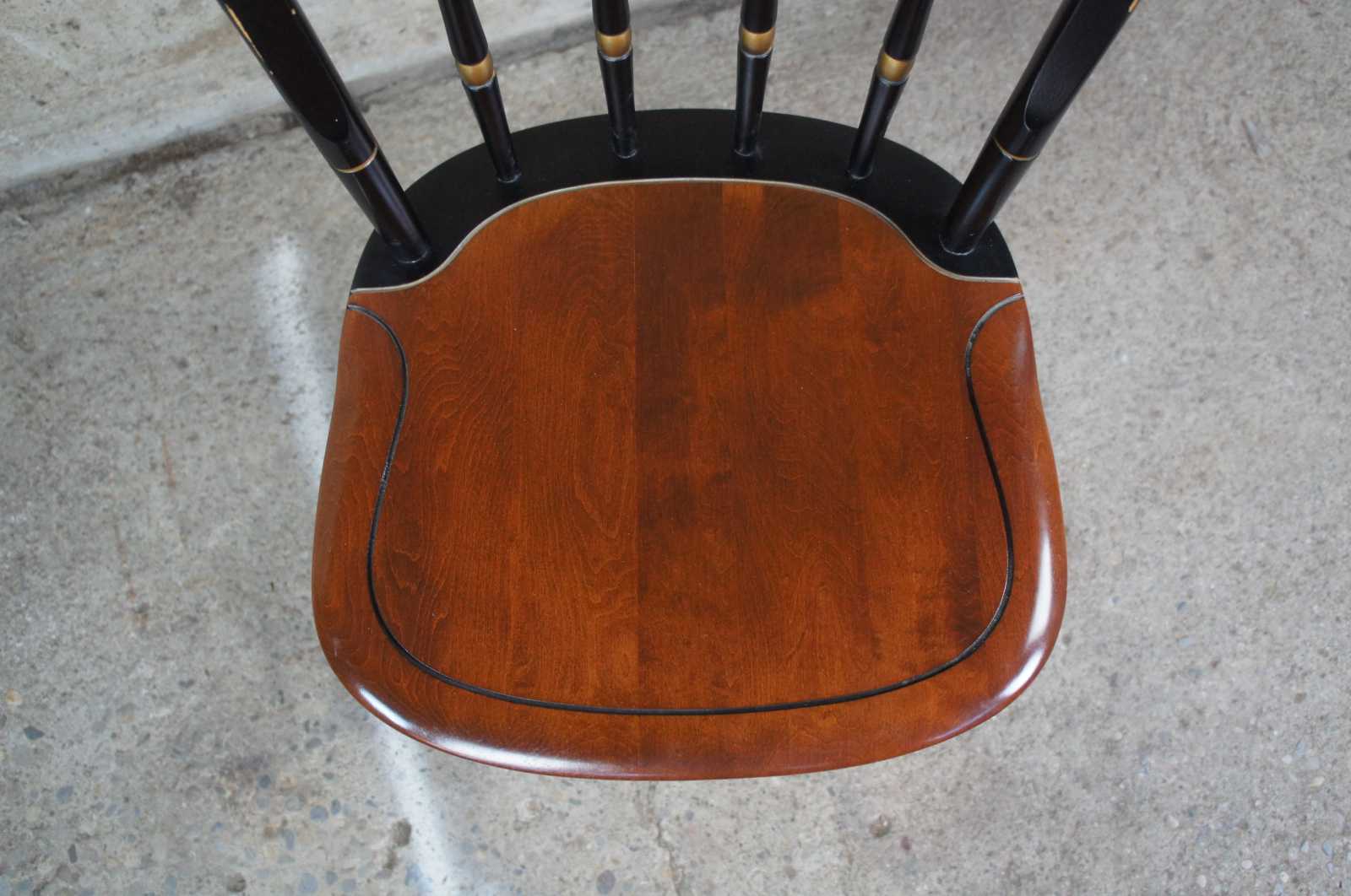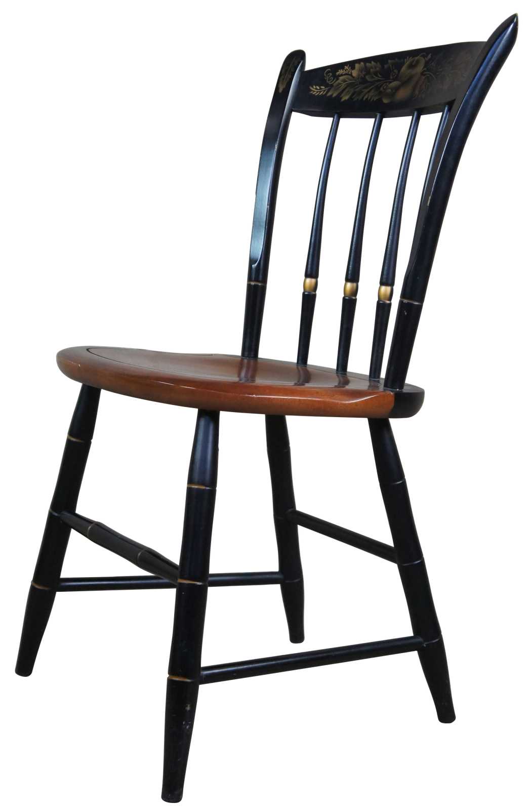 L Hitchcock black harvest country farmhouse side chair. Made of maple featuring ebonized and stenciled accents, slatted back, and turned posts. 423 Blk - Aut.