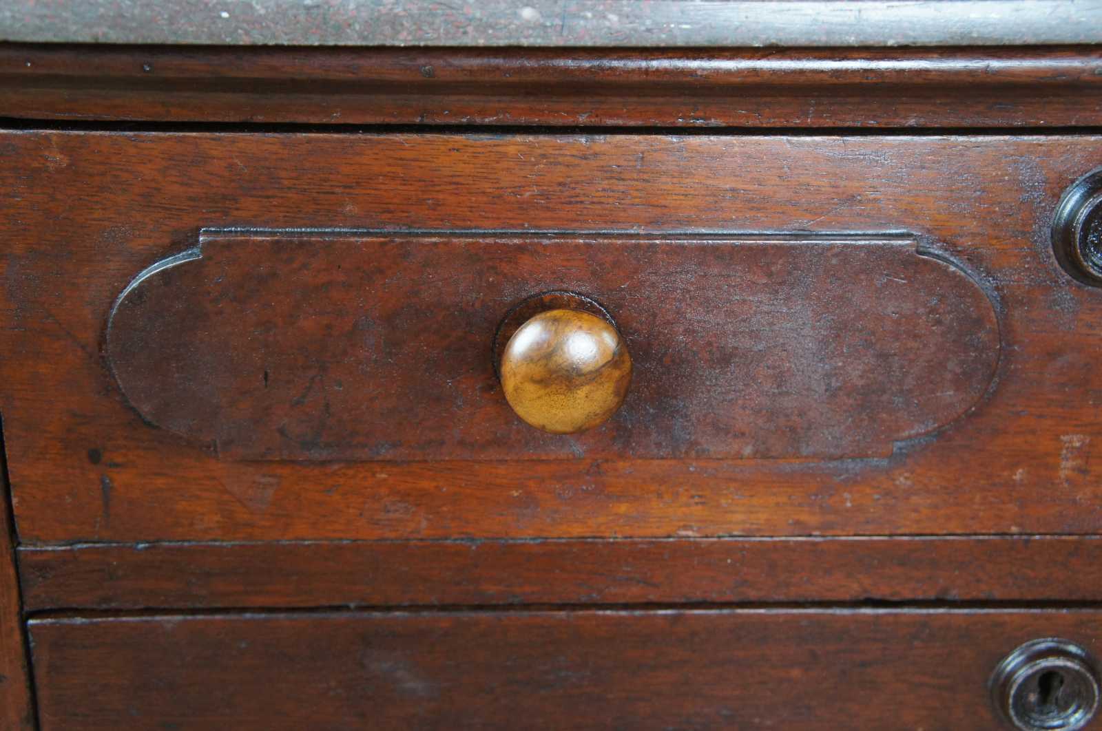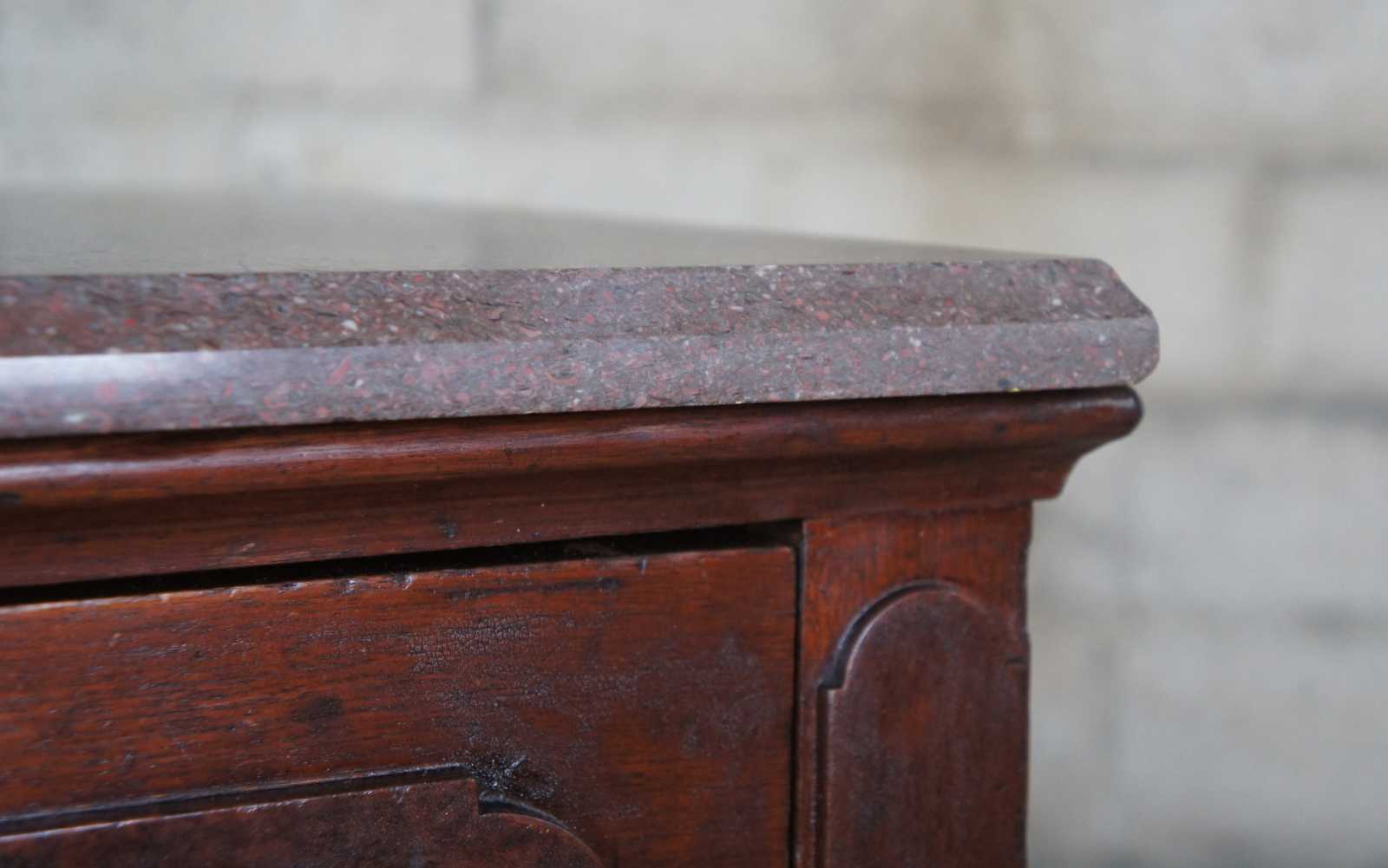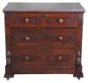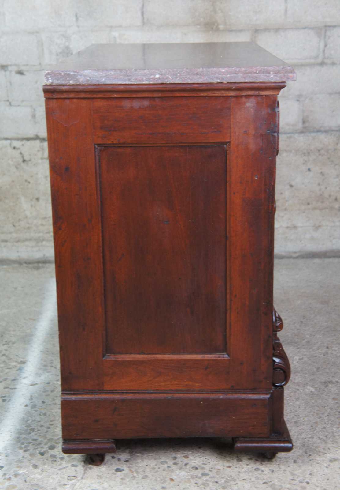 Antique Victorian Eastlake dresser or chest of drawers. Made of walnut featuring three (3) drawers with raised burled panels, turned knobs, acanthus carved accents, and granite top over square feet with castors.