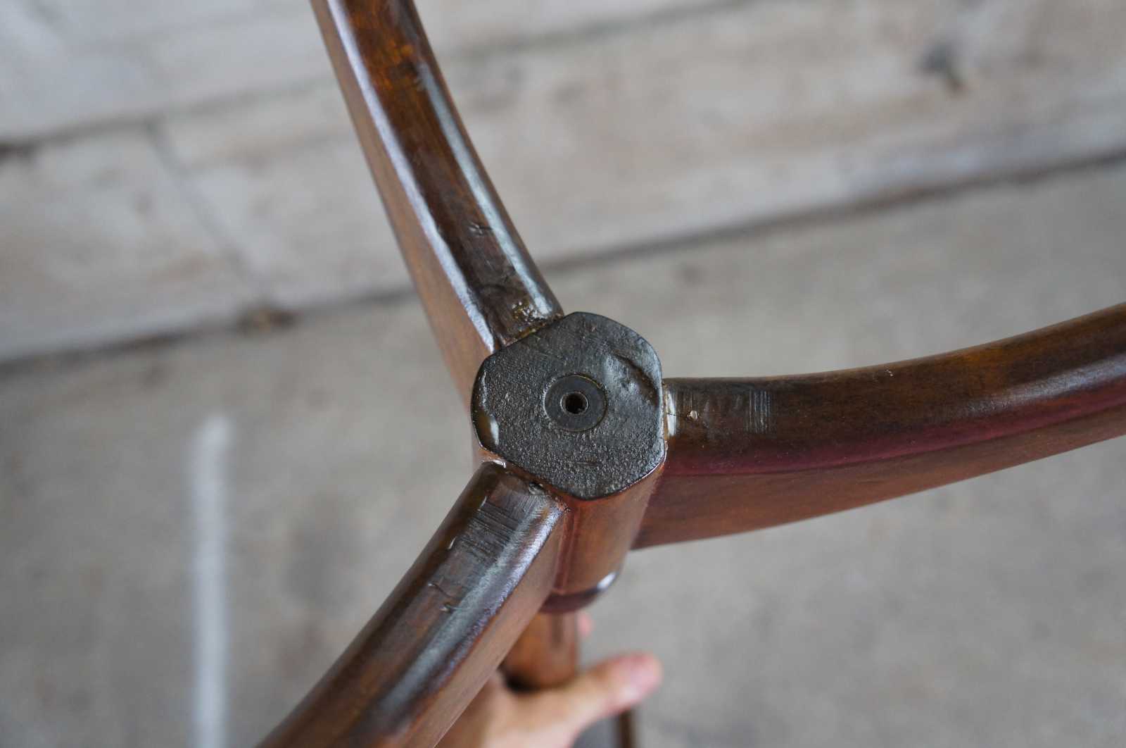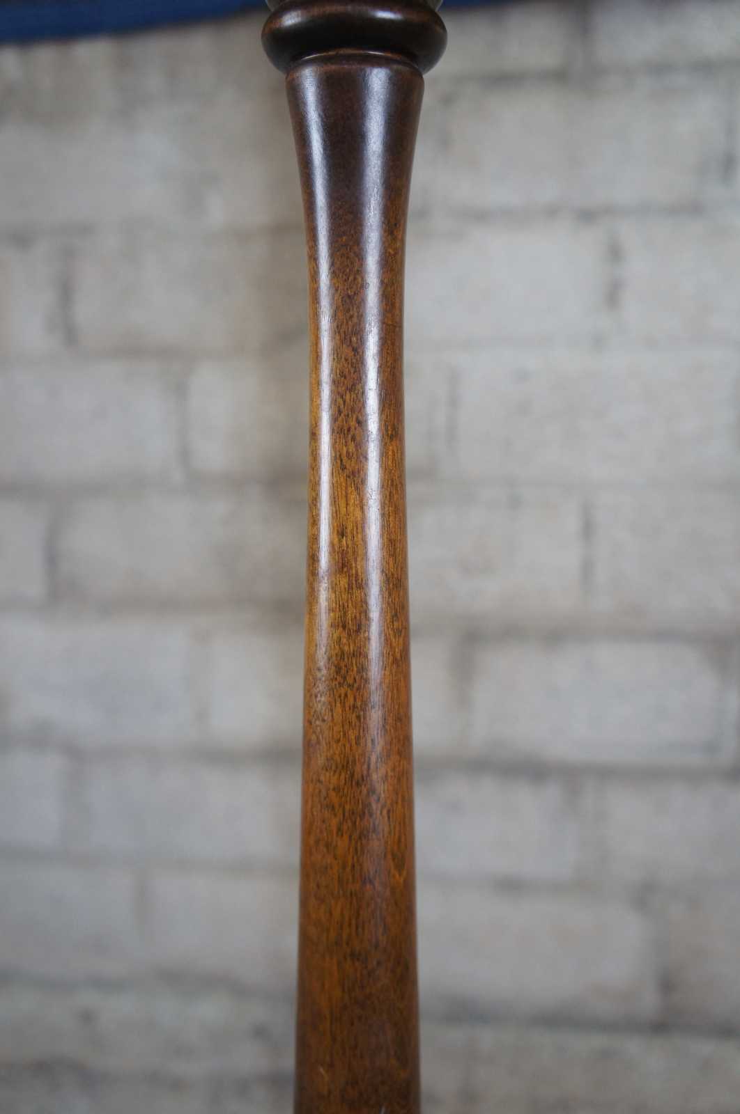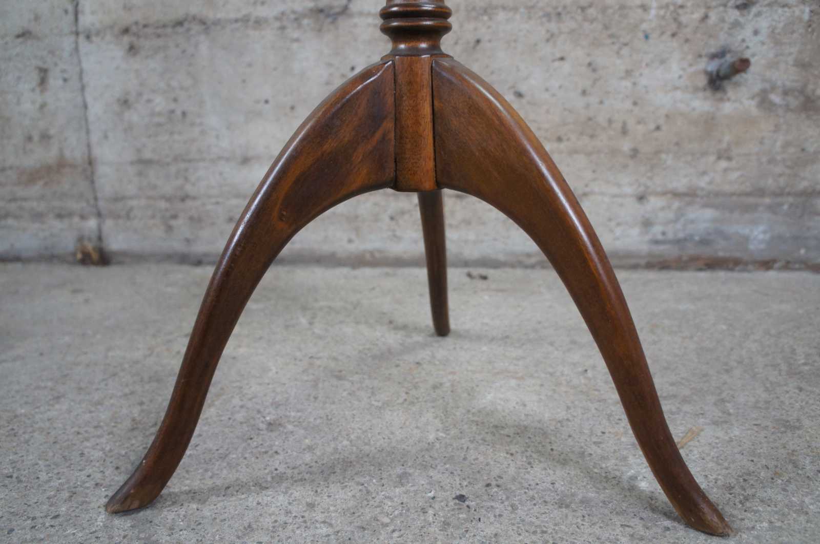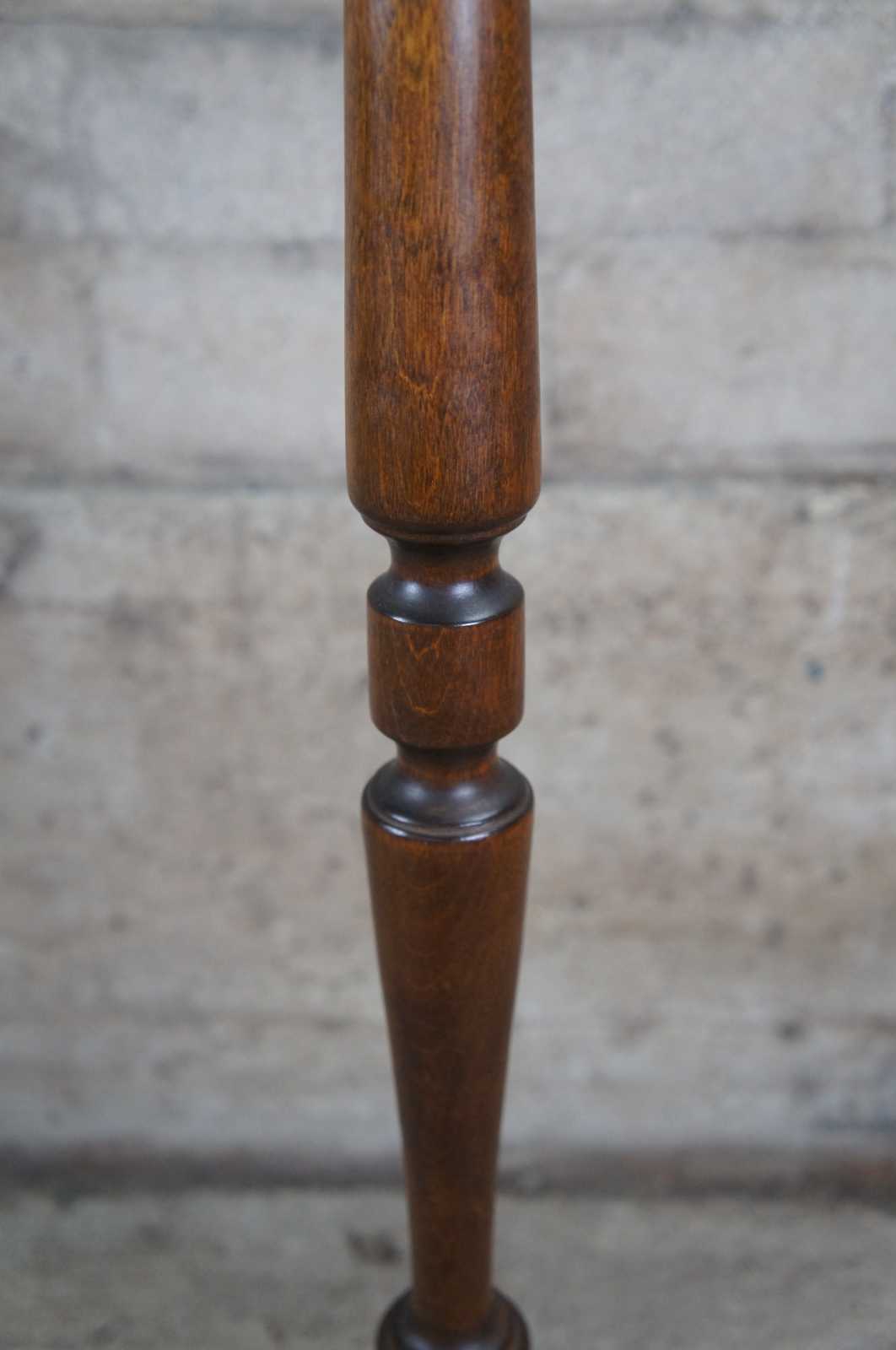 Mid 20th Century Federal inspired candle stand by J&R Furniture Mfg Co of Salt Lake City Utah. Made from walnut with an inset hexagon top over turned column and tripod base.