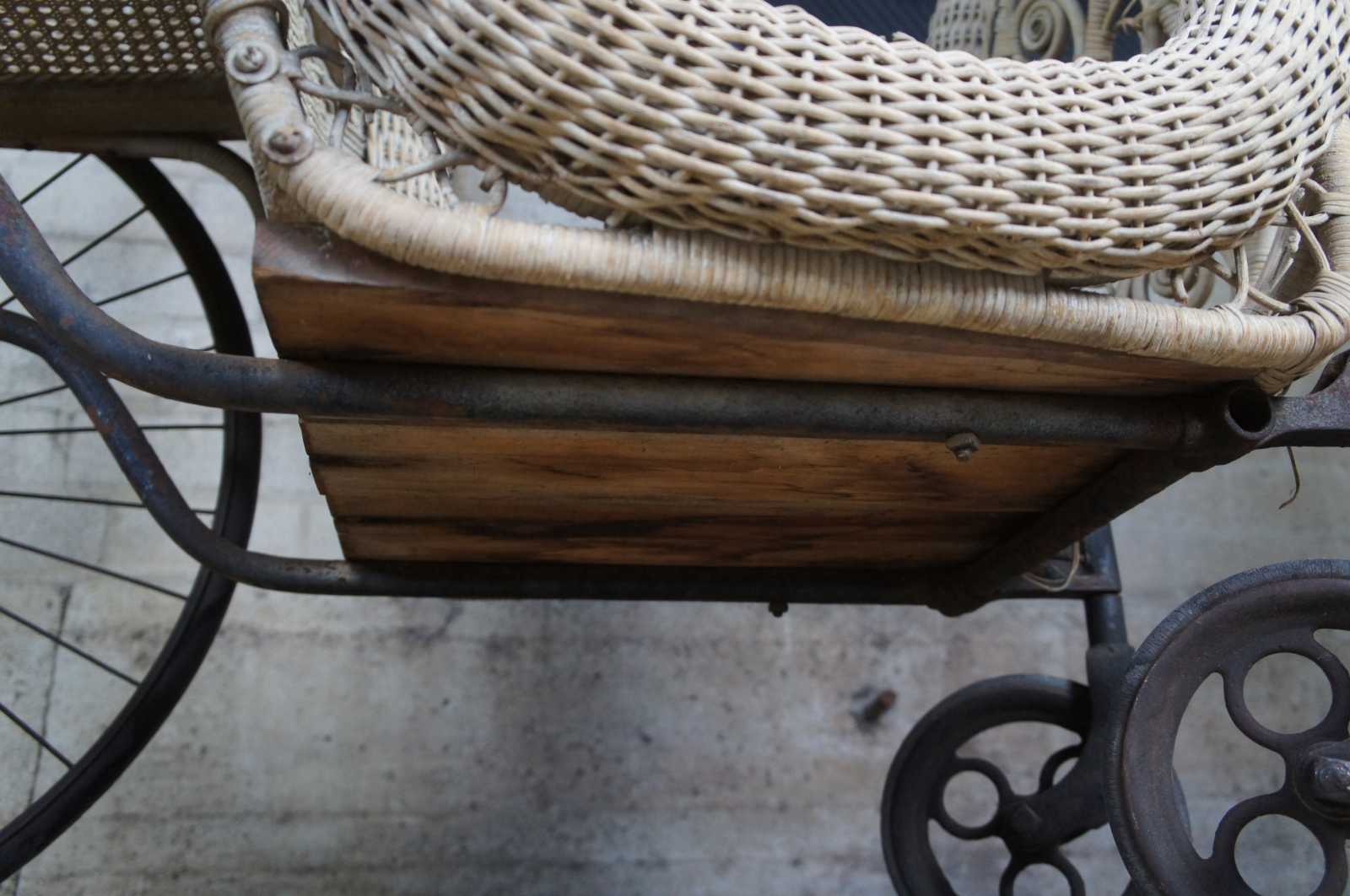 Good Antique Condition; some paint wear and breaks in wicker.
