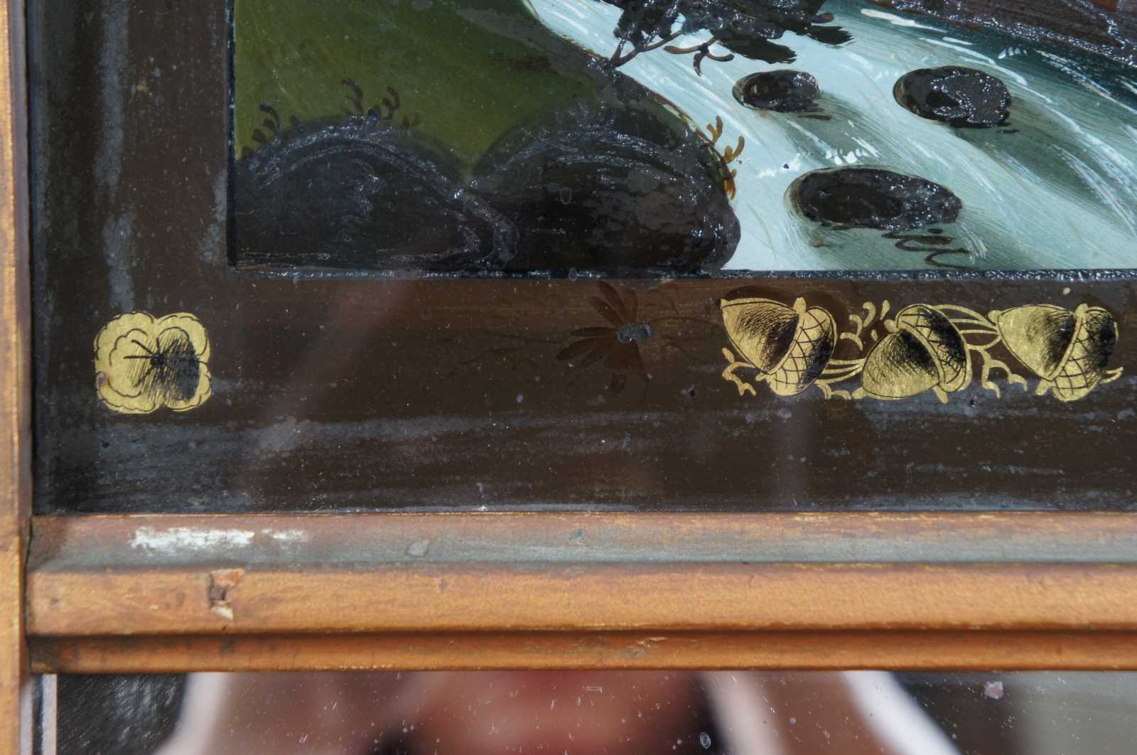 Good Overall - Some wear/chips/repaired corner of frame; fly spotting to mirror; some paint loss to picture; see pictures