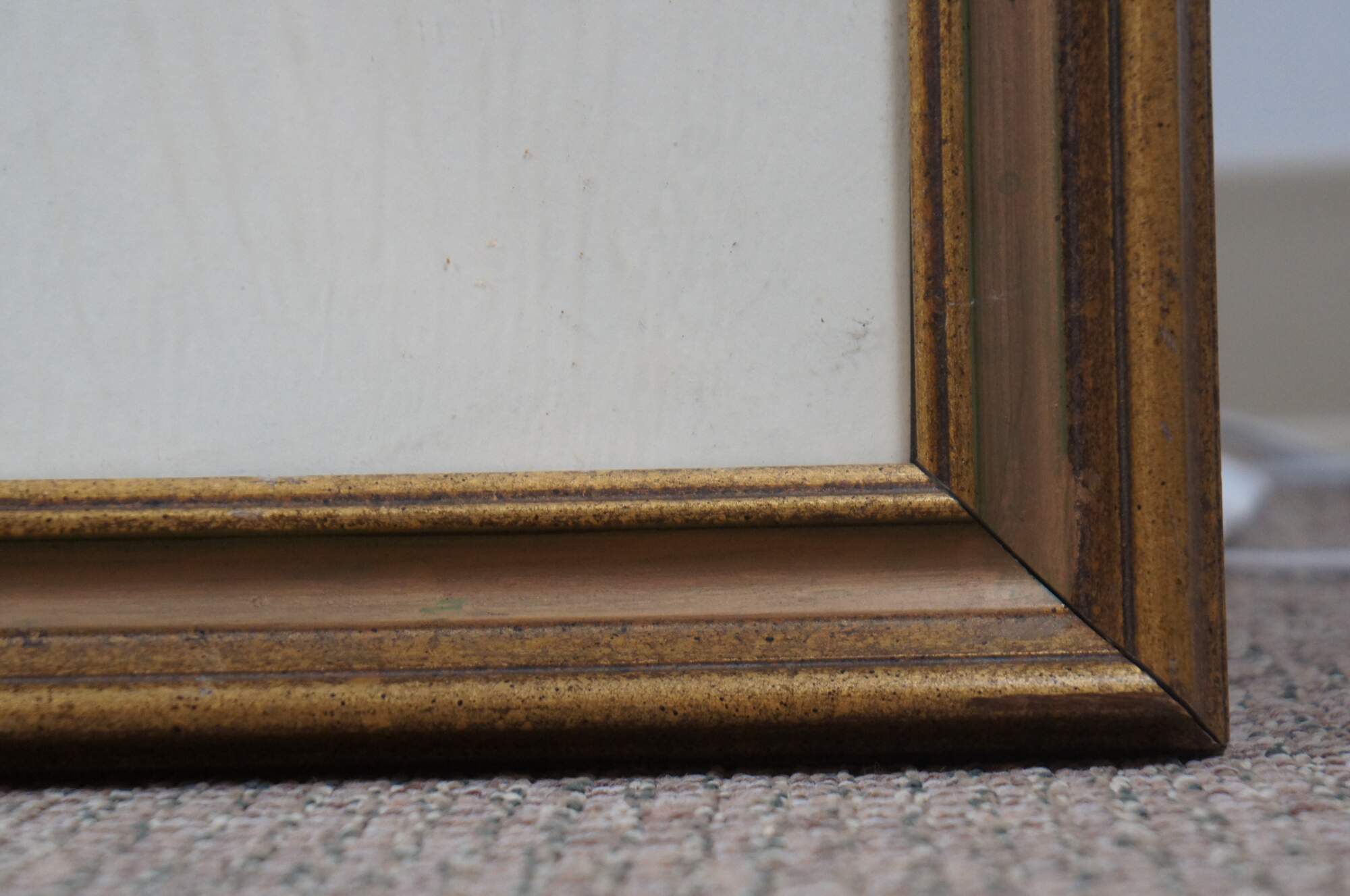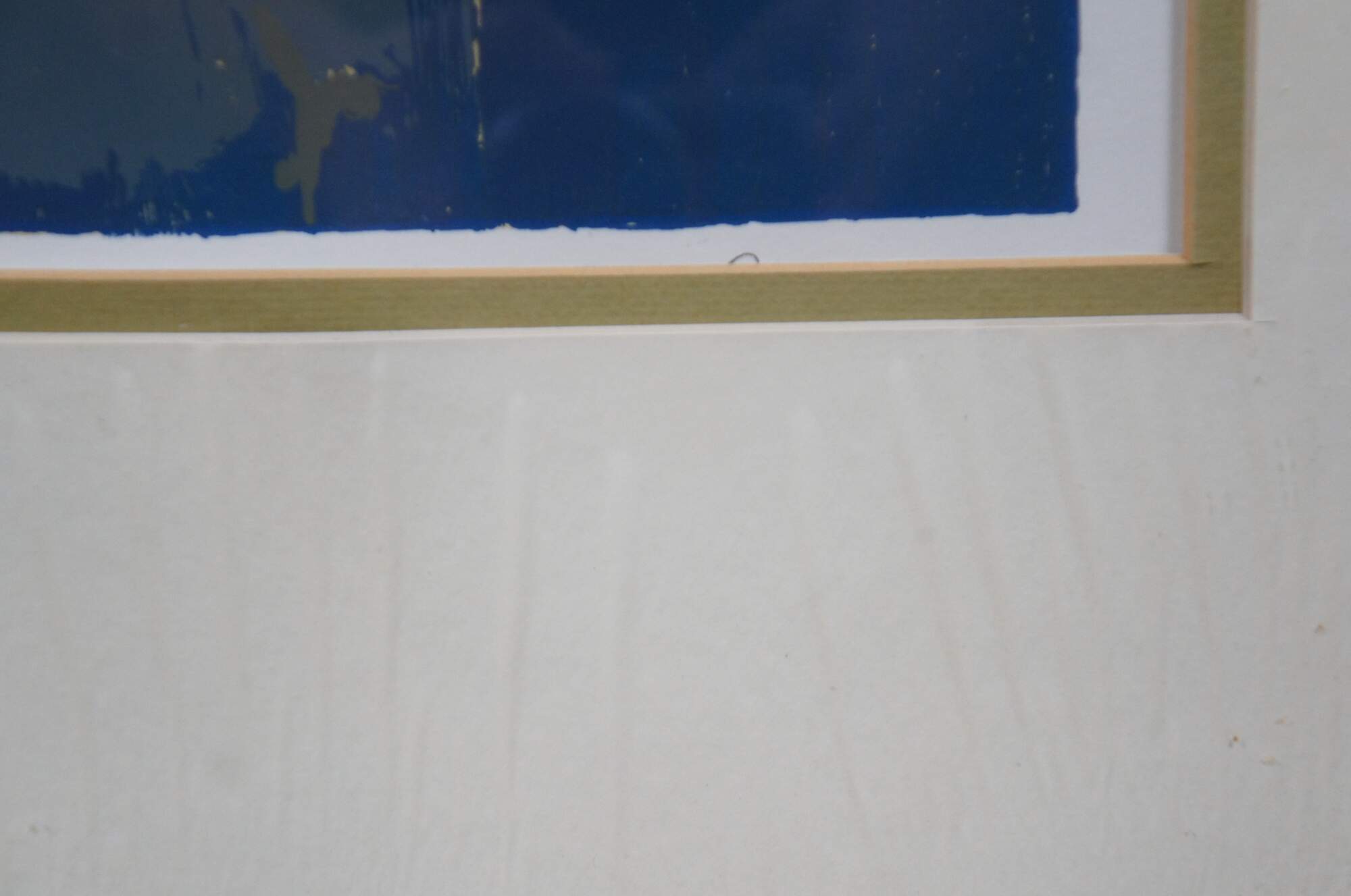 Good overall - print needs recentered to see signature, water damage to corner of mat.