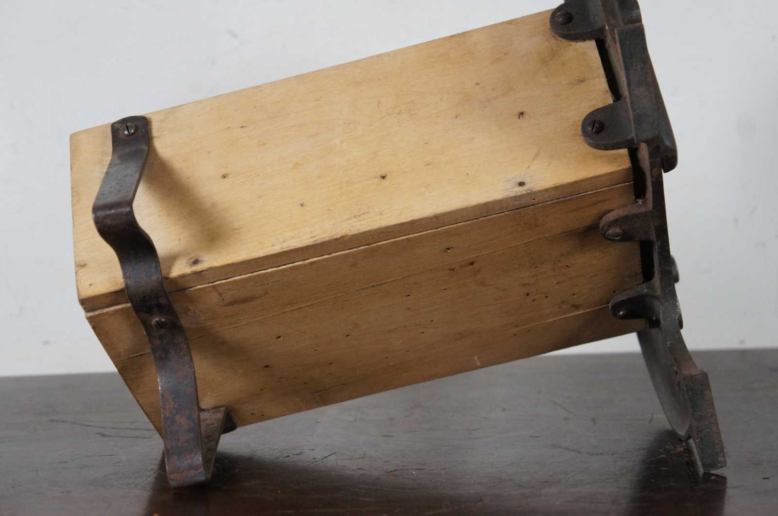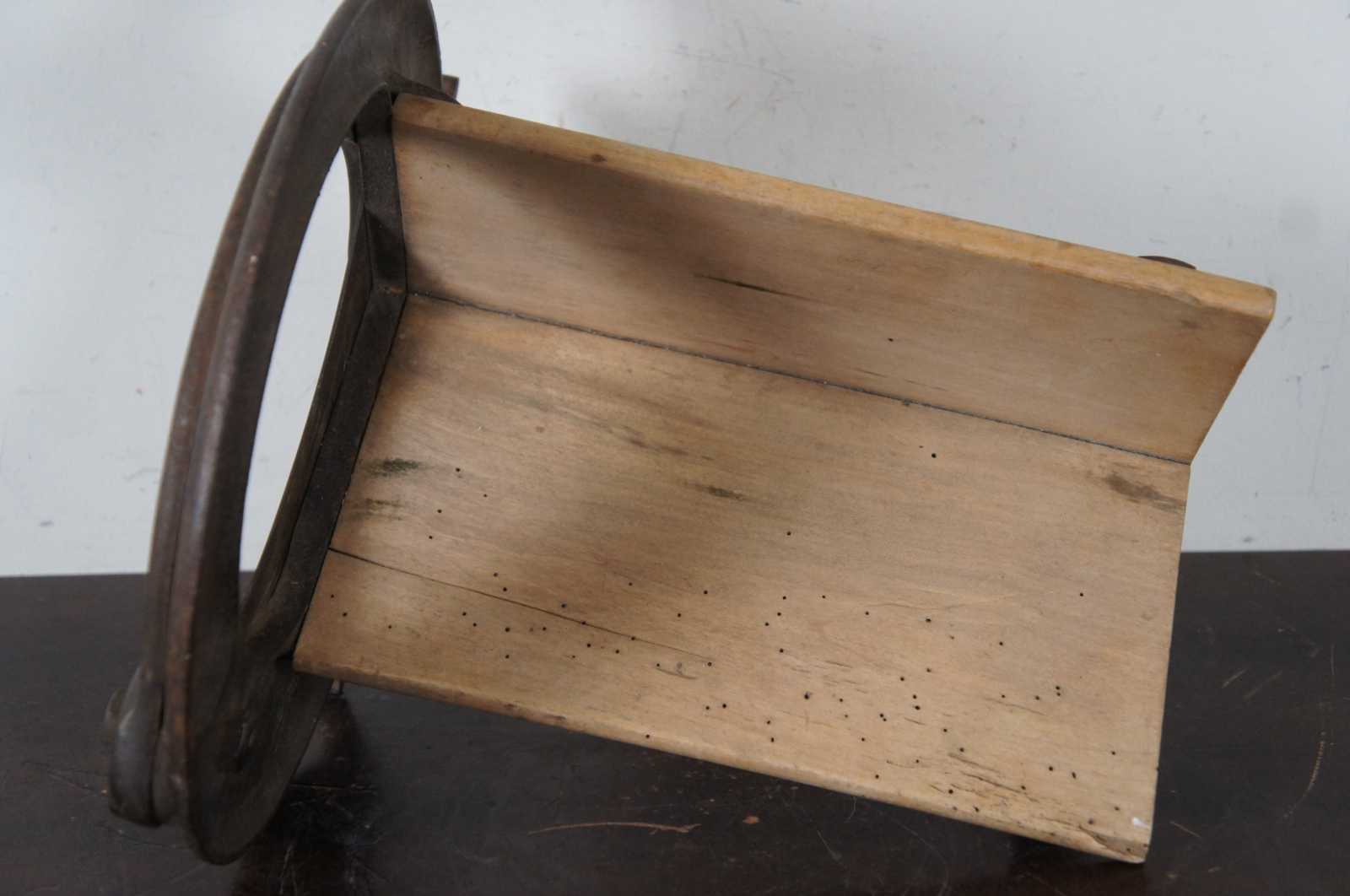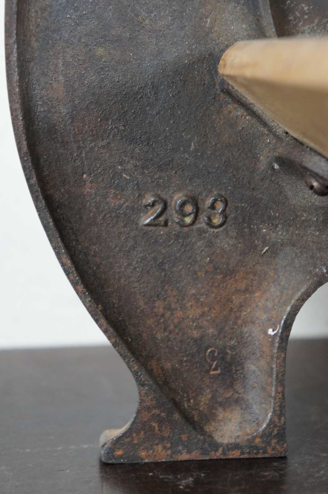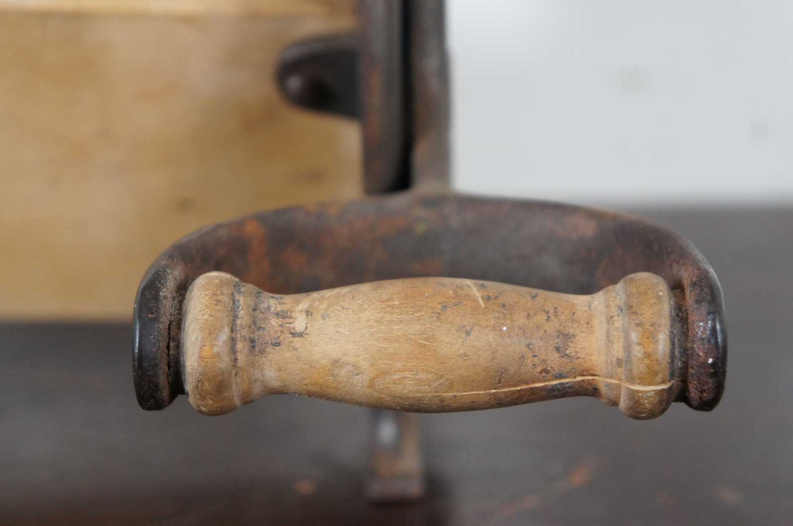 All original and rare Danish cast iron and wood bread or baguette slicer by Raadvad.