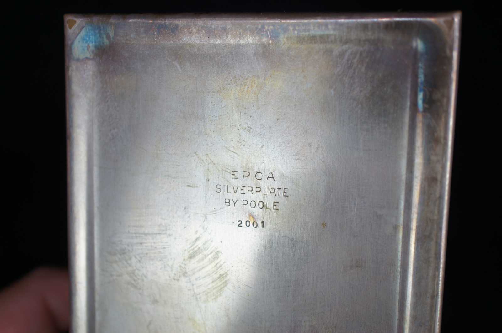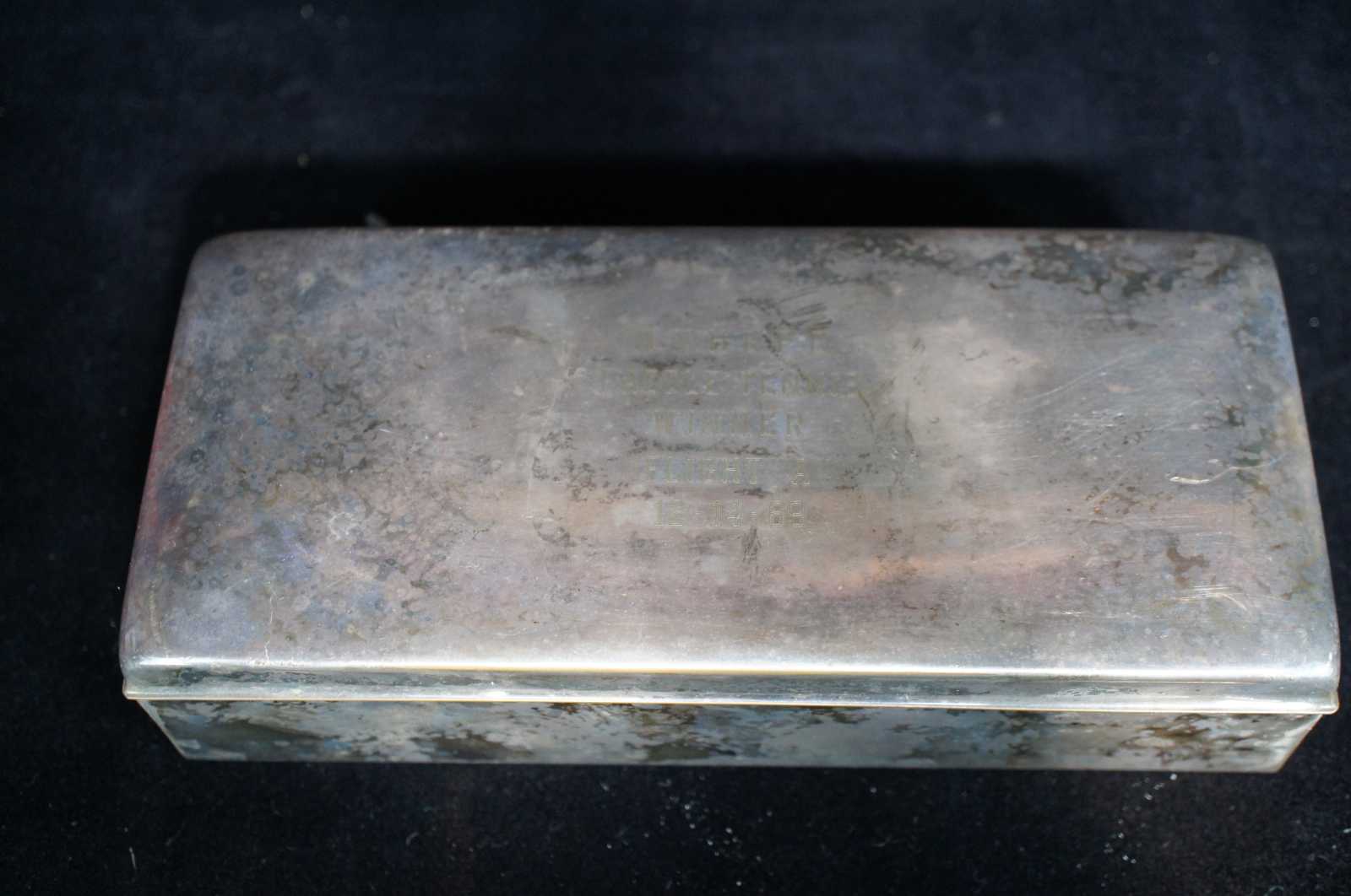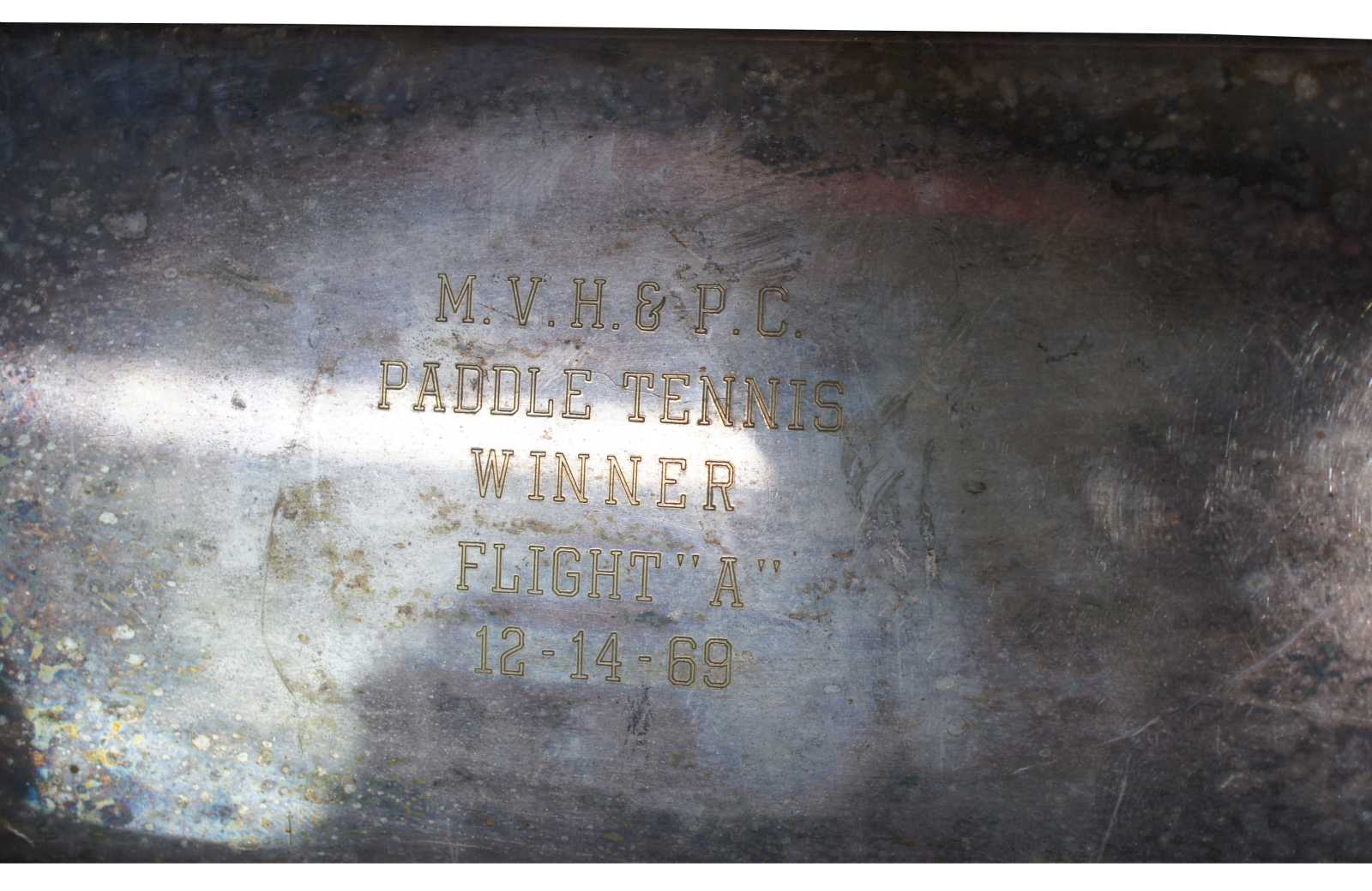 1969 Poole silverplate keepsake box engraved for the winner of flight A of the Paddle Tennis Tournament. Engraved M.V.H. & P.C., which is attributed to Miami Valley Hospital and Pine Club of Dayton Ohio.