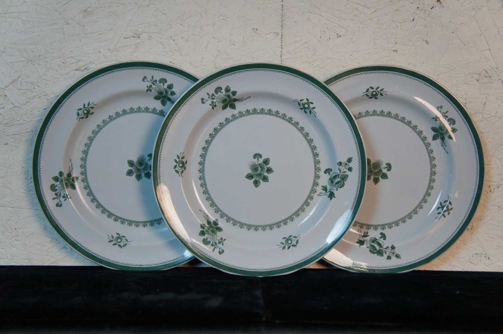 26 pieces of vintage Copeland Spode fine stone dinnerware pieces in the green Gloucester pattern.