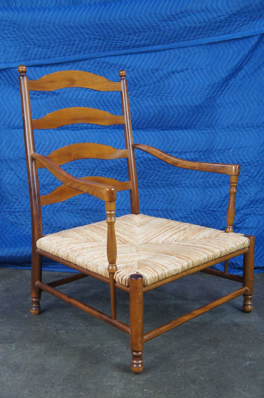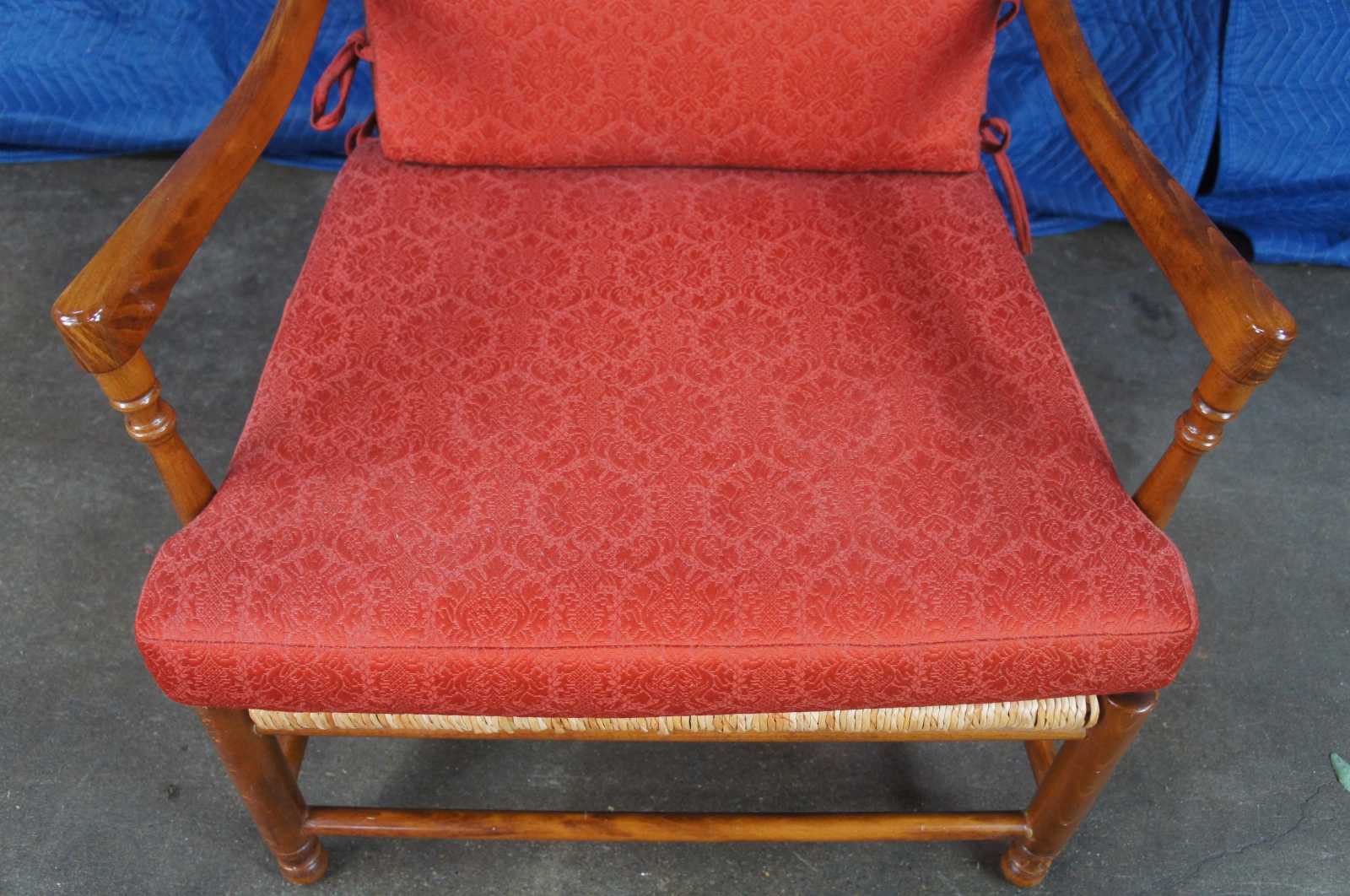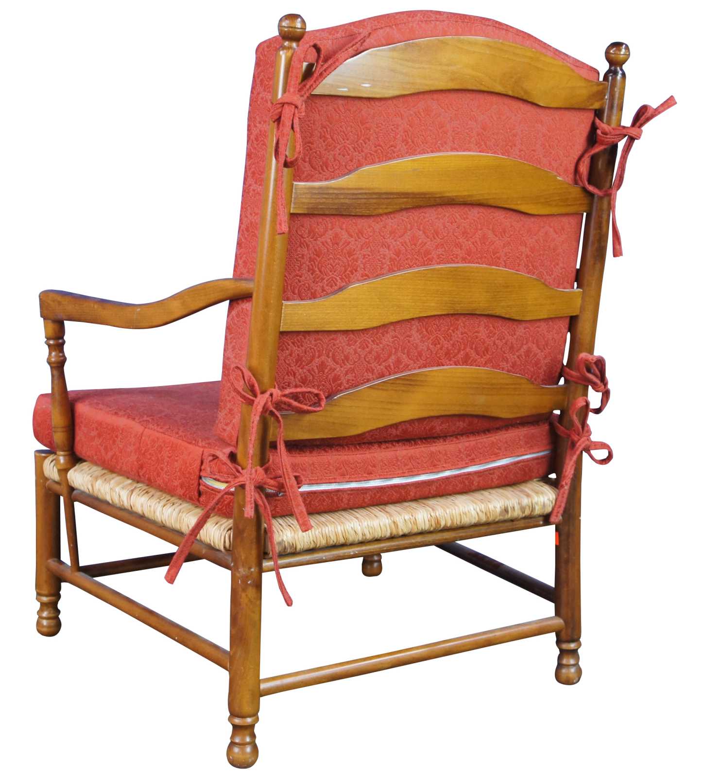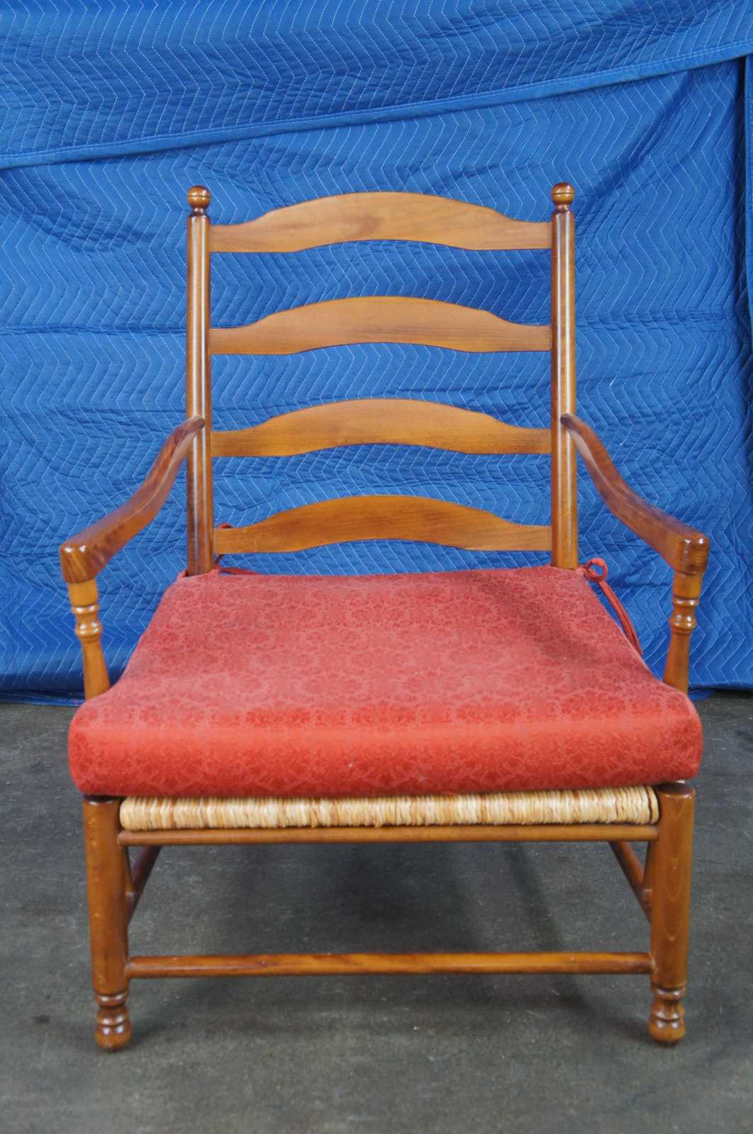 Late 20th century ladderback armchair. Made of walnut with rush seat and upholstered cushions. Made expressly for Exposures in Italy.