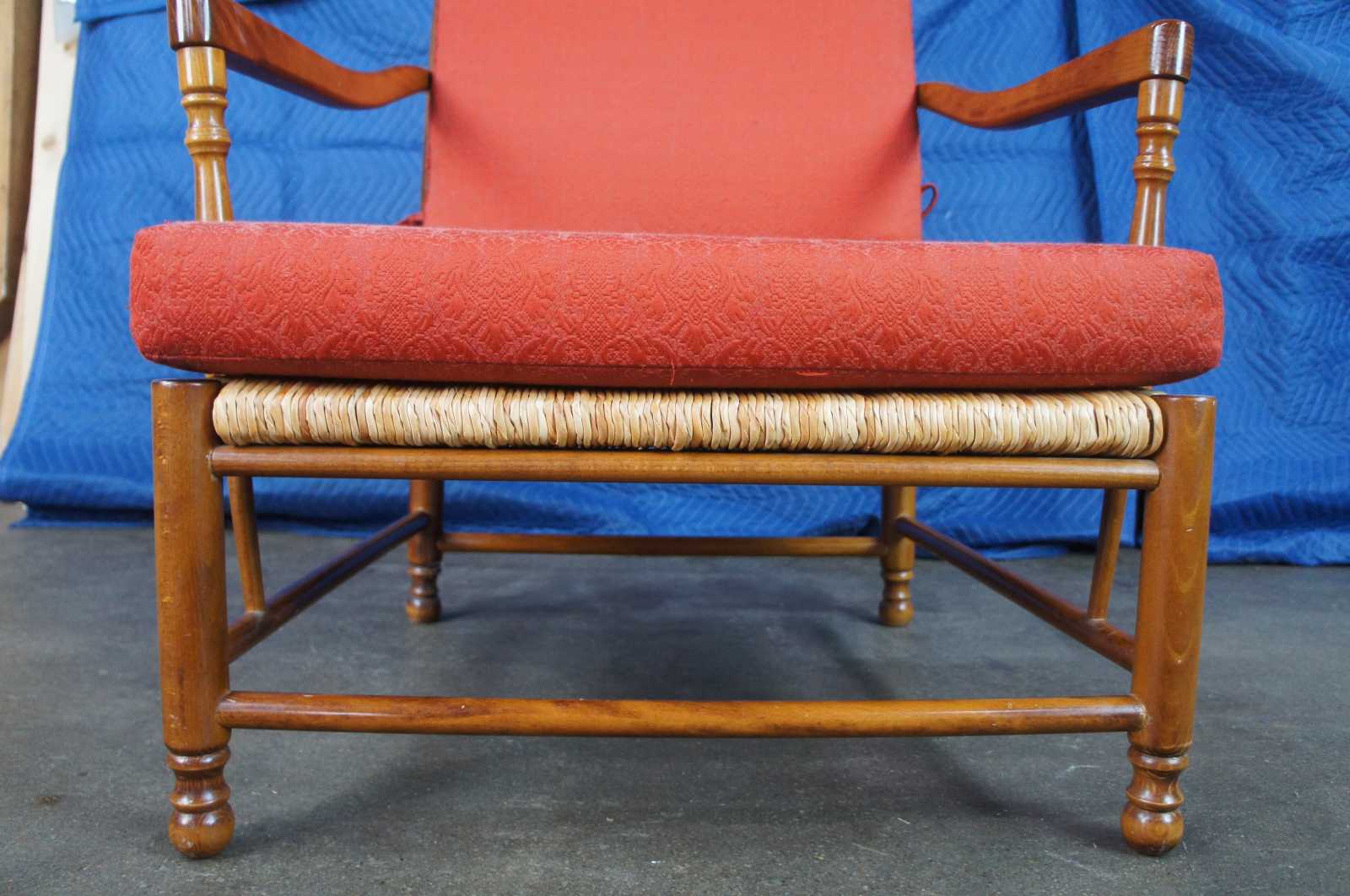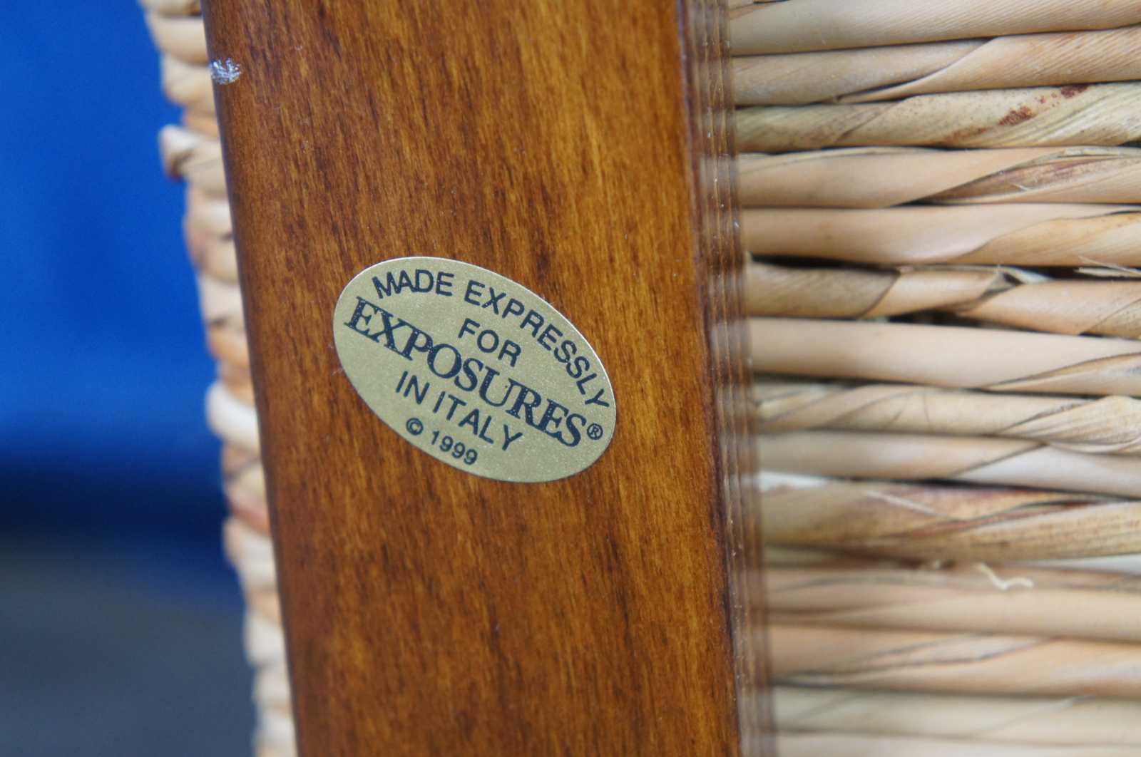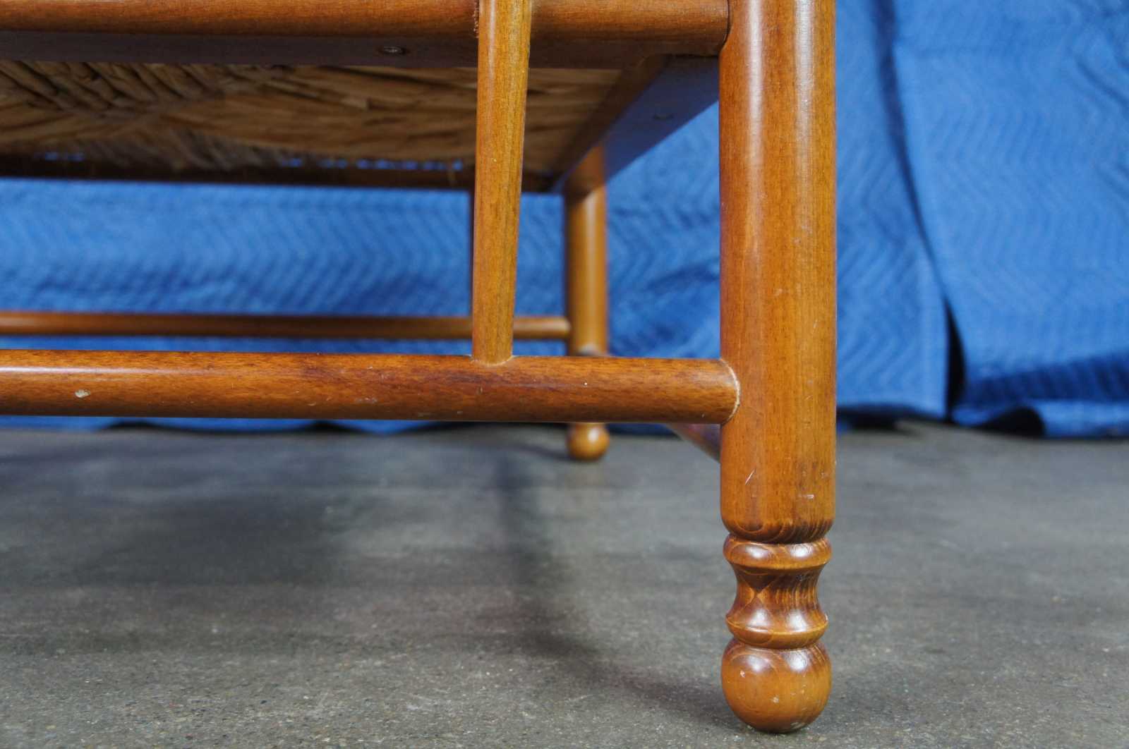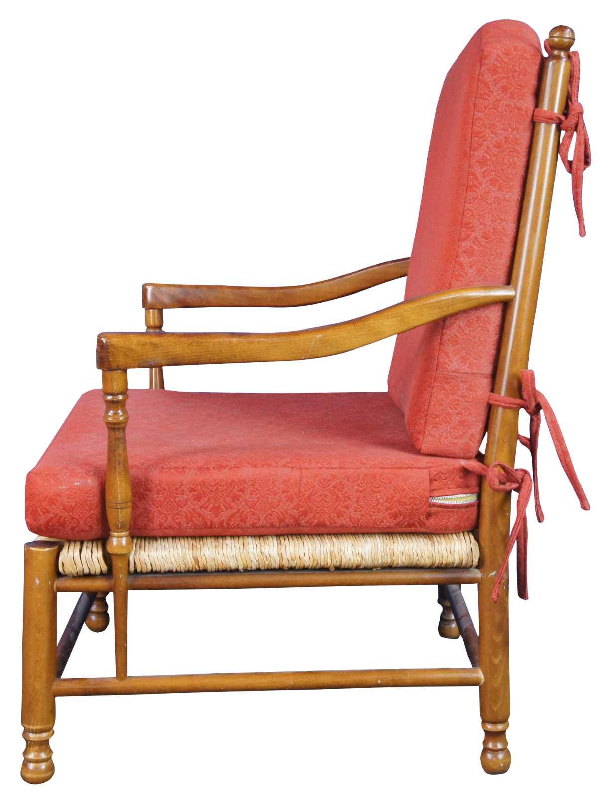 Late 20th century ladderback armchair. Made of walnut with rush seat and upholstered cushions. Made expressly for Exposures in Italy.