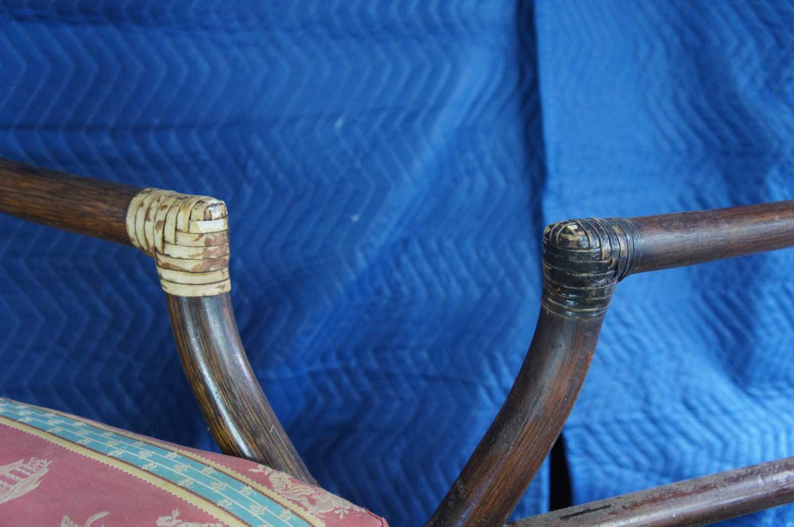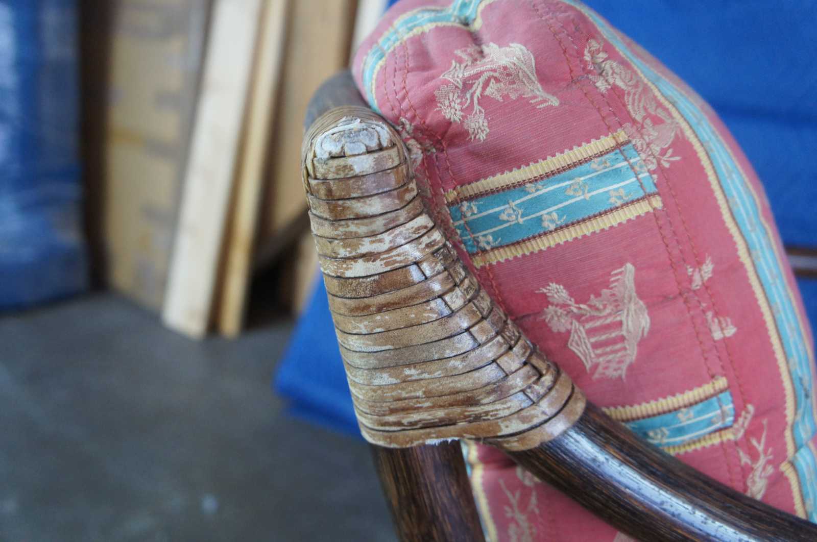 Good structurally, wear / distressing, slightly different finish and caning, one chair has seat and back cushion.