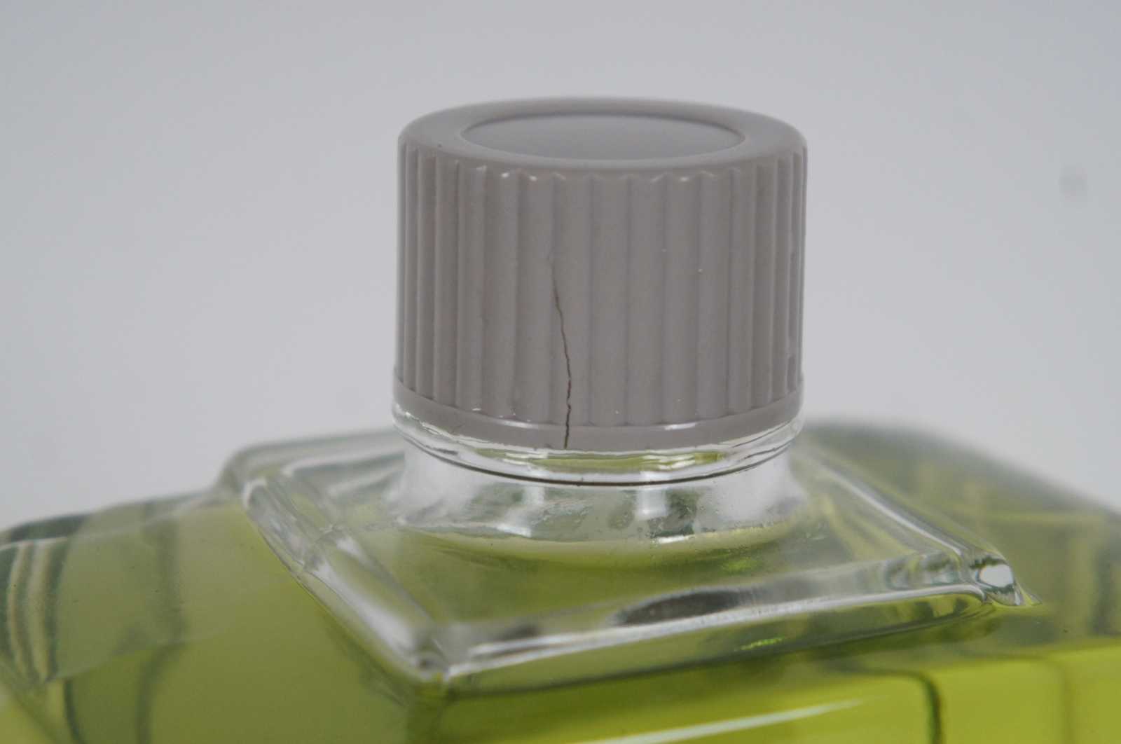 Good Overall – Liquid intact; small crack to interior lid; slight wear to outer lid edges; see pictures