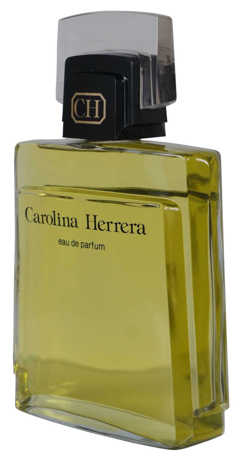 Vintage Carolina Herrera designer fragrance factice or dummy bottle with an elegant modern art deco inspired design, originally part of a department store display.