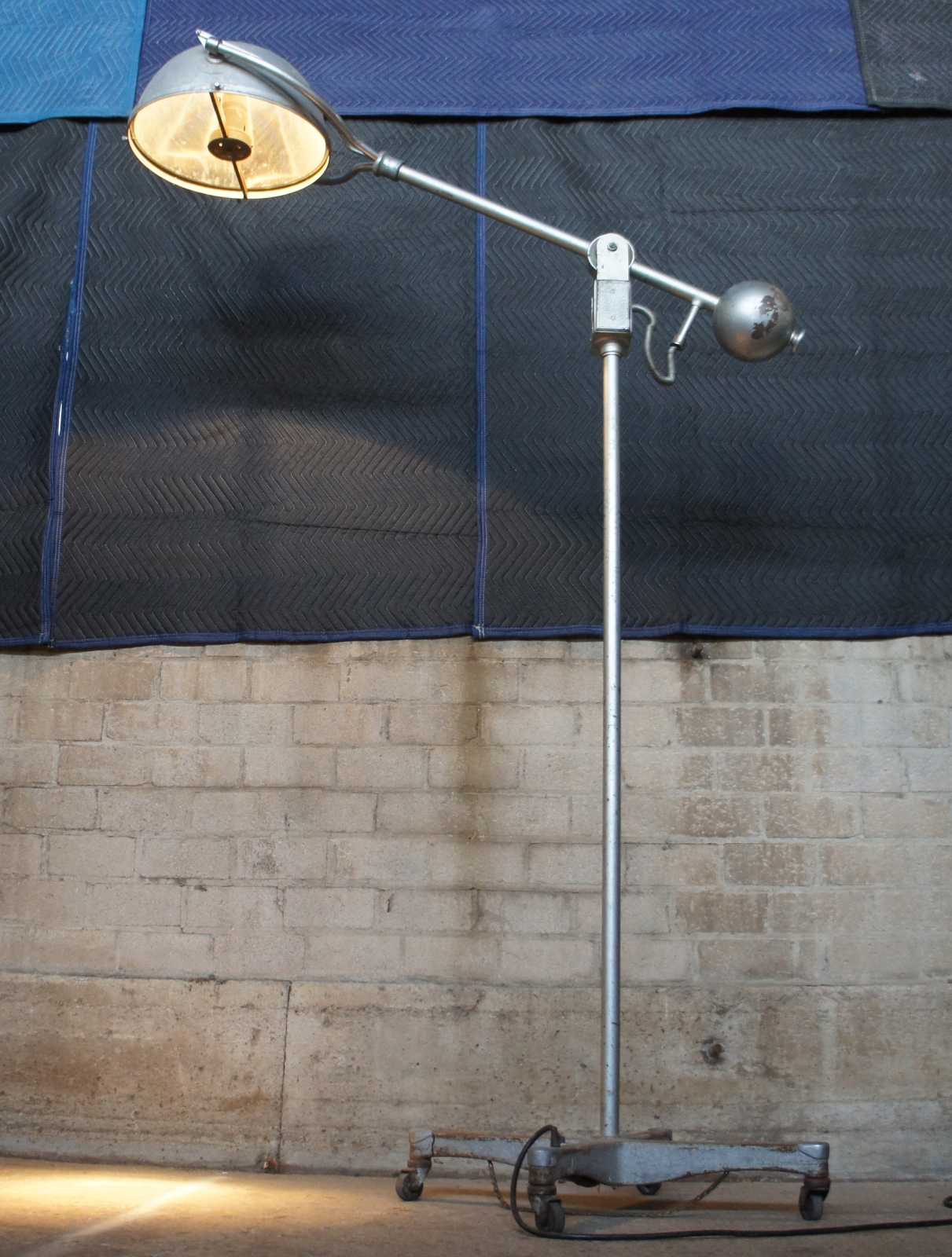 Massive antique Scanlan-Morris Co Medical / Surgical light, circa 1930s. Made of metal in Madison Wisconsin, featuring a heavy counter-balanced weighted end for easy articulation during surgery.