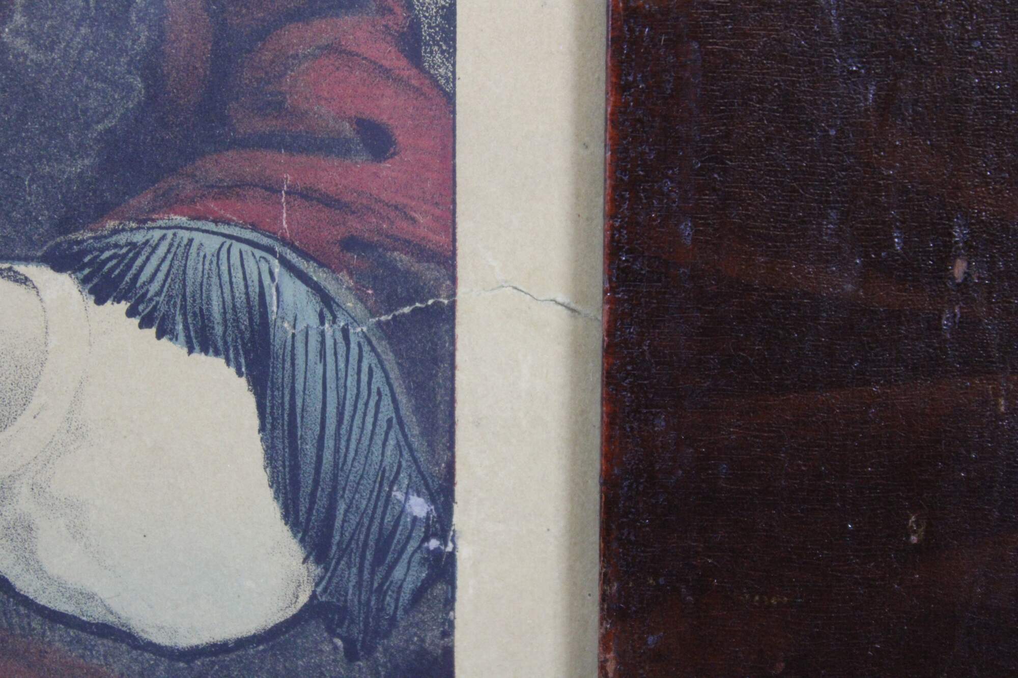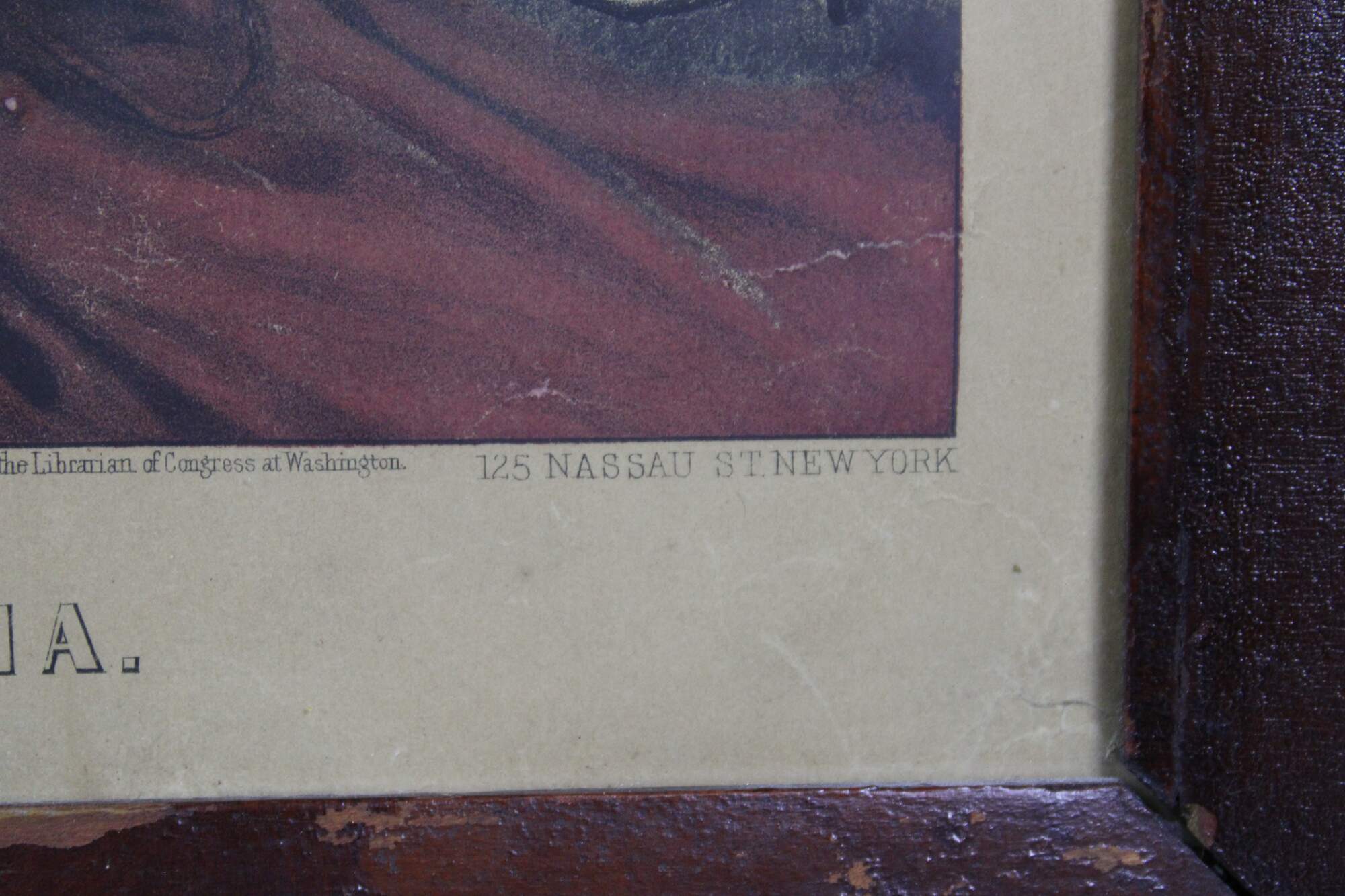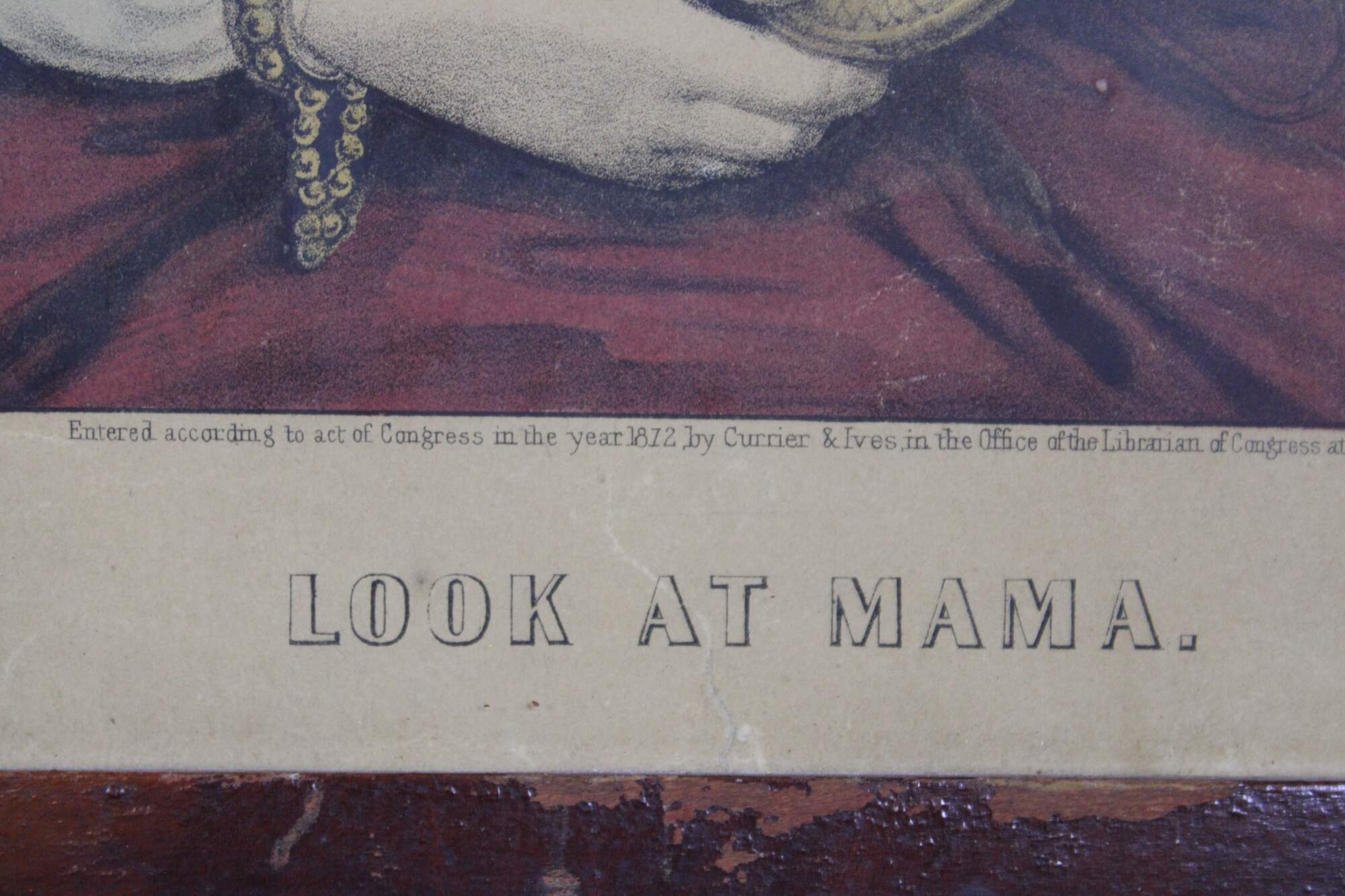 Circa 1870’s antique Currier & Ives colored lithograph print titled “Look at Mama,” featuring a mother showing a portrait of herself to an infant at her shoulder.