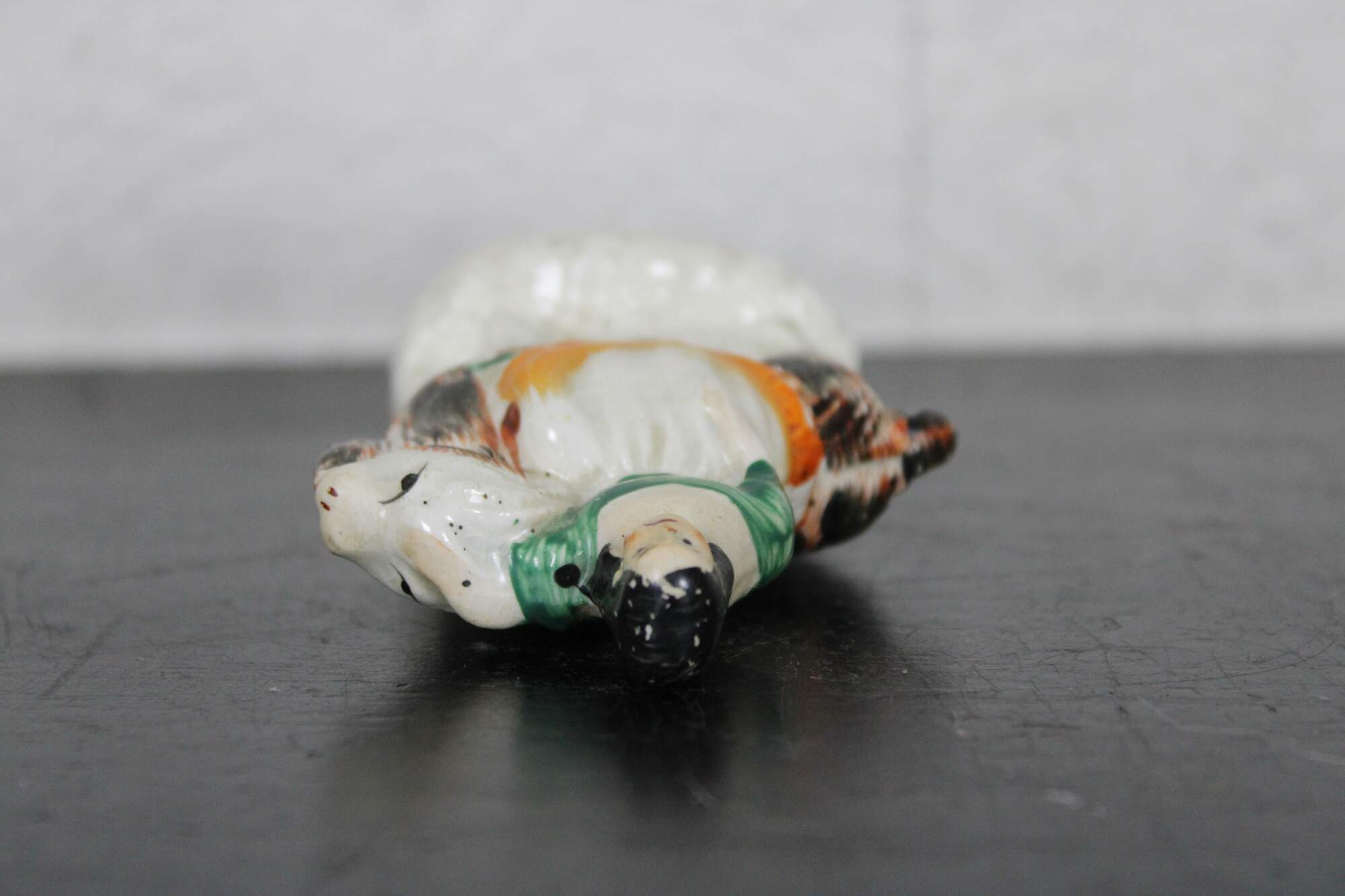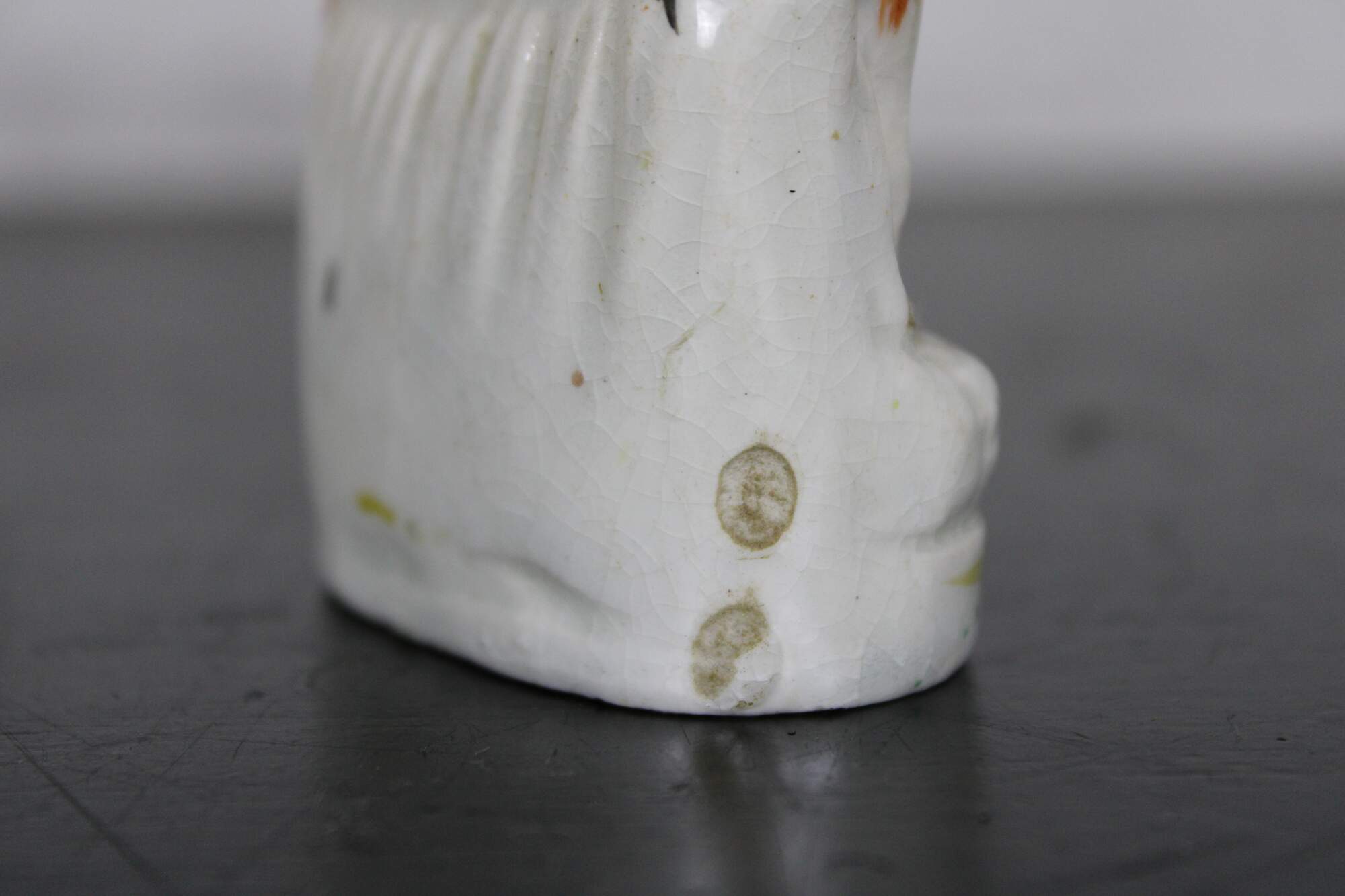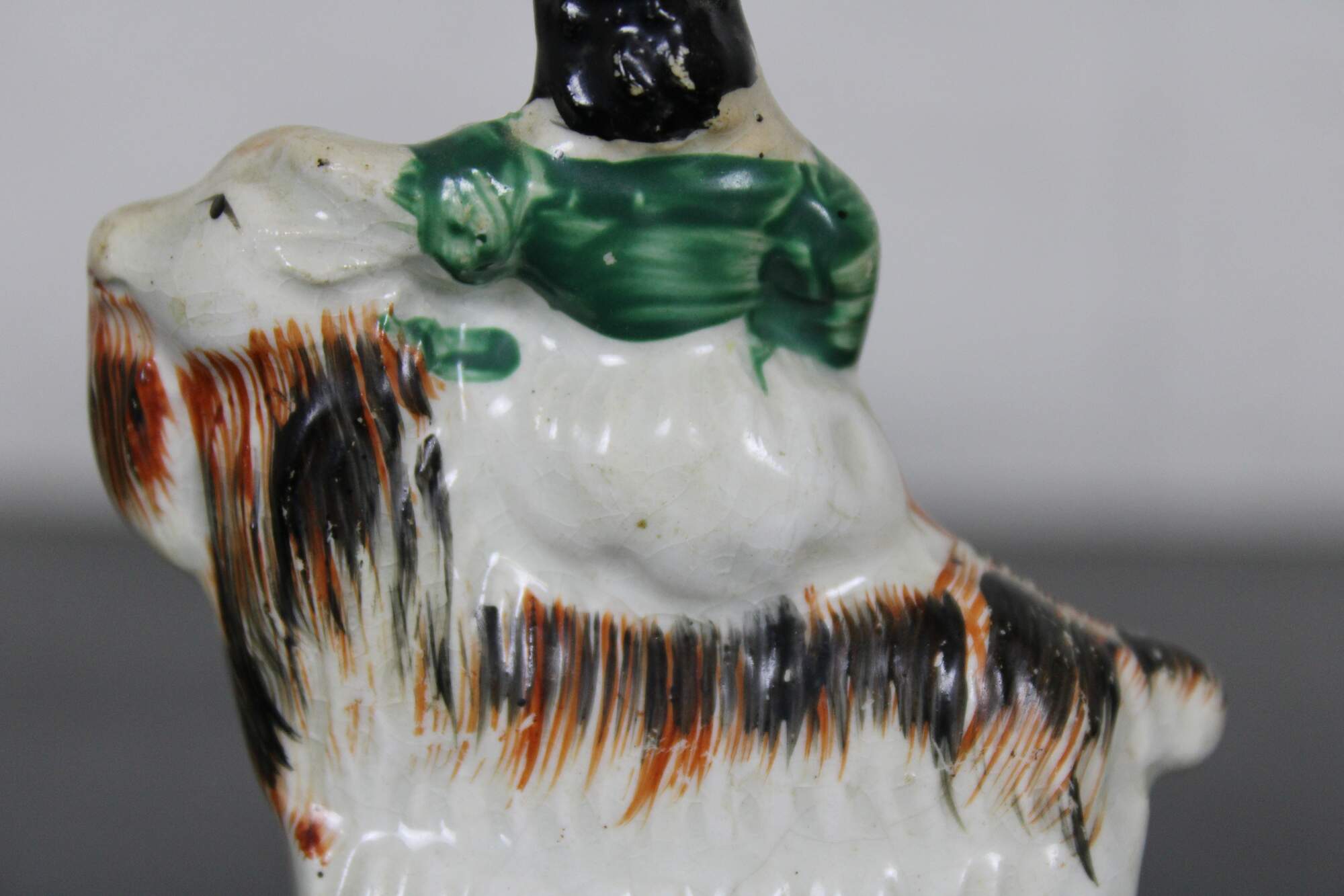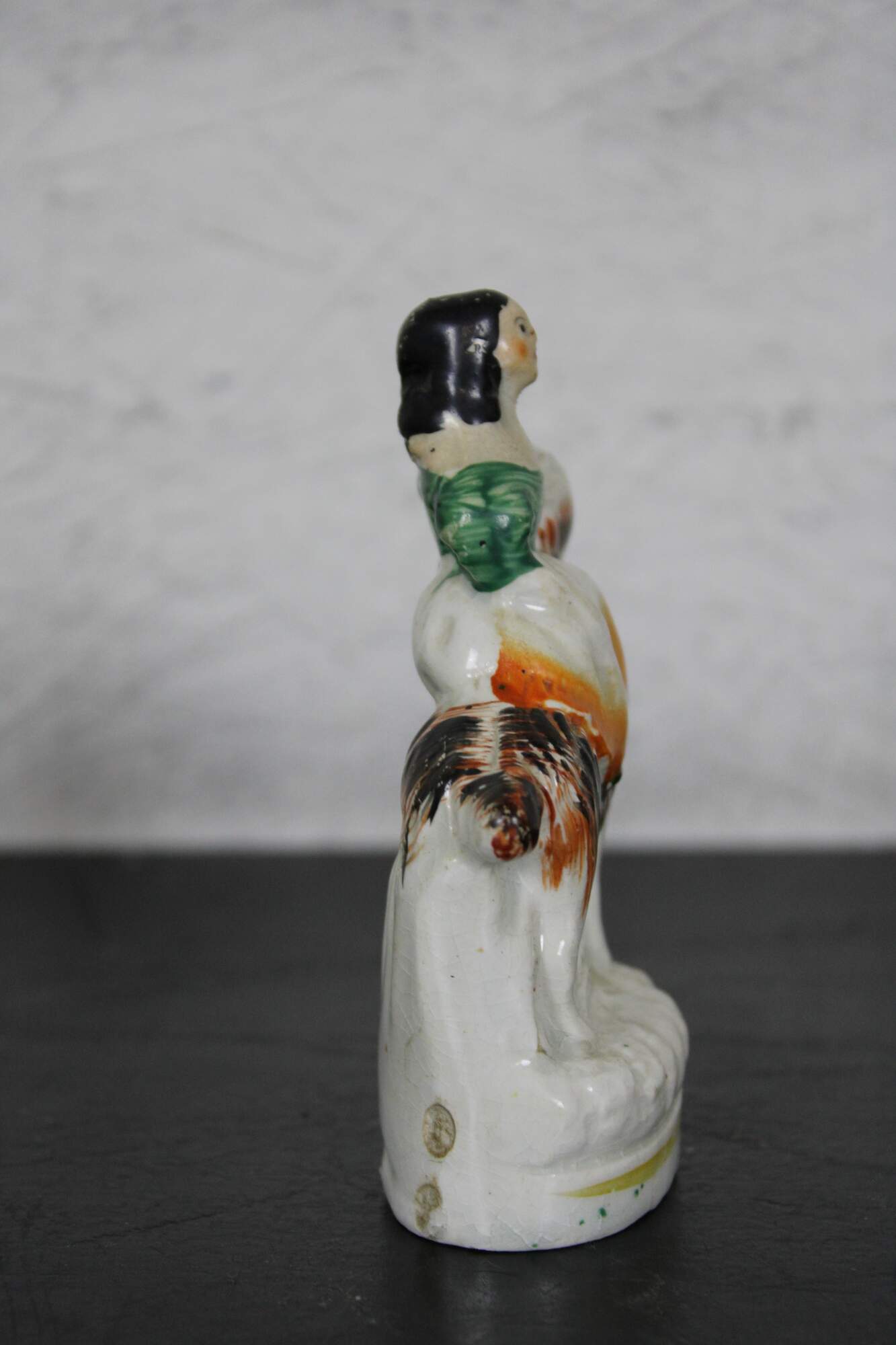 Antique Staffordshire porcelain figurine of a girl riding a goat.
