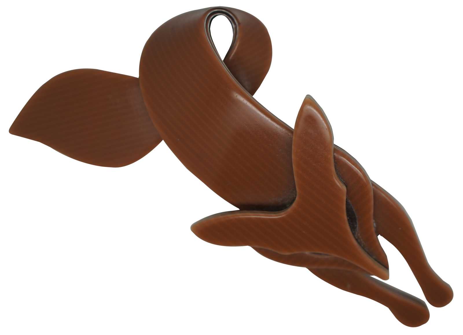 Vintage Lea Stein famous Renard fox shaped pin in subtly striped caramel brown bakelite.