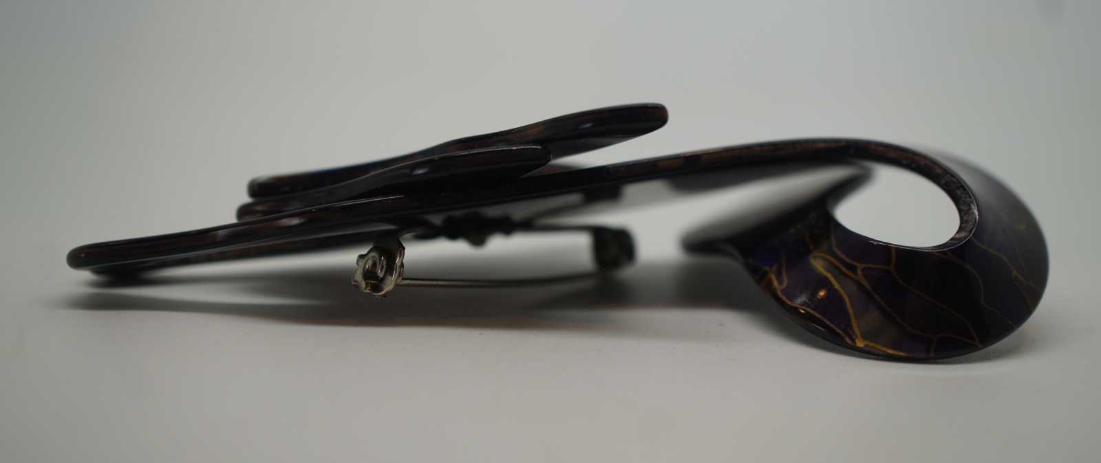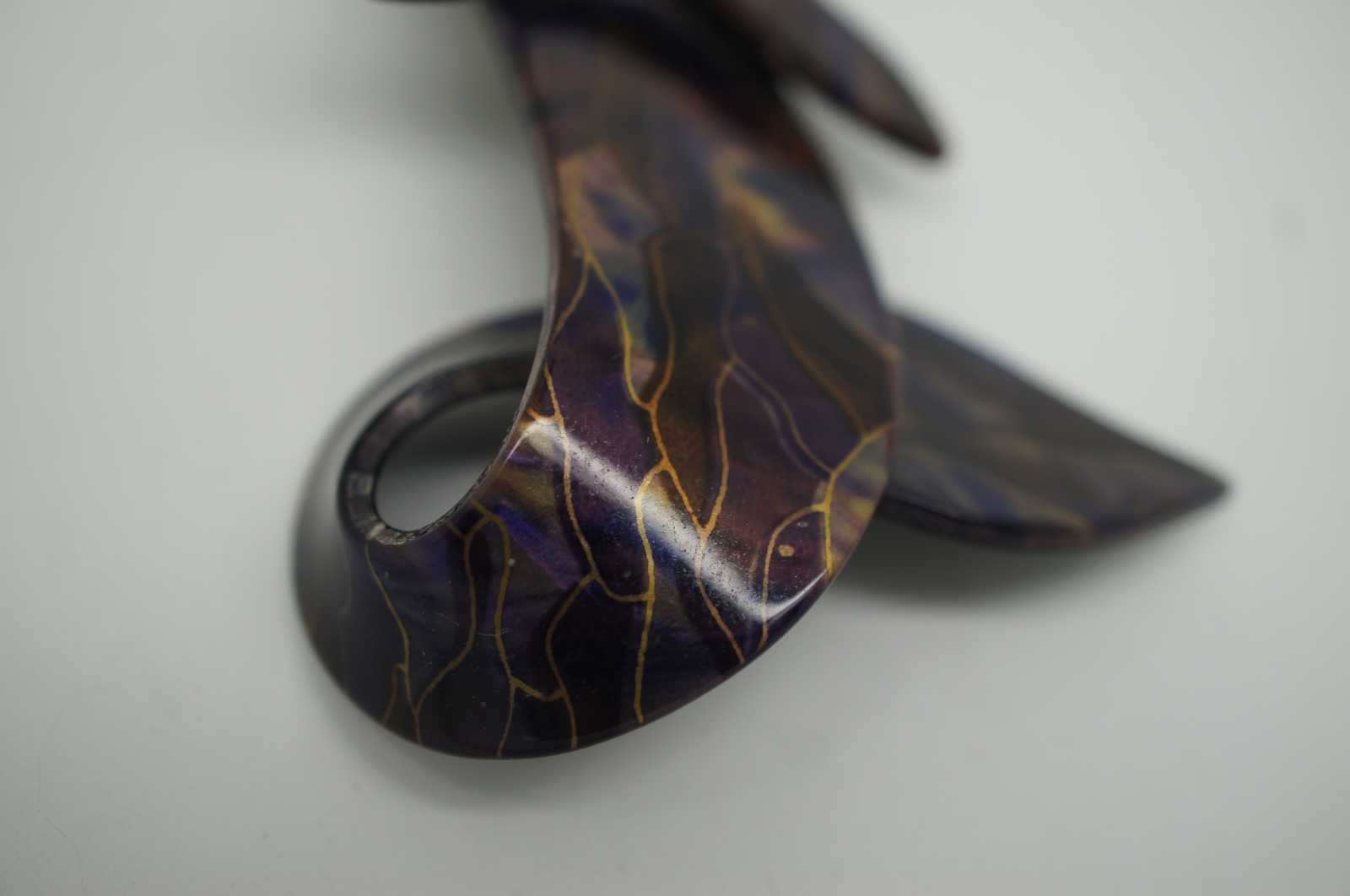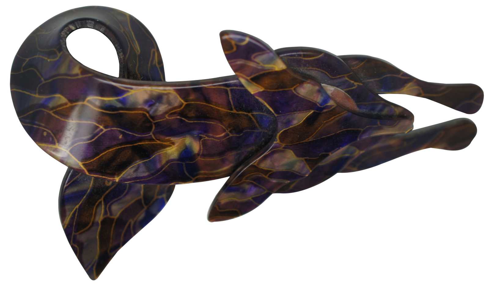Vintage Lea Stein famous Renard fox pin in mottled purple, brown and gold bakelite.