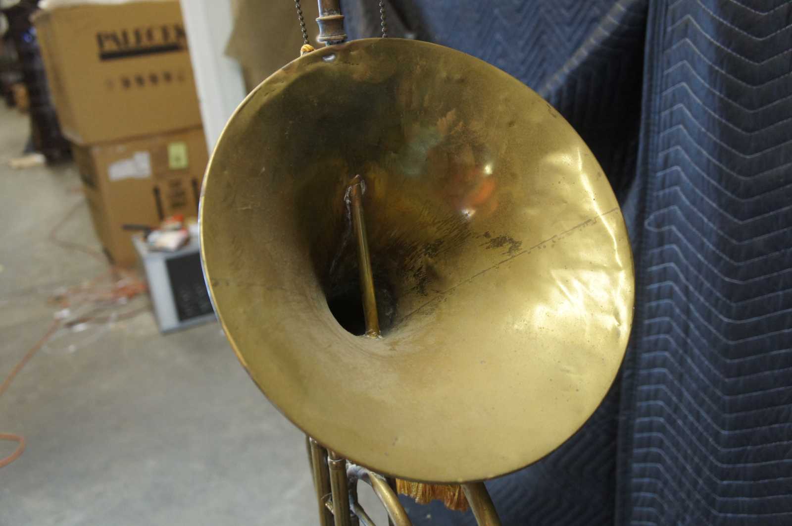 Fair condition, wear and distressing commensurate with age and use, denting and tarnish to instrument as well as a short o one of the sockets.