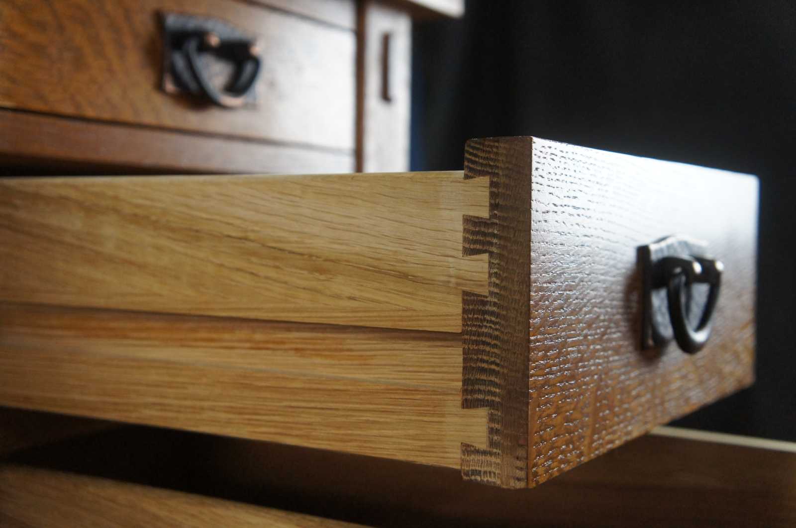 2 small uppers drawers in each pedestal (made with solid drawer carcasses joined with lap and through dovetails).