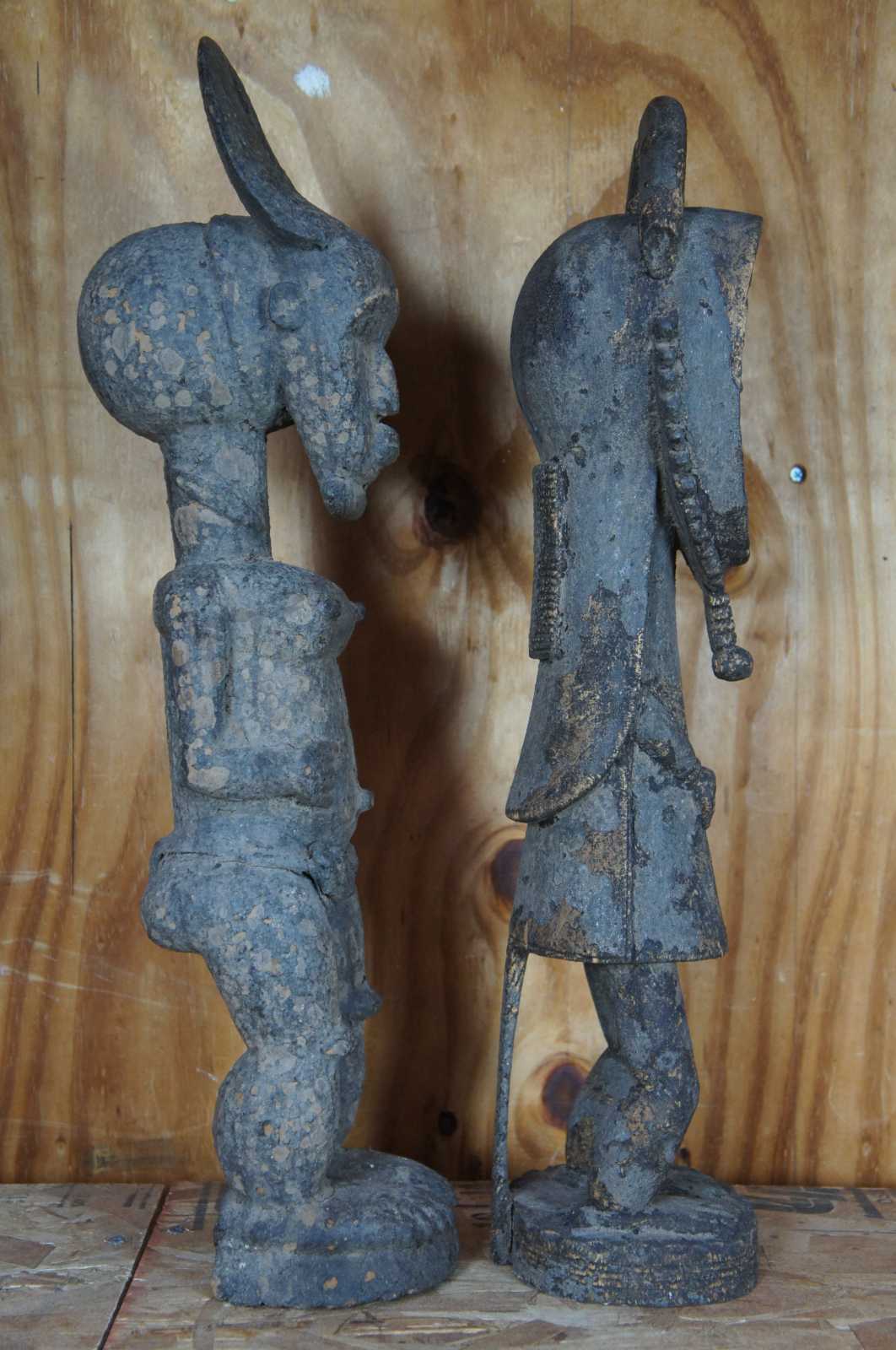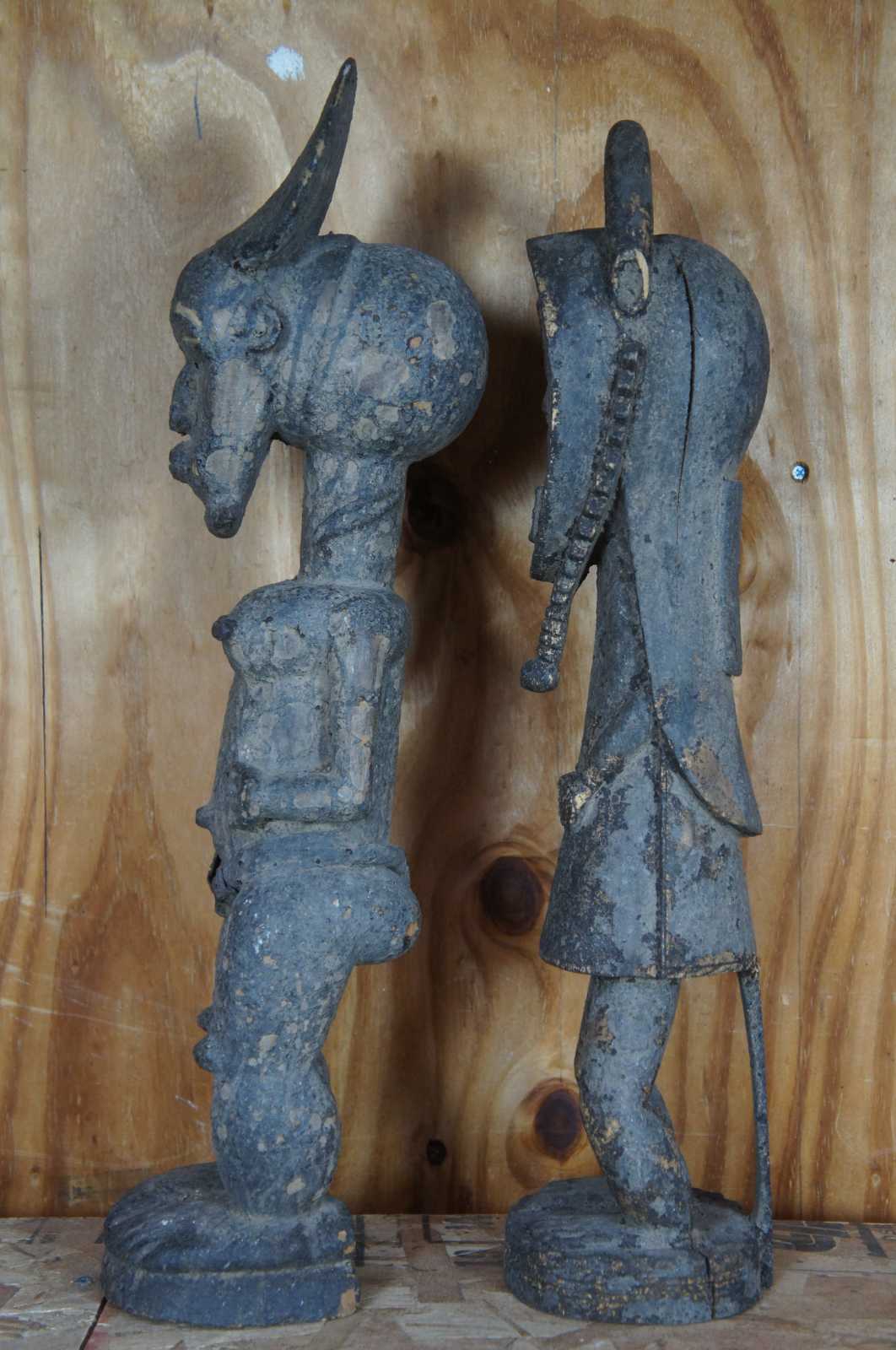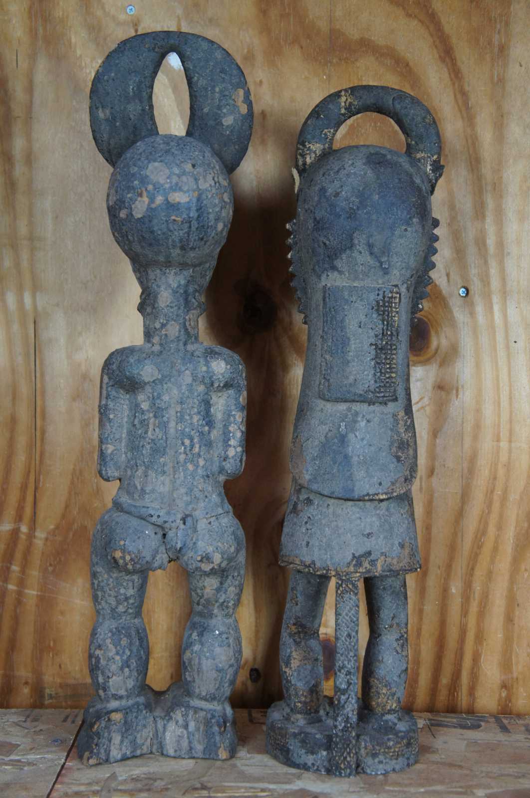 A fine and Impressive pair of primitive antique Baule and Jimini carved African figures, Ivory Coast.