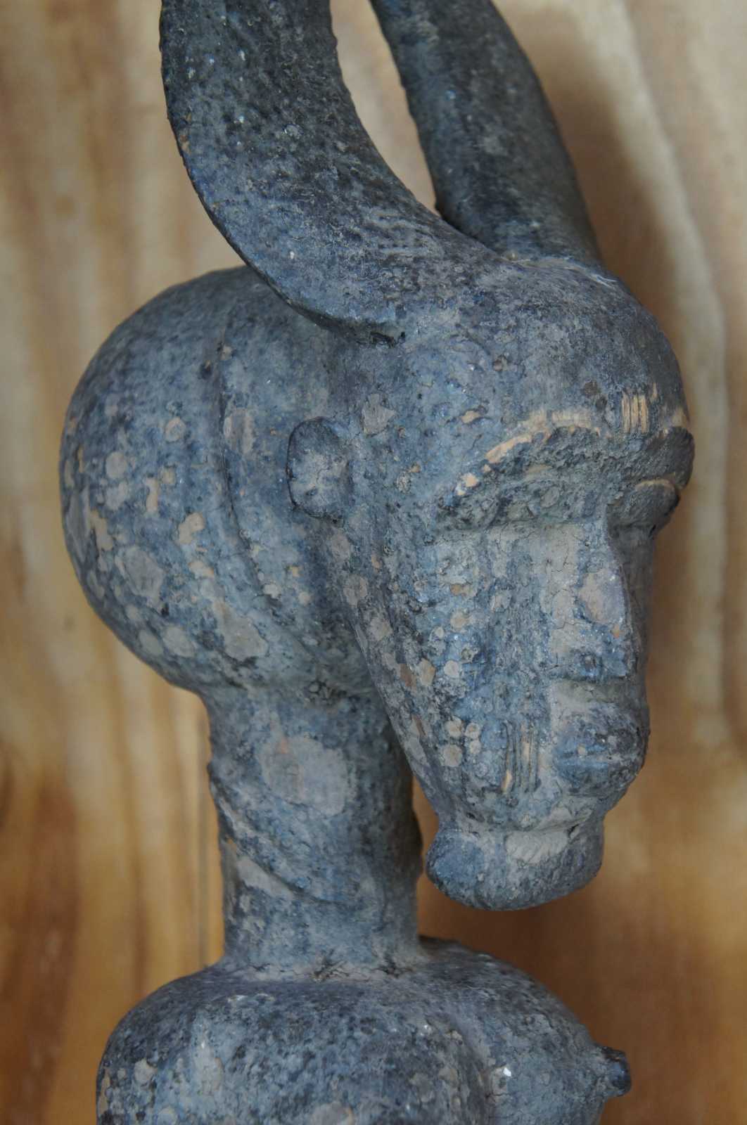Baule figures can be among the most elegant and designed pieces in Africa. Many show careful execution of face, coiffure and scarification details, with refined forms but no loss of expressiveness and power. The quiet, dignified figures embody spirits from the other world. They functioned as the home of a spirit to whom sacrifices were made and had to be placated with care.