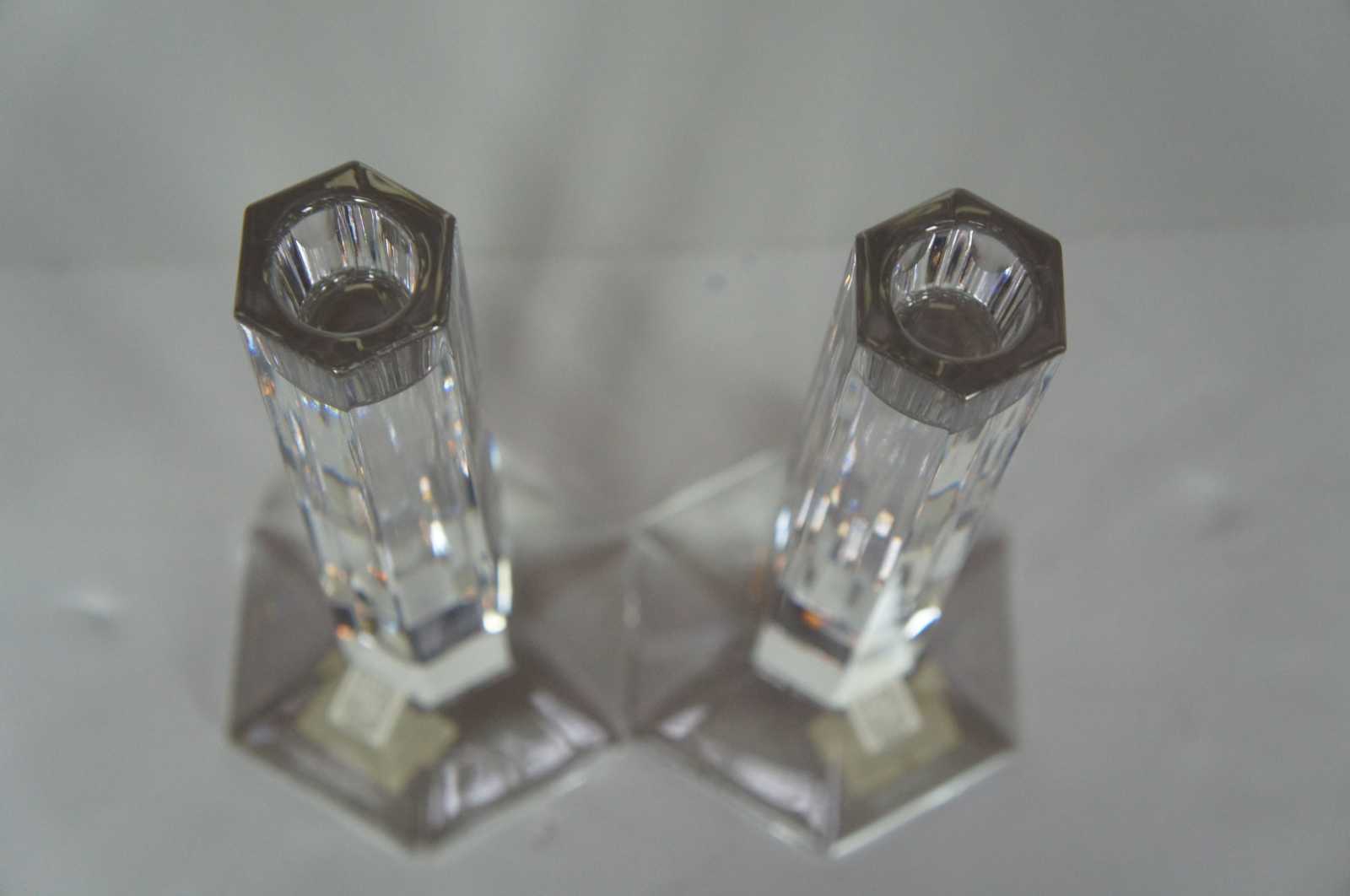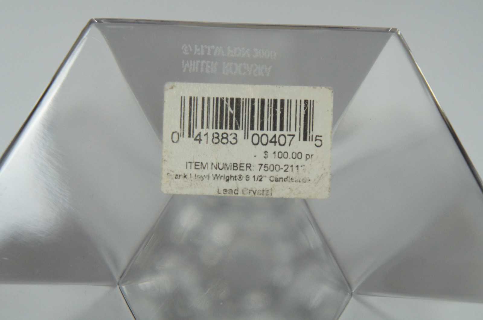 Circa 2000 Miller Rogaska Frank Lloyd wright Collection lead crystal geometric candlestick pair. item 7500-2113