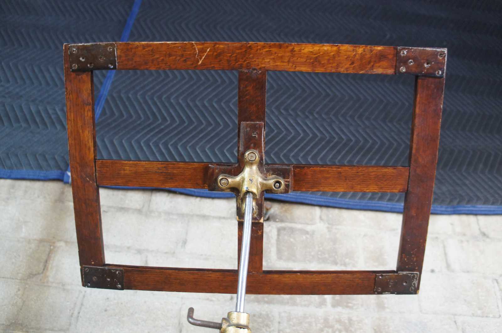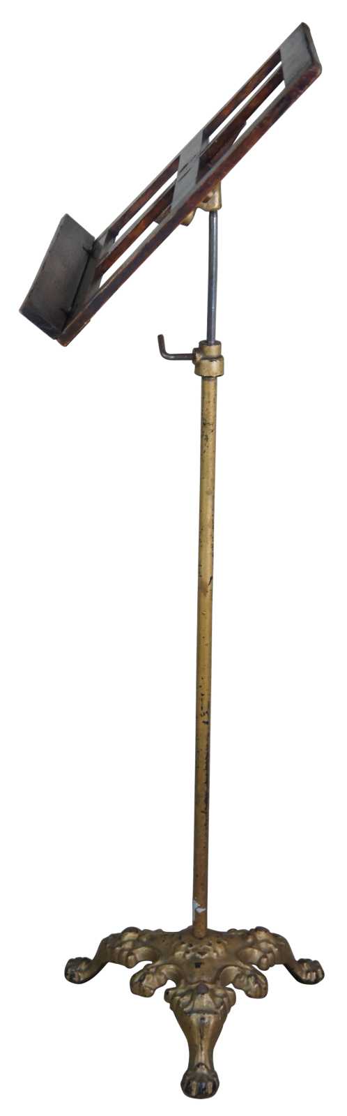 19th century antique Victorian cast iron & oak music / dictionary / book / library lectern or stand. Featuring a gilt cast iron base decorated with floral motifs & fitted adjustable iron rod.