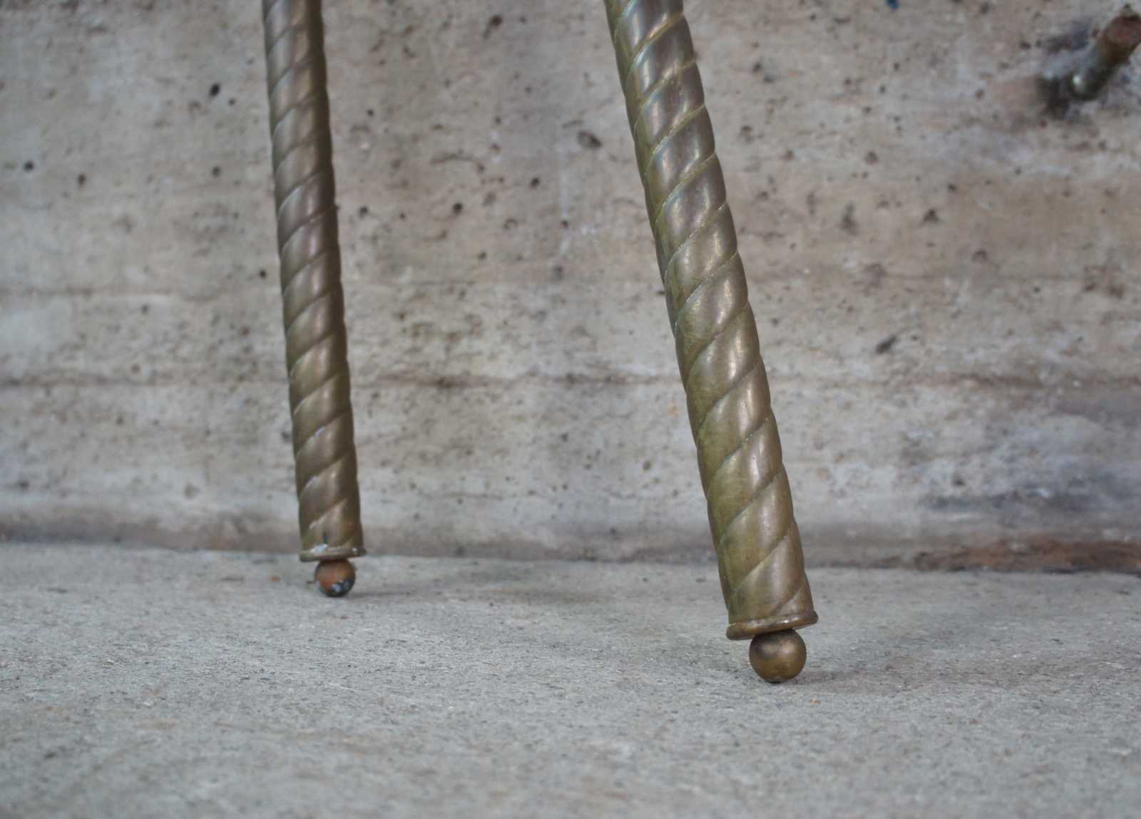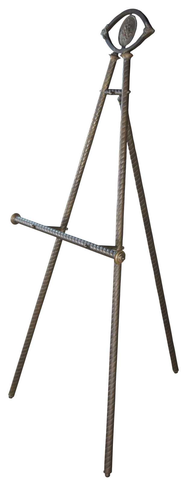 Exquisite antique 19th century brass easel. Features a twisted rope design and BAS relief oval plaque mounted between an "Eye" shaped finial. Plaque features two cherubs amongst the clouds set within a beaded frame