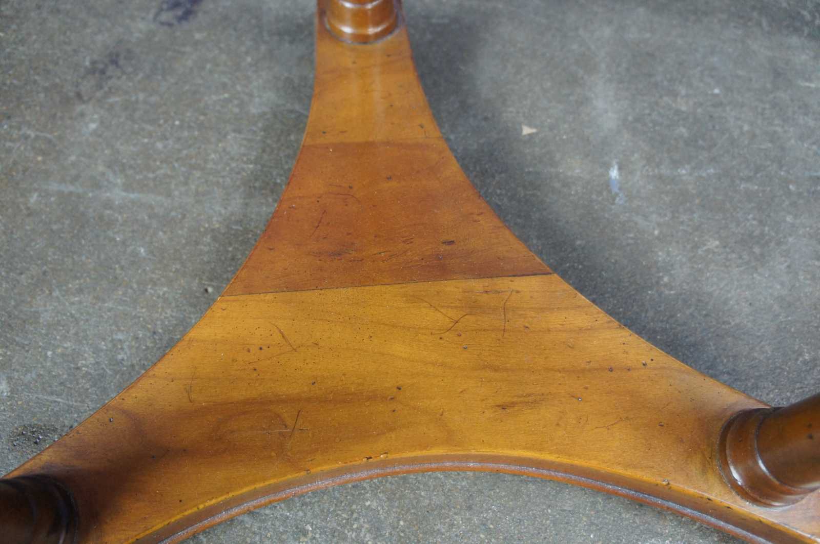 Mid Century Fine Arts Furniture Company Gueridon side table or plant stand. Made of cherry featuring round form with Italian marble top, three turned columns and triangular base. Marked Italy on base of marble and Fine Arts Furniture Co, 3310.