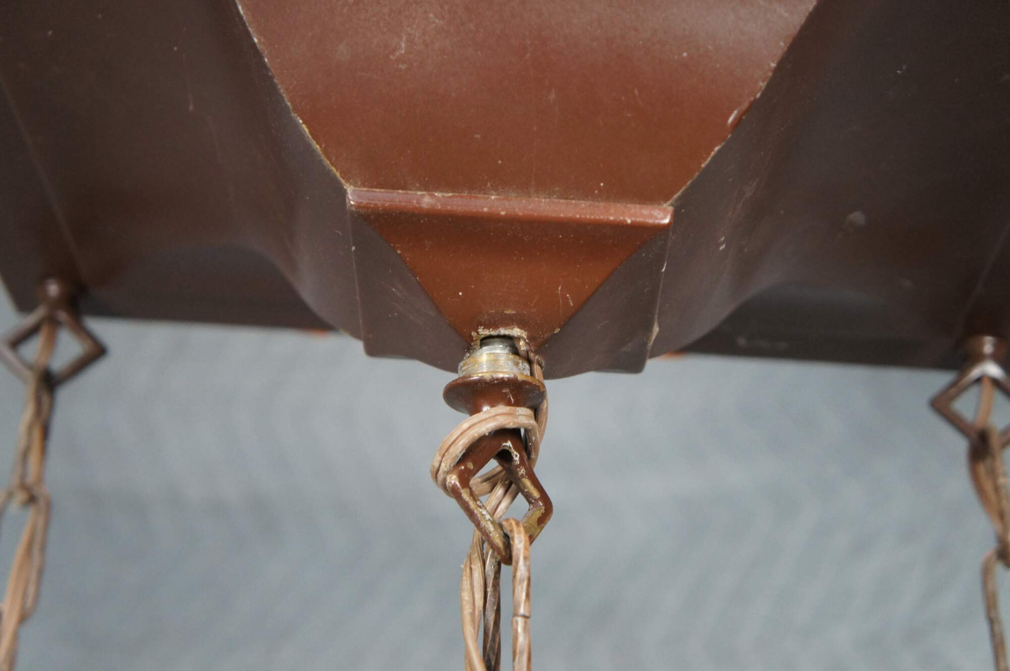 Good Condition; scratching and marking from use and age. Center pendant hole is a little miss aligned / bent / widened.
