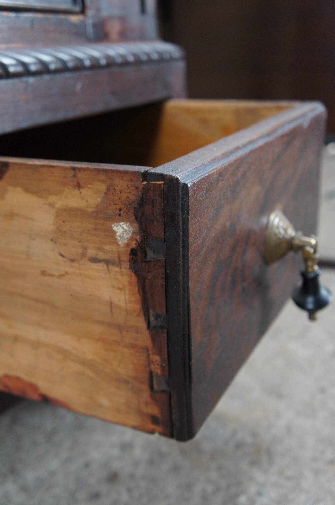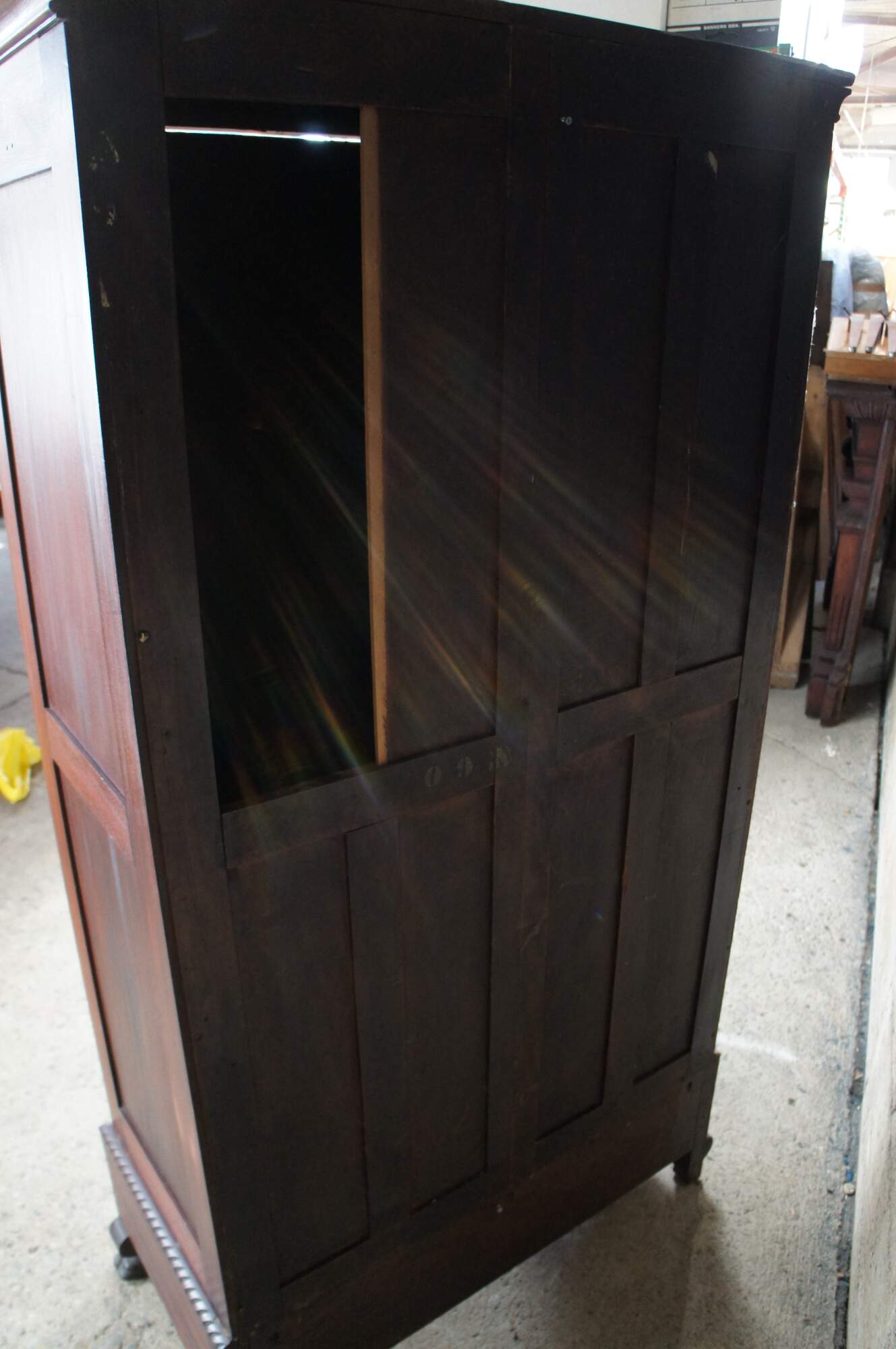 Good Antique Condition; general wear from age and use. Edge wear, some missing veneer. Missing panel along the back. Pack panel can be replaced before shipping for additional cost.