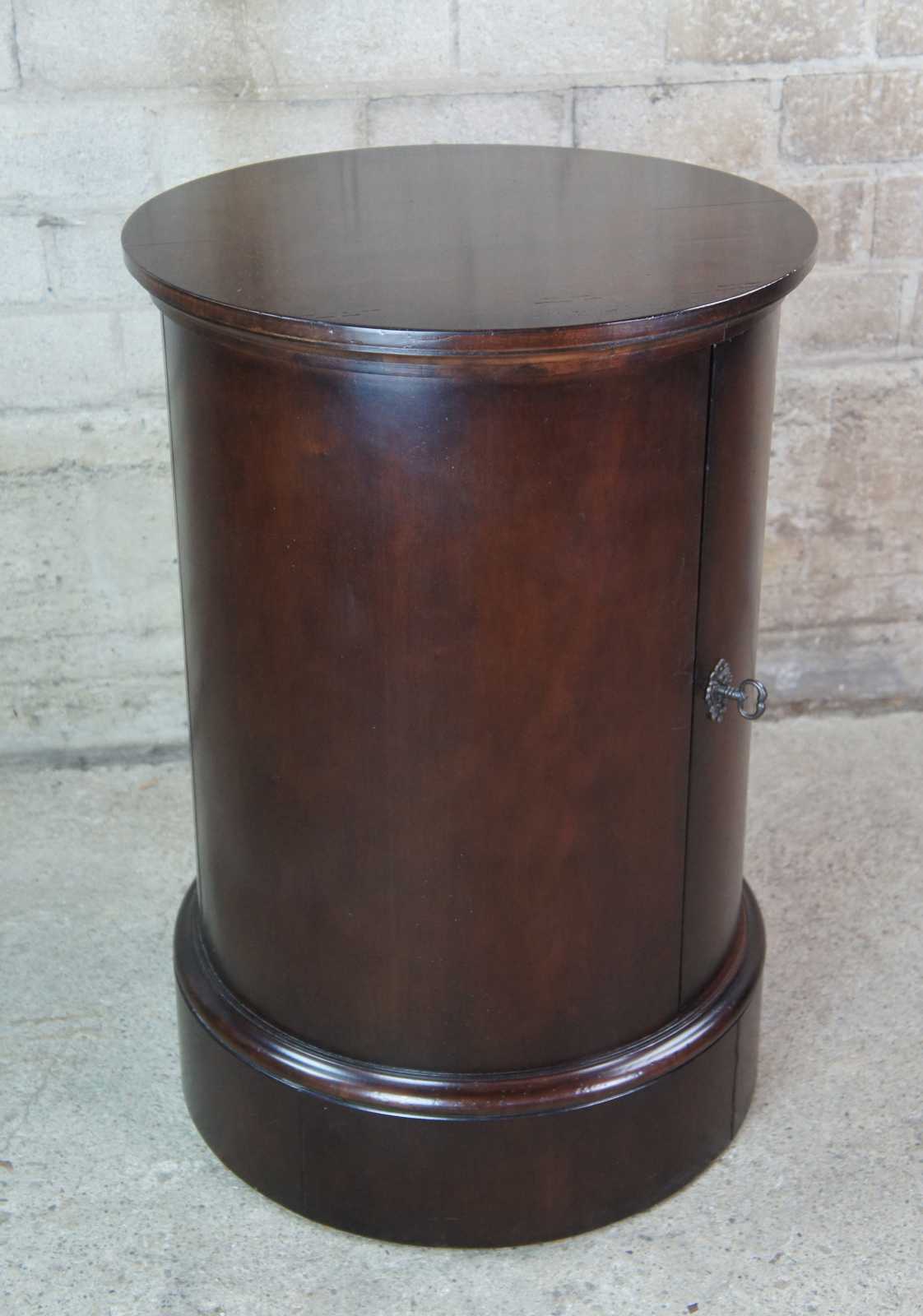 Two Henredon for Ralph Lauren drum table or somno cabinets. Made of mahogany featuring round form with lower cabinet.