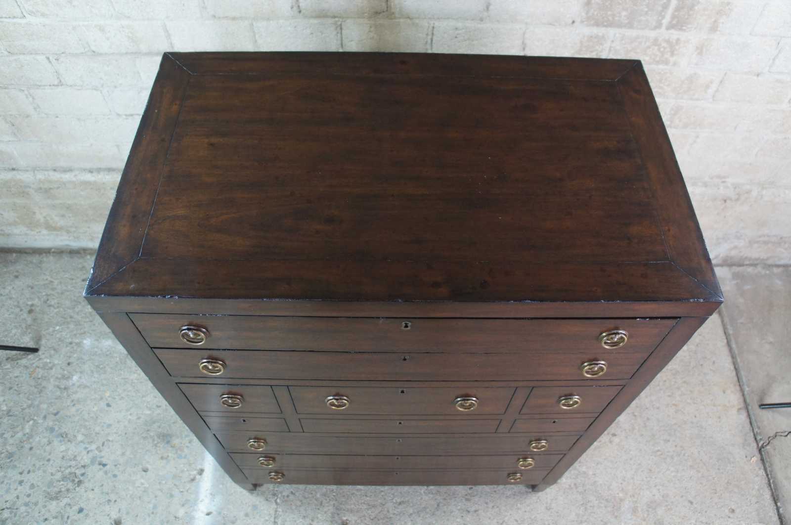2017 Henredon Acquisitions chest of drawers or dresser. Made of mahogany featuring rectangular form with five drawers and brass hardware. 3401-05-682