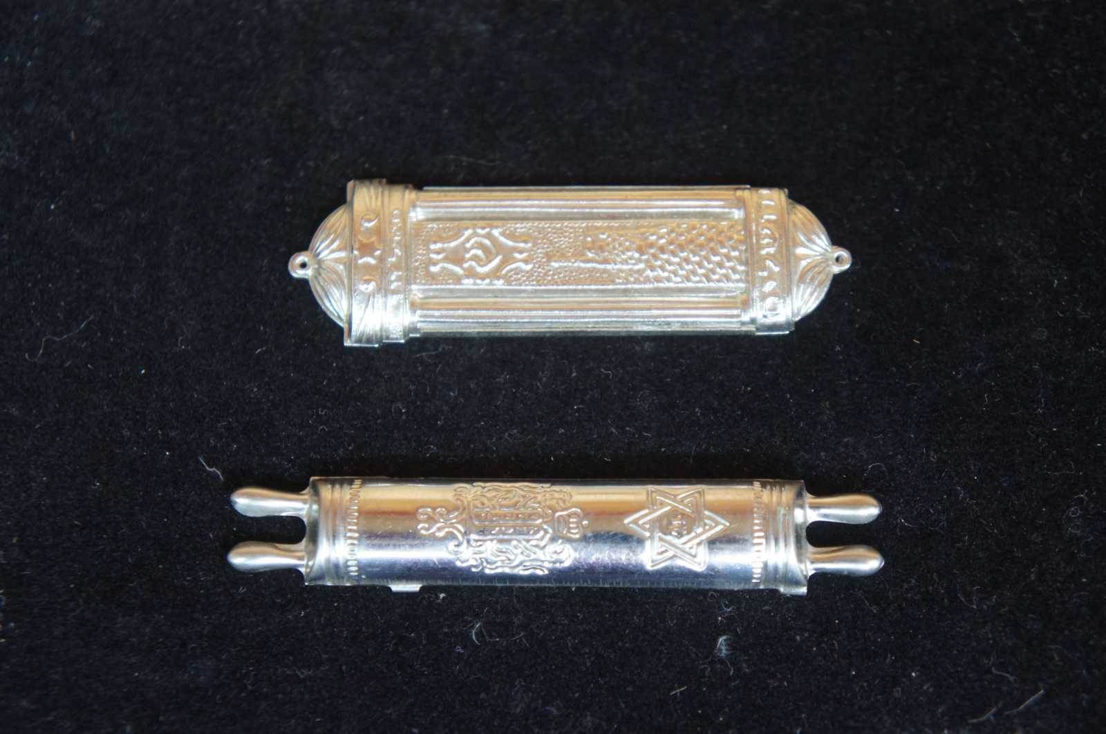 Vintage lot of ten Israli Mezuza / Mezzuzot. Made of various metals and styles.