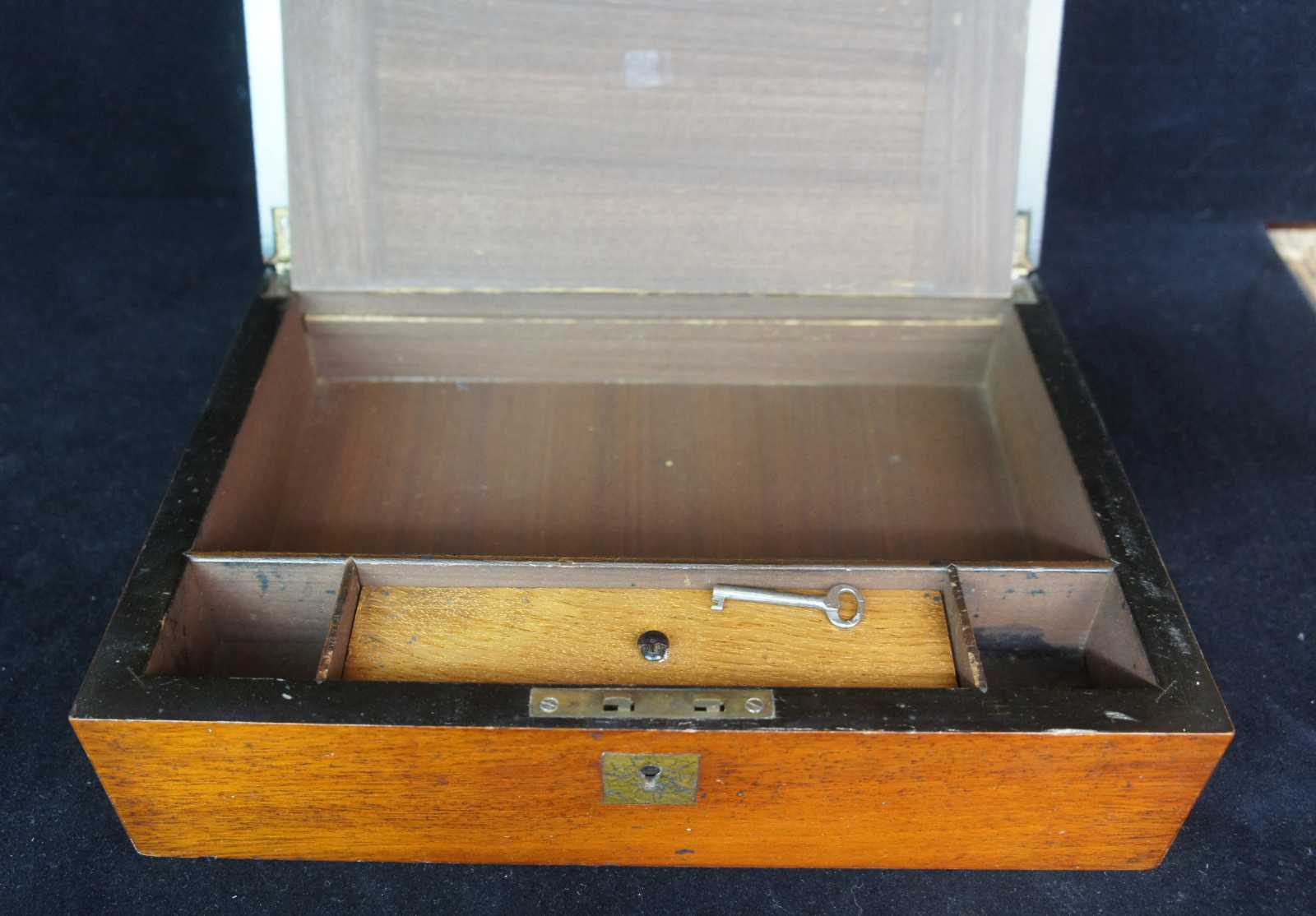 Good overall condition, scratches/wear commensurate with age and use, scratching to brass, edge wear, working lock.