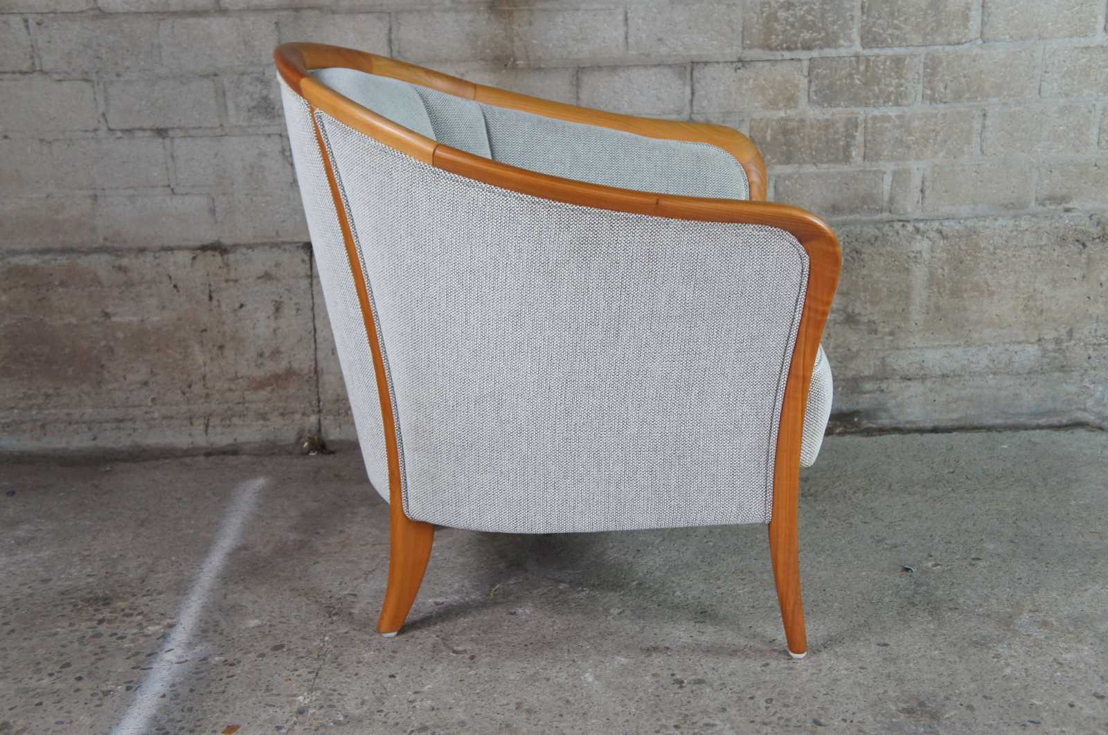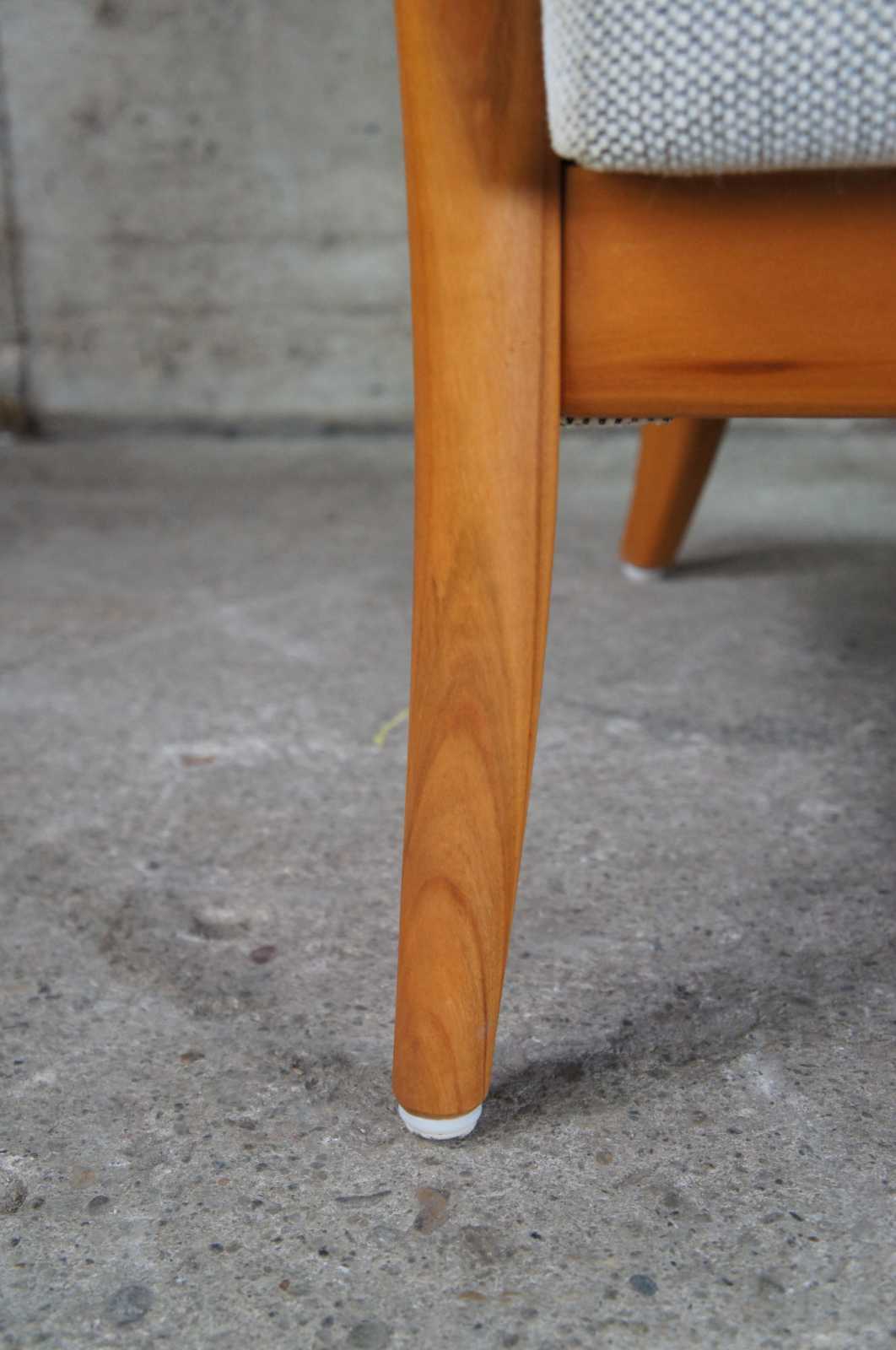 Mid Century Modern Skipper Mobler Furniture Co Chair and Sofa. Made in Denmark featuring bentwood maple frame with rounded form and a neutral upholstery.