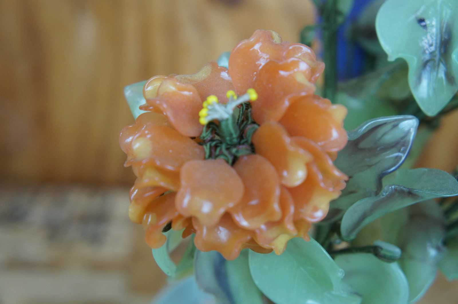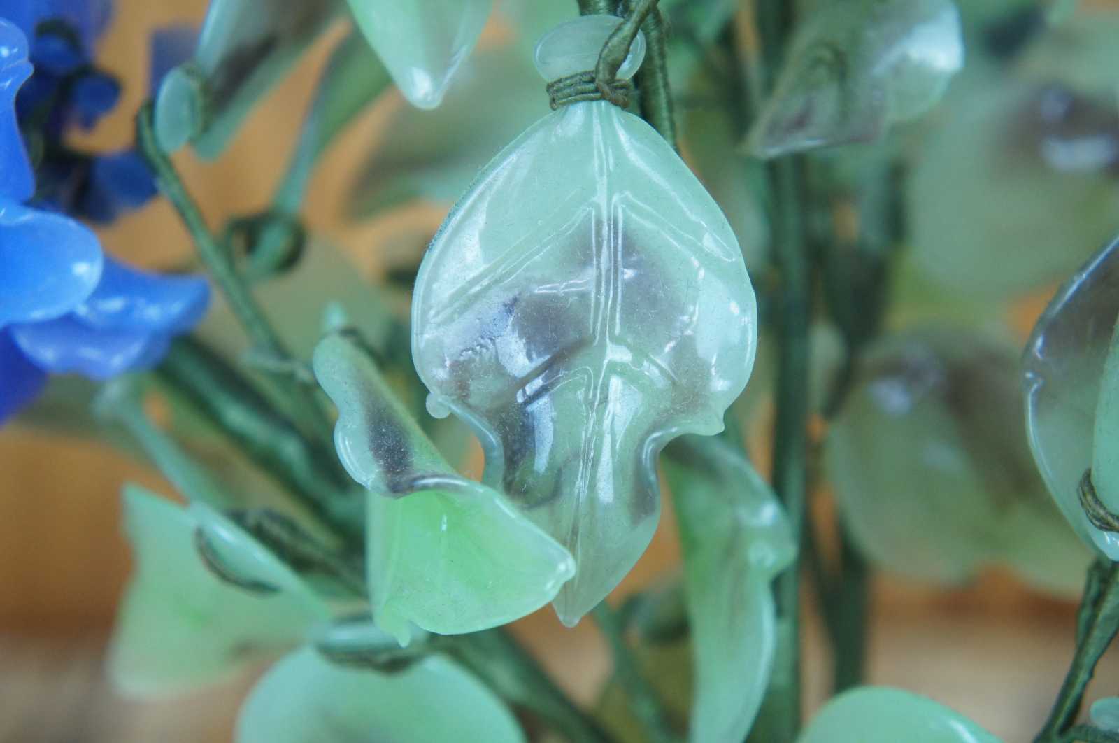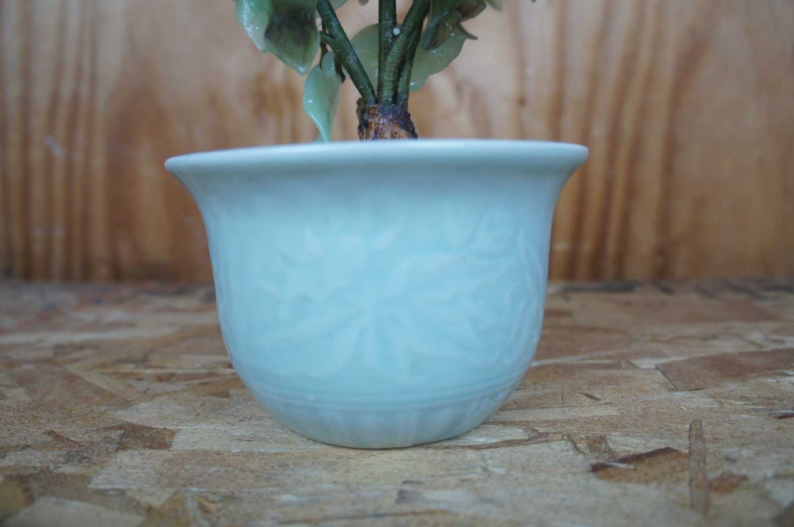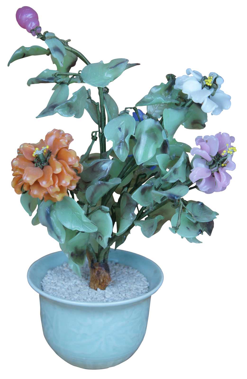 Mid 20th Century Chrysanthemum & Jade bonsai tree with porcelain flower vase.