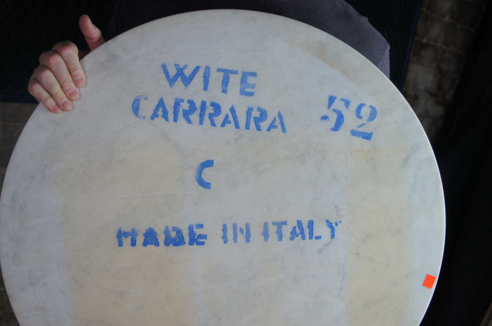 Good antique condition, wear and distressing commensurate with age and use, slightly different size tables due to hand made nature, one marble top not original.