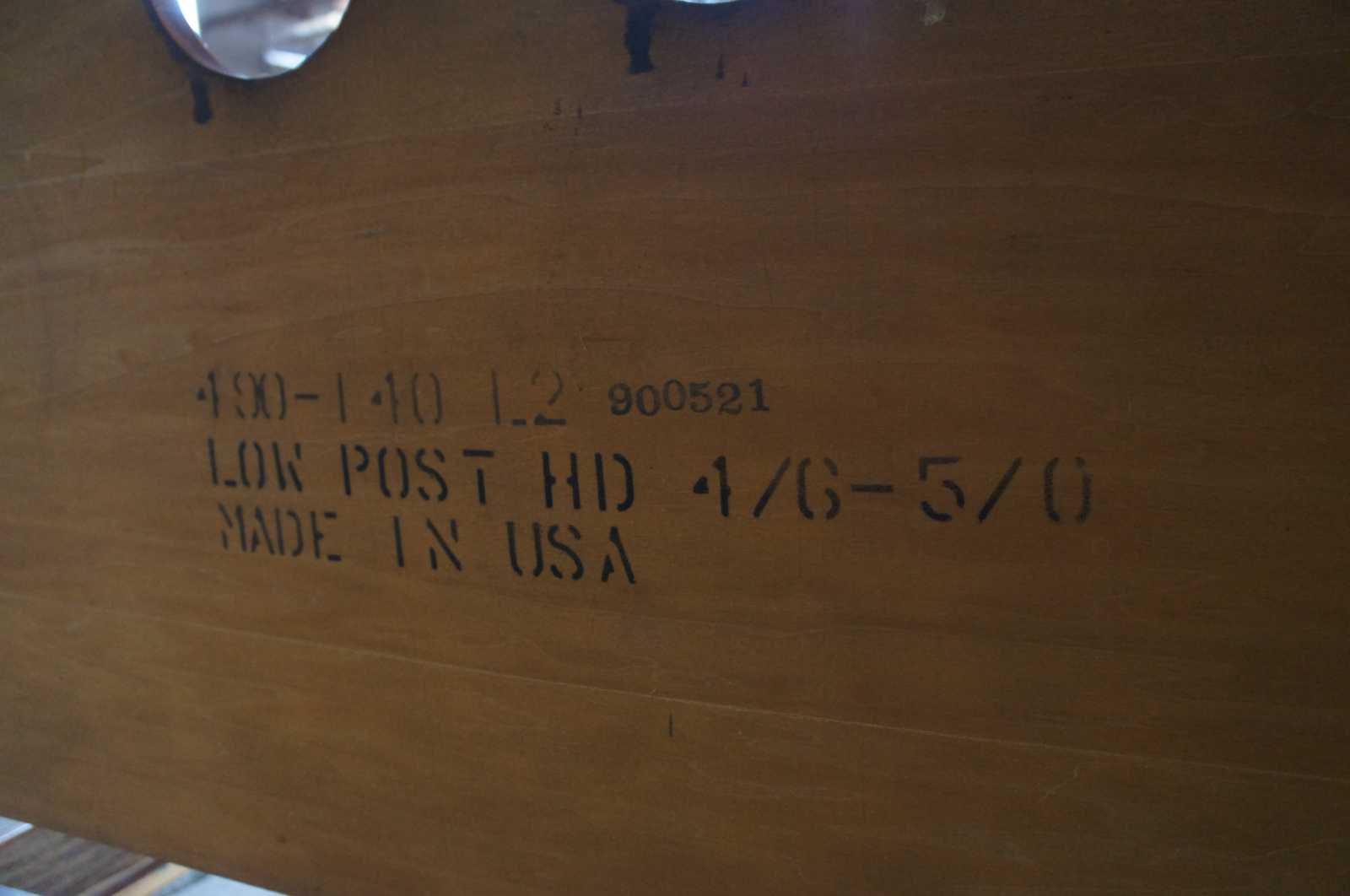 Good overall condition, wear and distressing commensurate with age and use, light fading.Right side rail rebraced with iron hardware