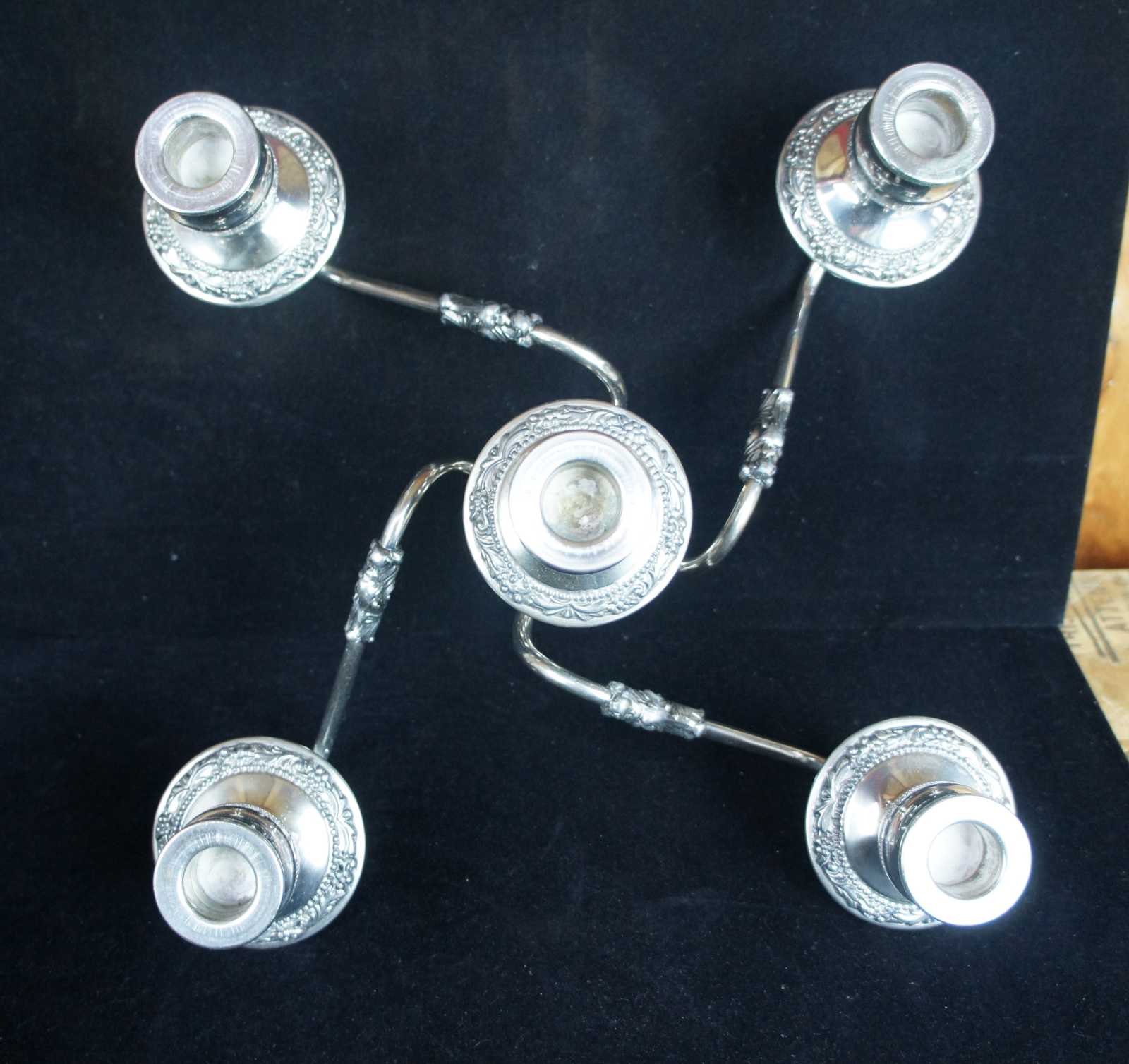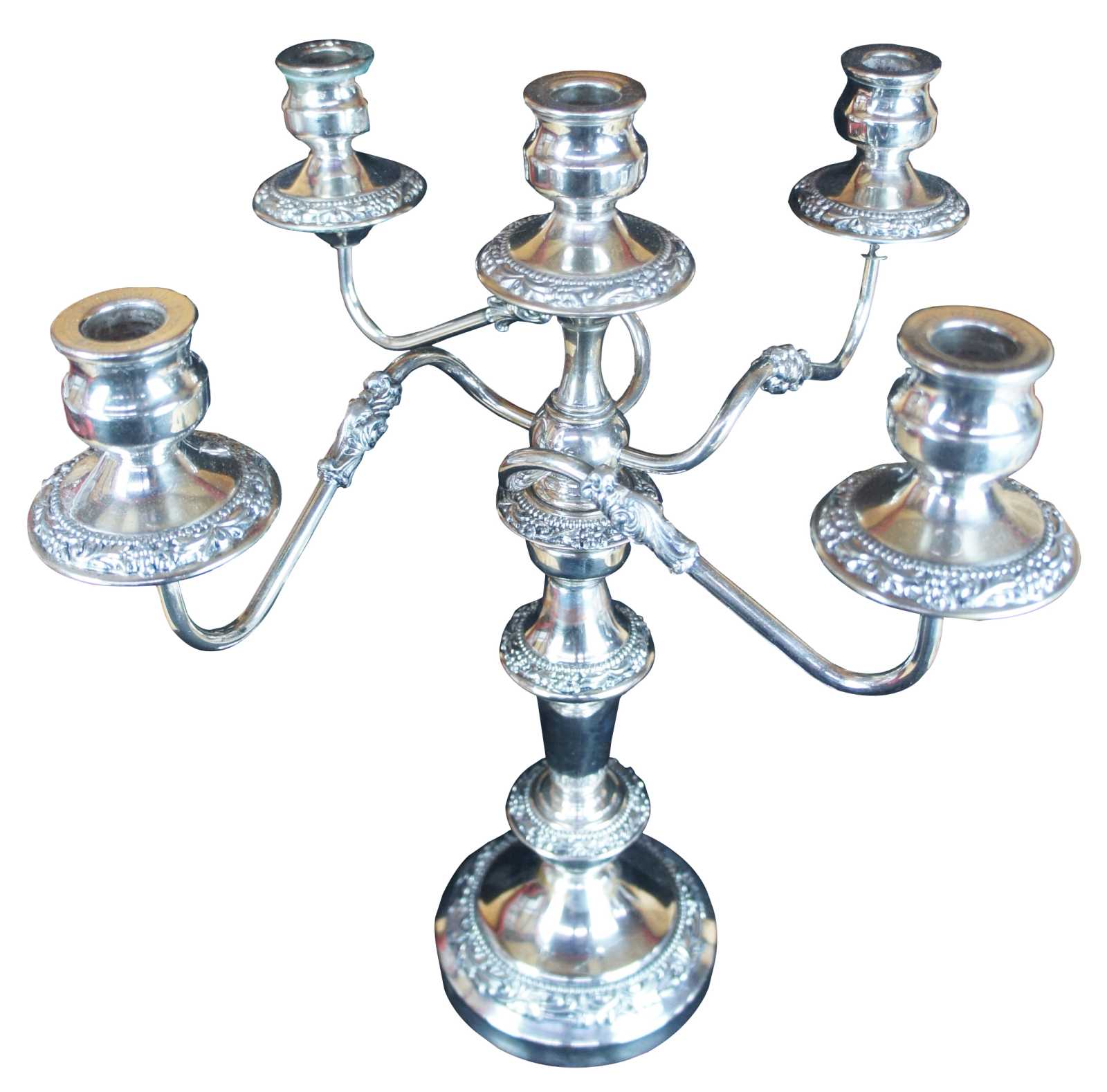 Vintage Goldfeder Silver Co five arm convertable candelabra candlestick featuring grape, acanthus leaves and beaded design.