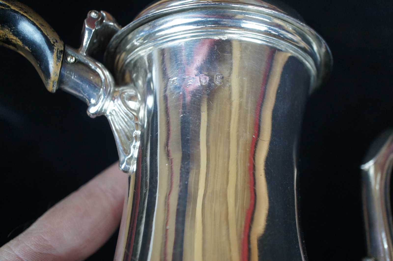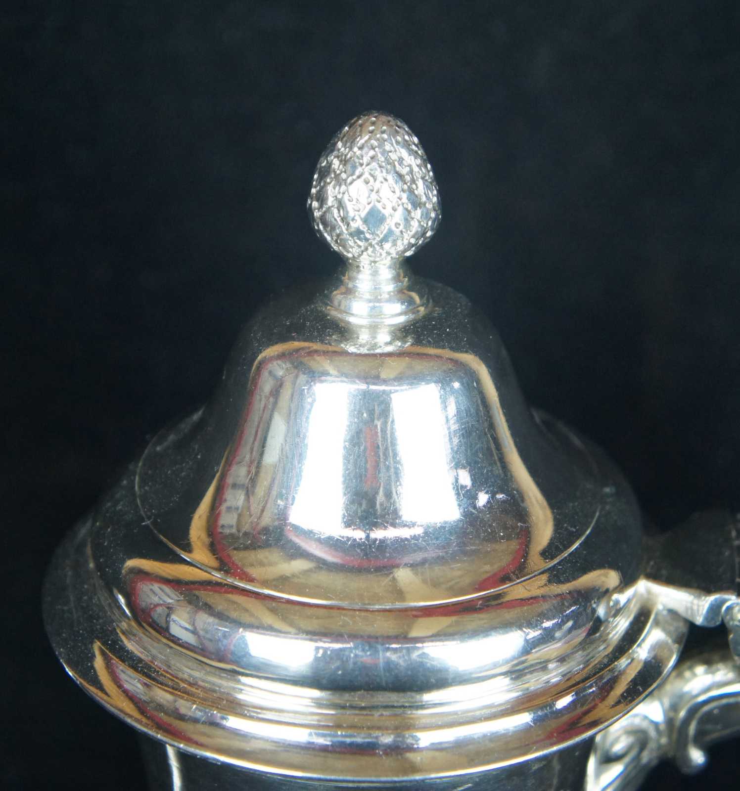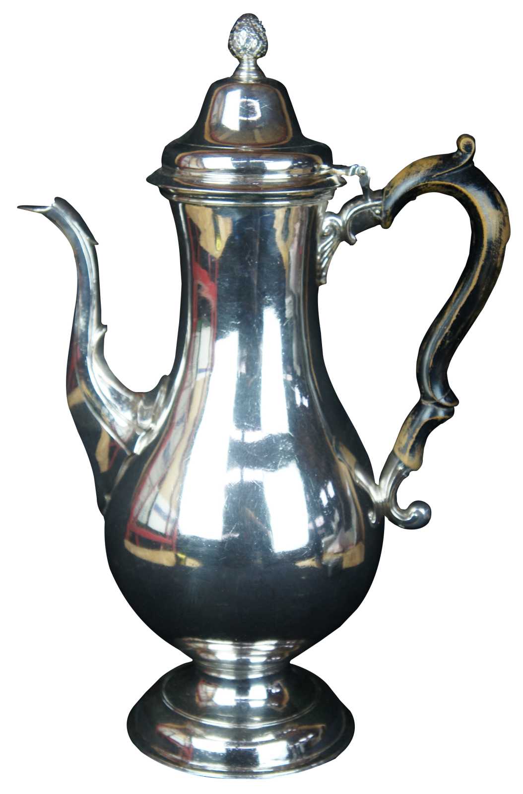 1782 Antique 18th century George III sterling silver chocolate pot or chocolatière. A beautiful sterling silver 925 / 1000 lidded pot featuring baluster form with baroque deisgn, wooden handle, acanthus detail and acorn finial. Attributed to the Bateman Family of London England. Markings show the letter B, the Lion Passant, the Crowned leopard for the London Assay Tax Office, and the letter date g for 1782.