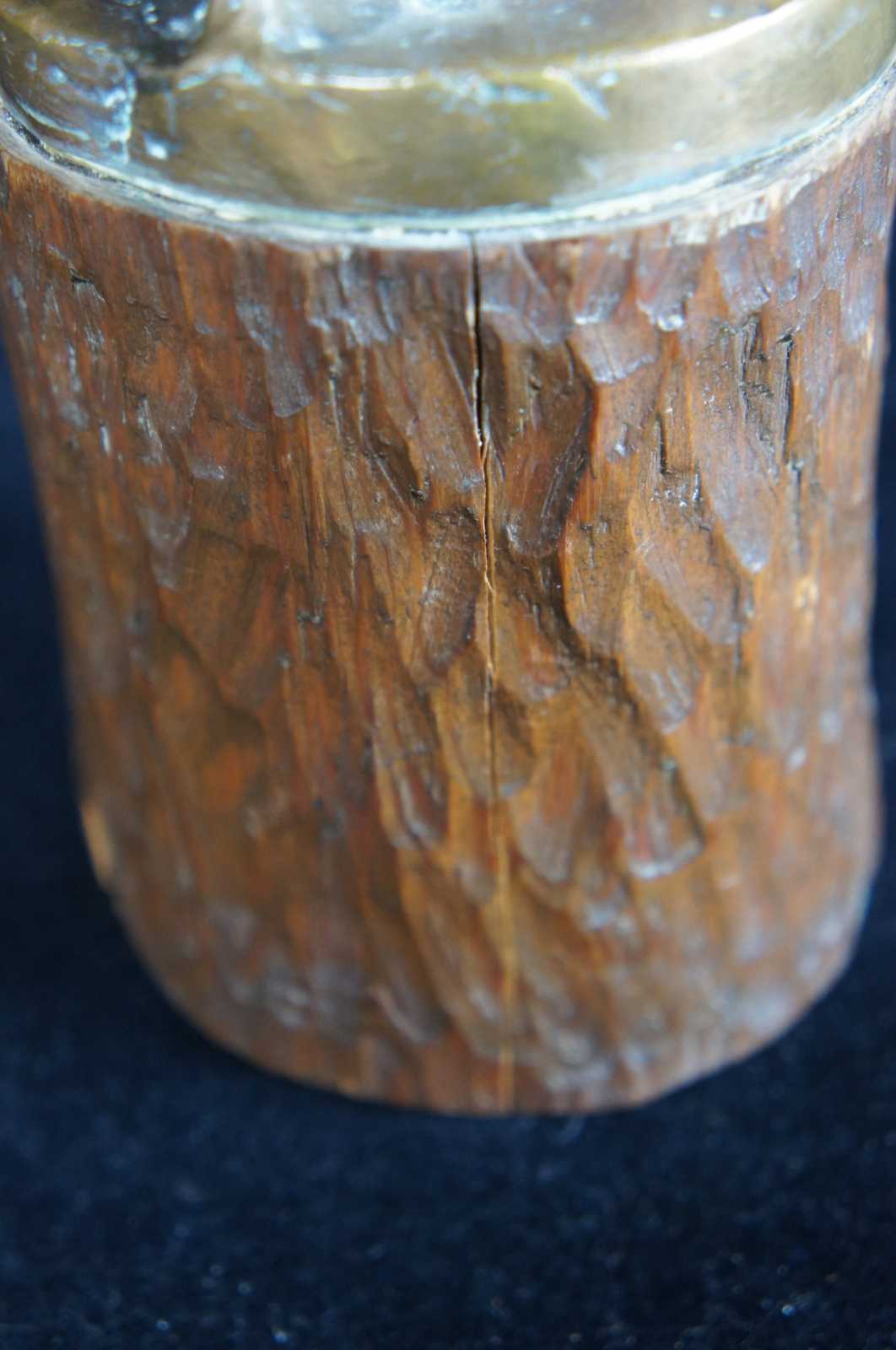 Good vintage condition, wear and distressing, some tarnish / residue, split / wear to base.
