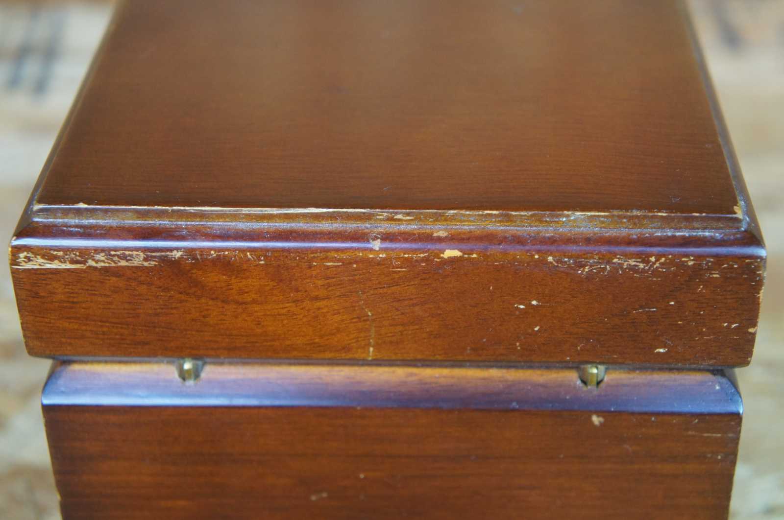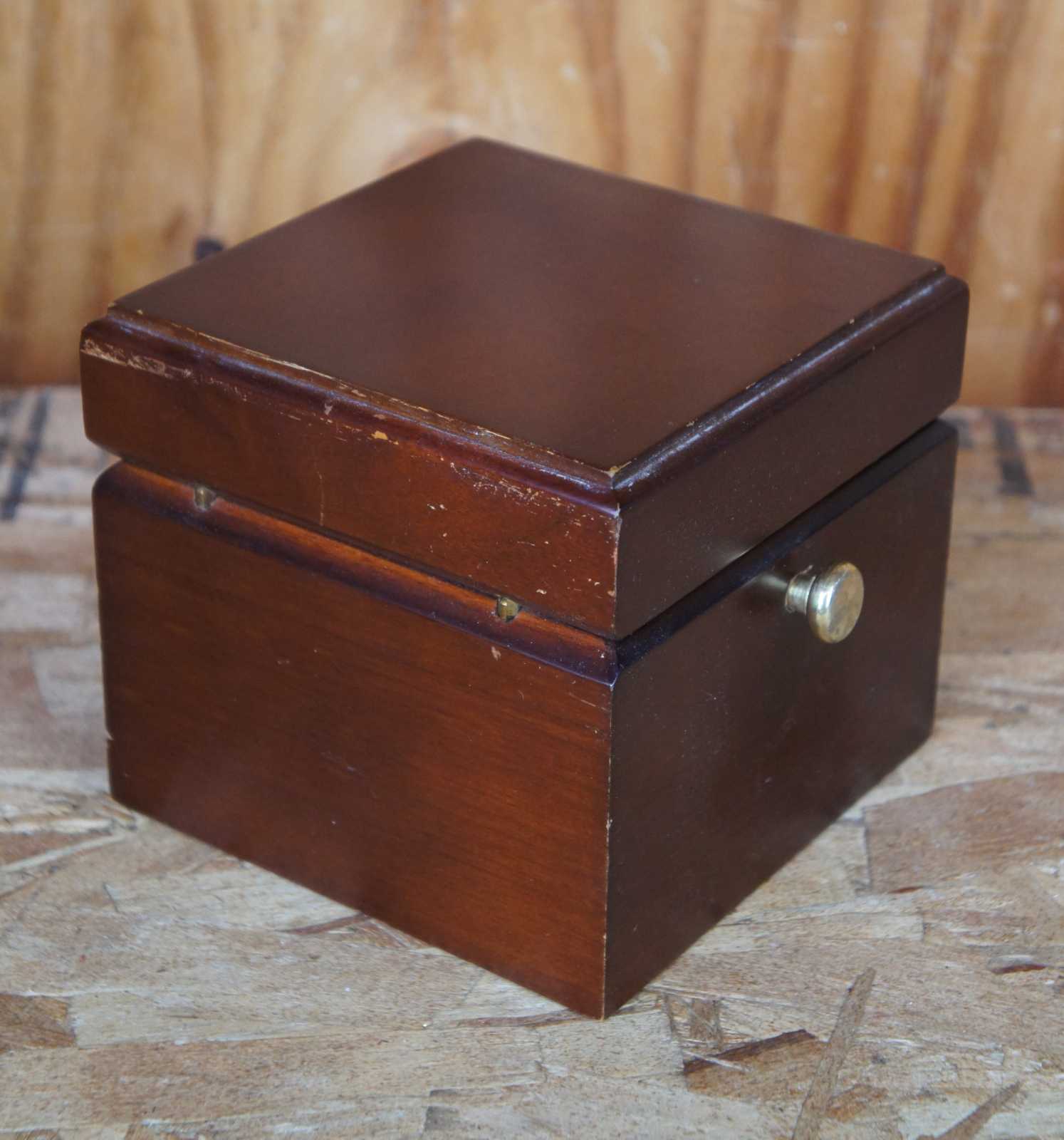 Good overall, wear and distressing, pitting / tarnish to clock, finish loss to box, working.