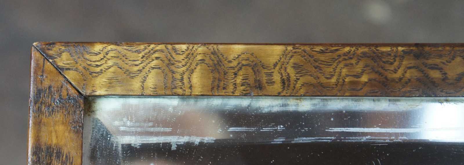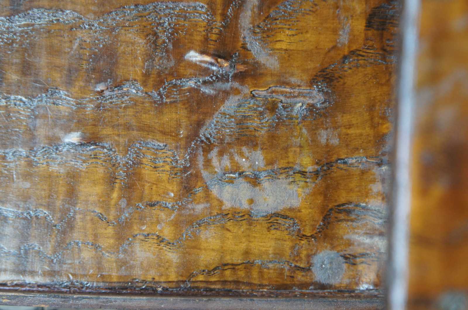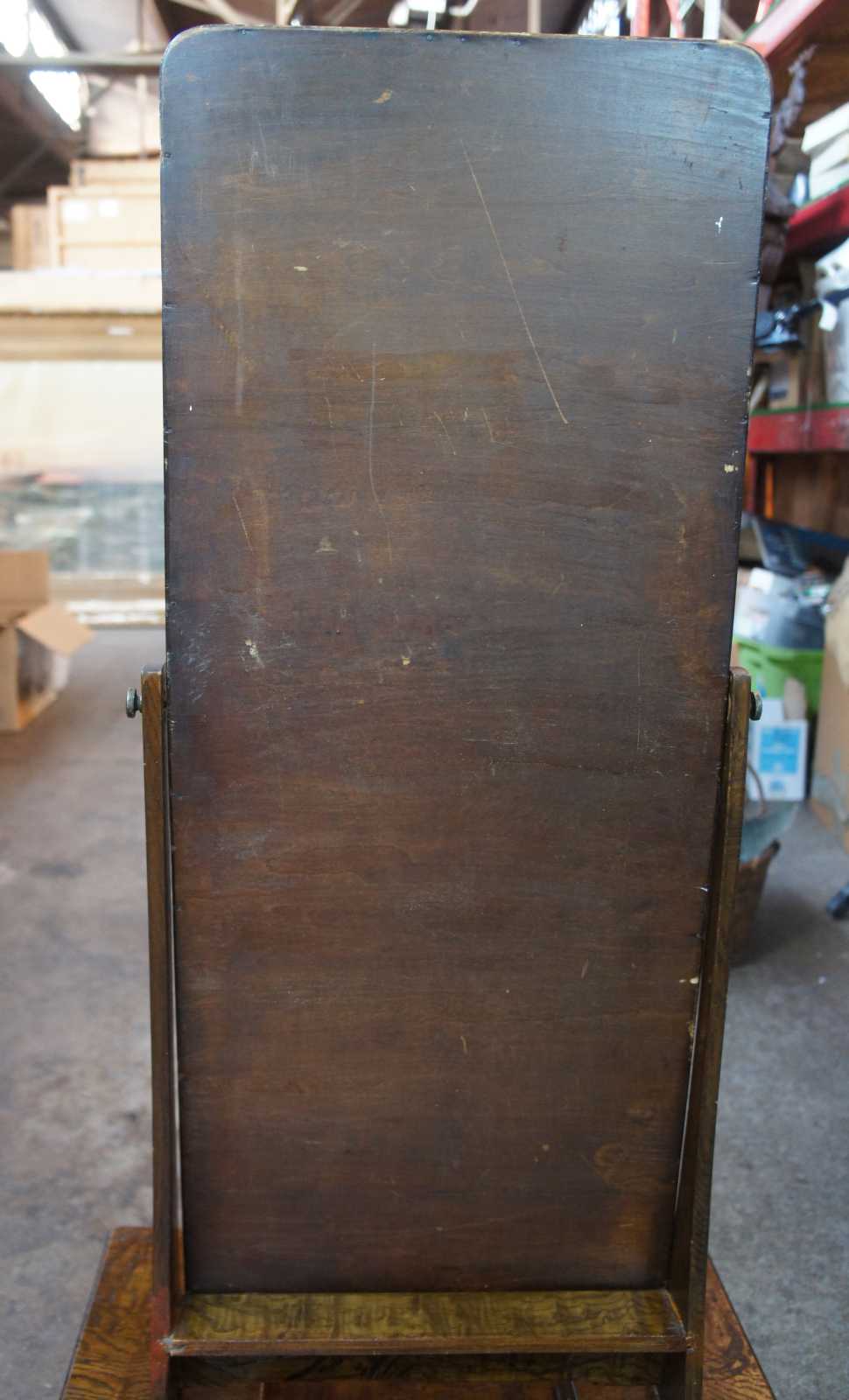 Good antique condition, wear and distressing commensurate with age and use, finish loss, marking, mismatched drawer pull, pitting to mirror.