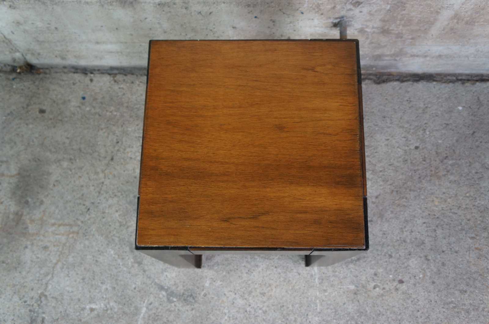 1980s chinoiserie Lane Altavista side table. Made of walnut featuring square form with chinoiserie style legs and glass top. Manufactured on February, 2nd 1980. Style No. 1024 66