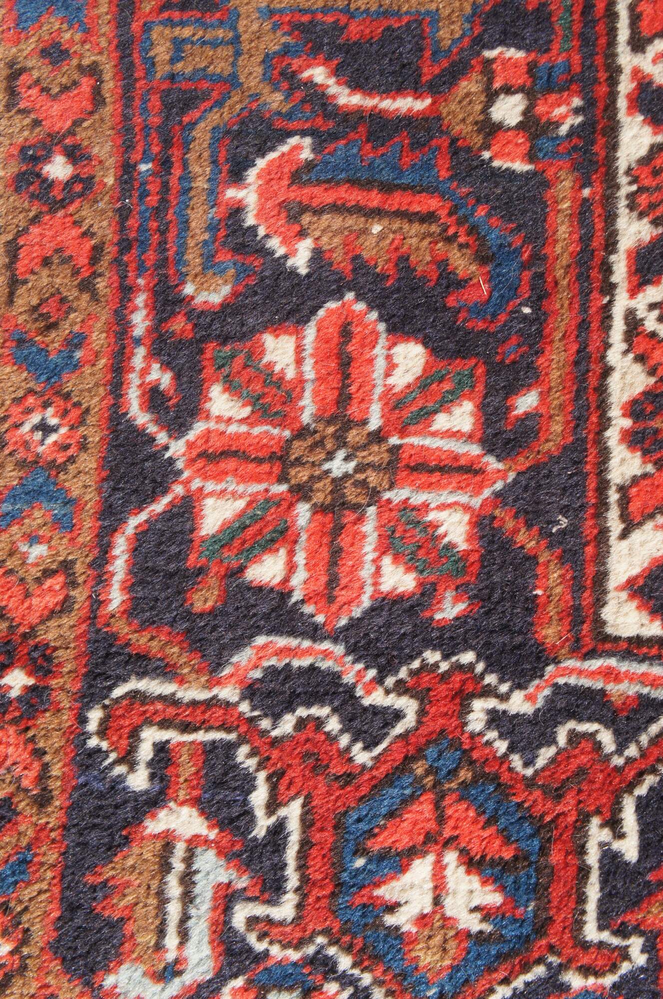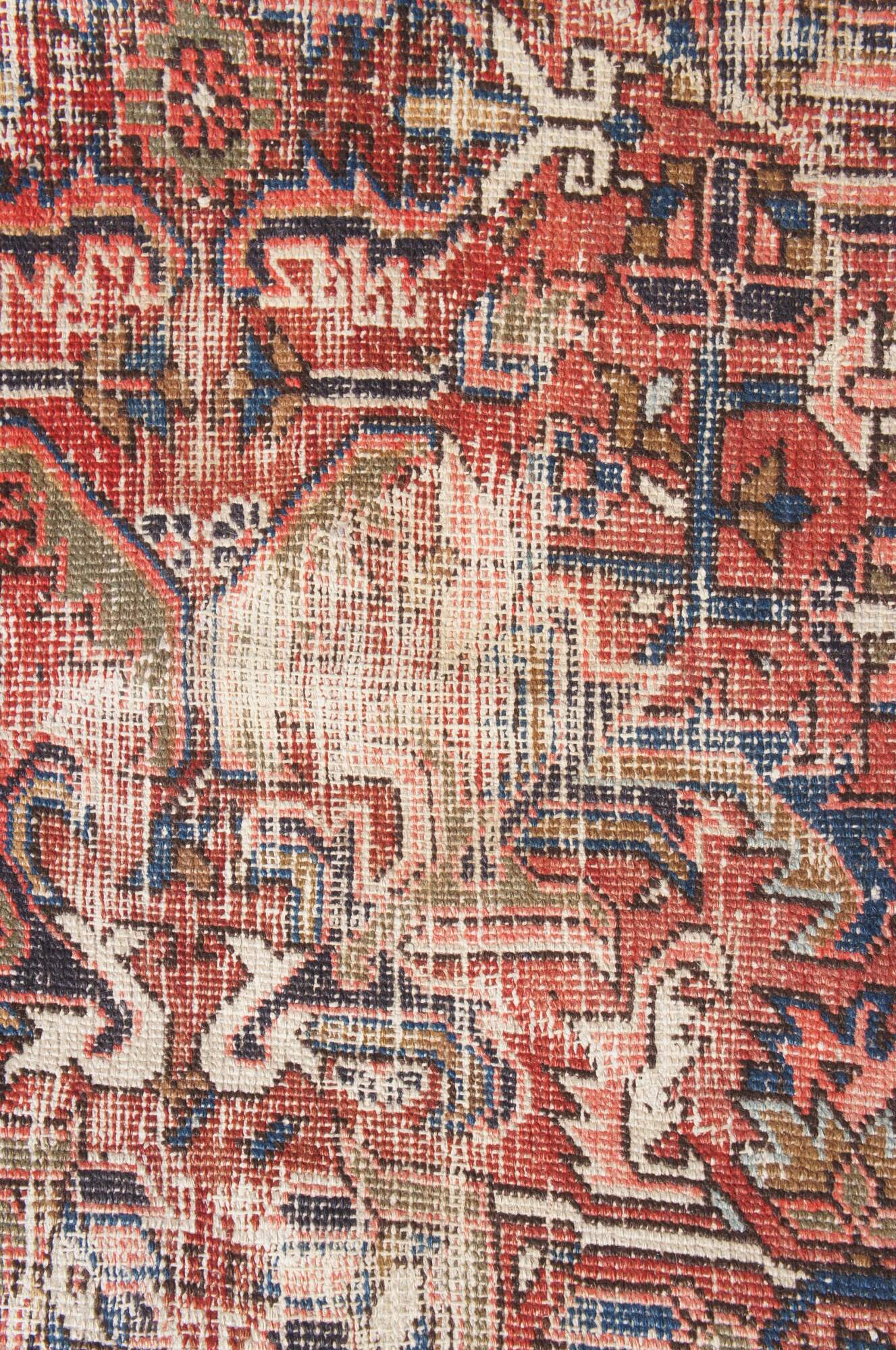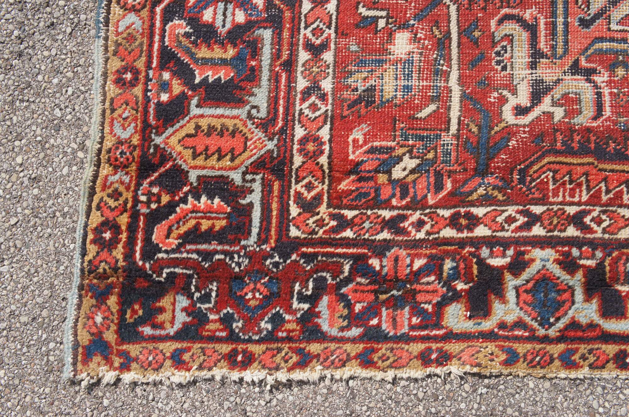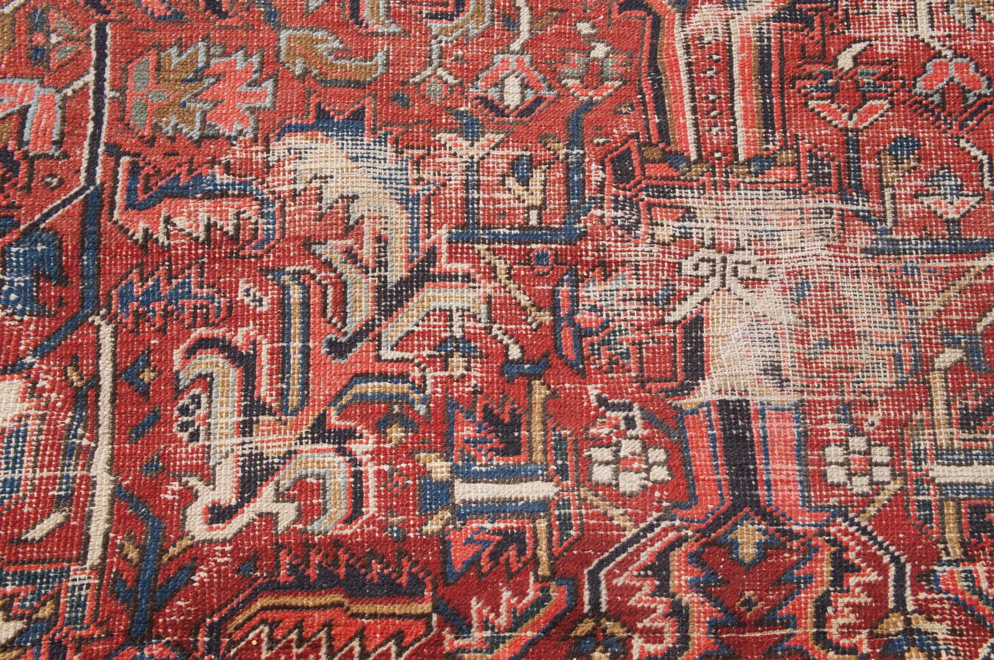 Semi-Antique oriental carpet. Features traditional floral motifs in red with beige and brown accents.