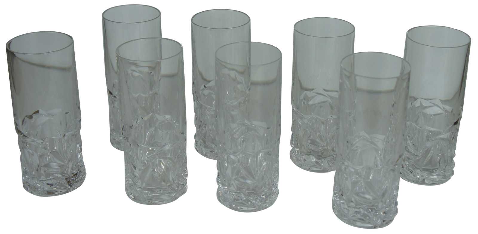 Vintage set of eight Tiffany & Co Crystal geometric "rock cut" 12 ounce highball glasses.